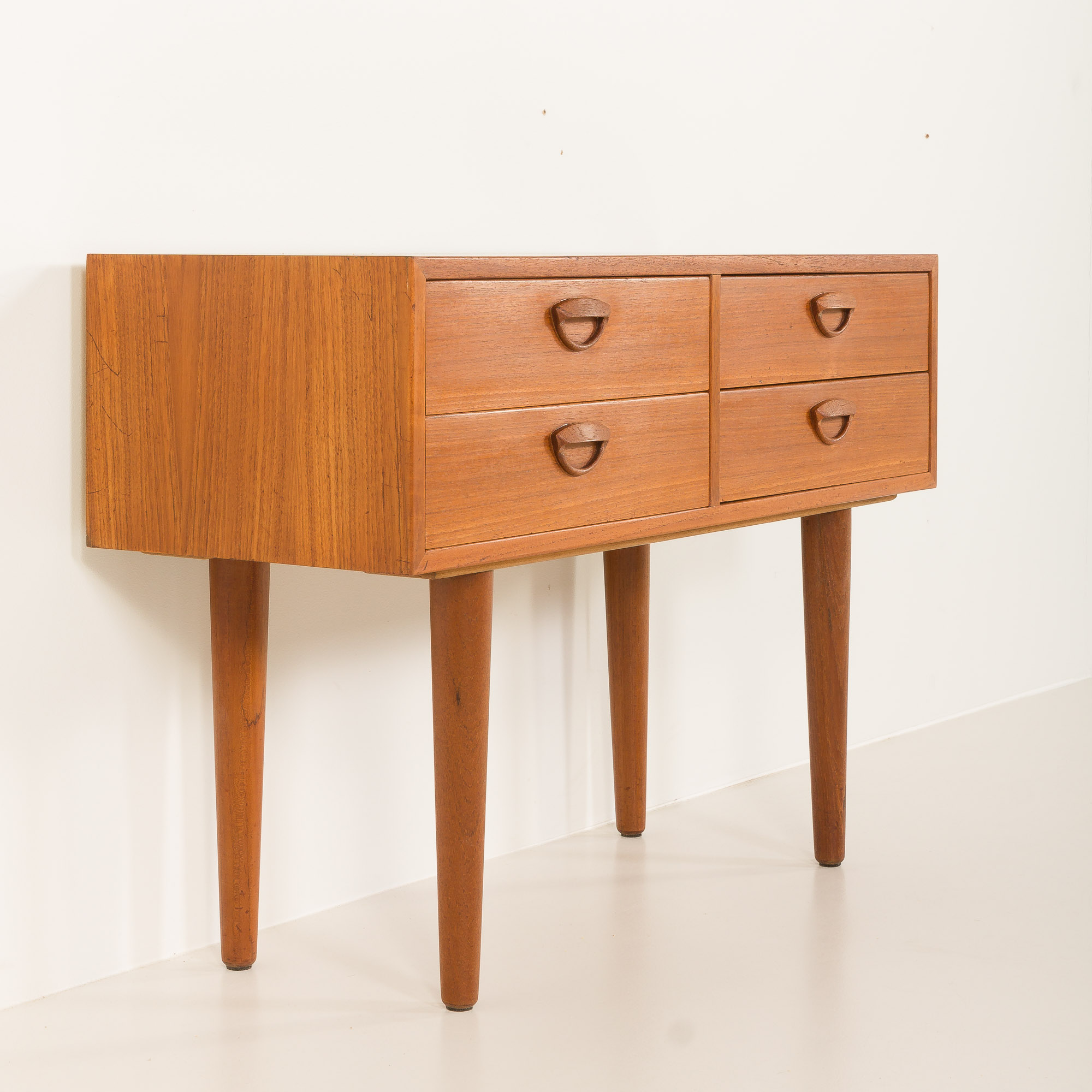 Może pełnić funkcję eleganckiej szafki do przedpokoju lub korytarza. Posiada cztery szuflady ozdobione charakterystycznymi dla Kristiansena uchwytami w kształcie uśmiechu, wykonanymi z litego teku.