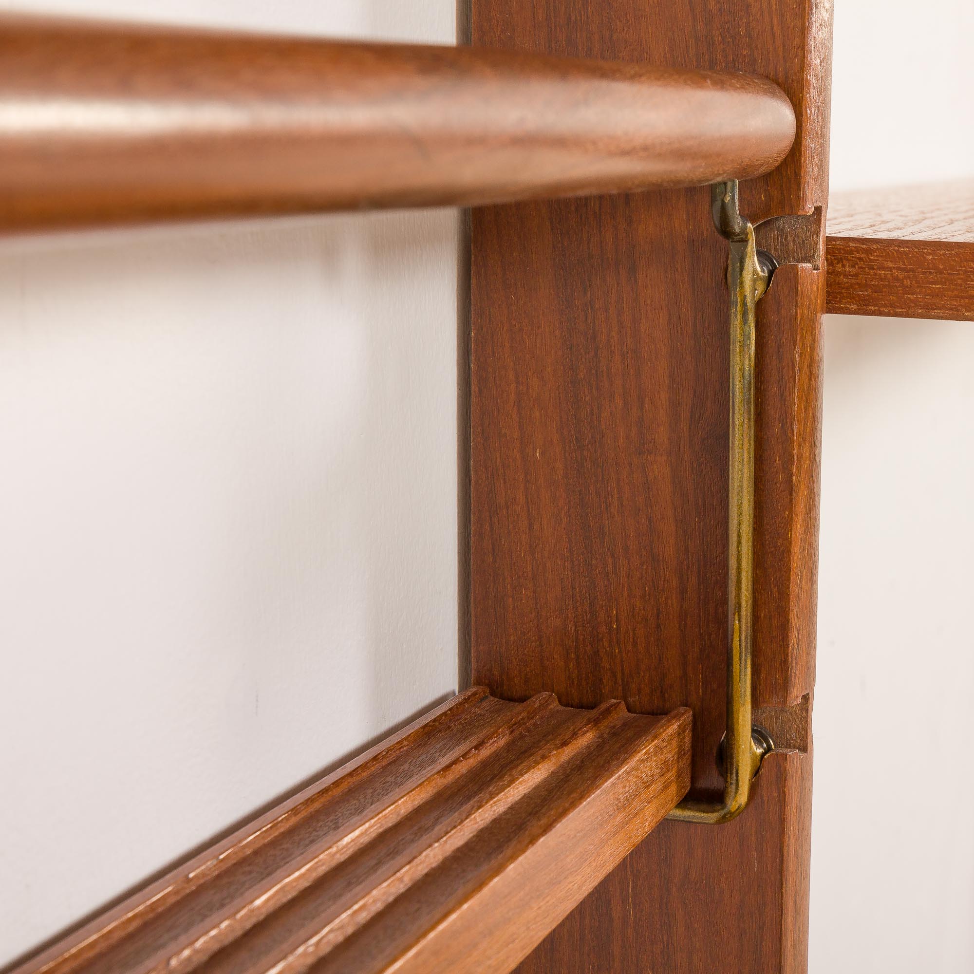 Mebel został poddany gruntownej renowacji. Drewno zostało oczyszczone profesjonalnymi środkami i wykończone warstwami satynowego lakieru identycznego z oryginalnym. Regał jest w doskonałym stanie vintage, z minimalnymi śladami użytkowania.