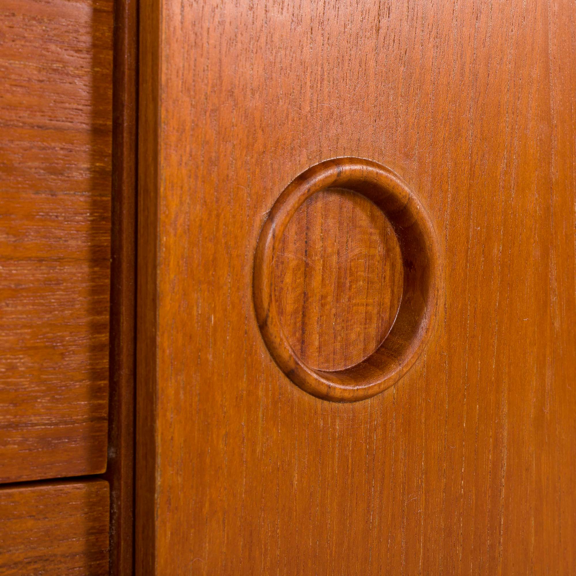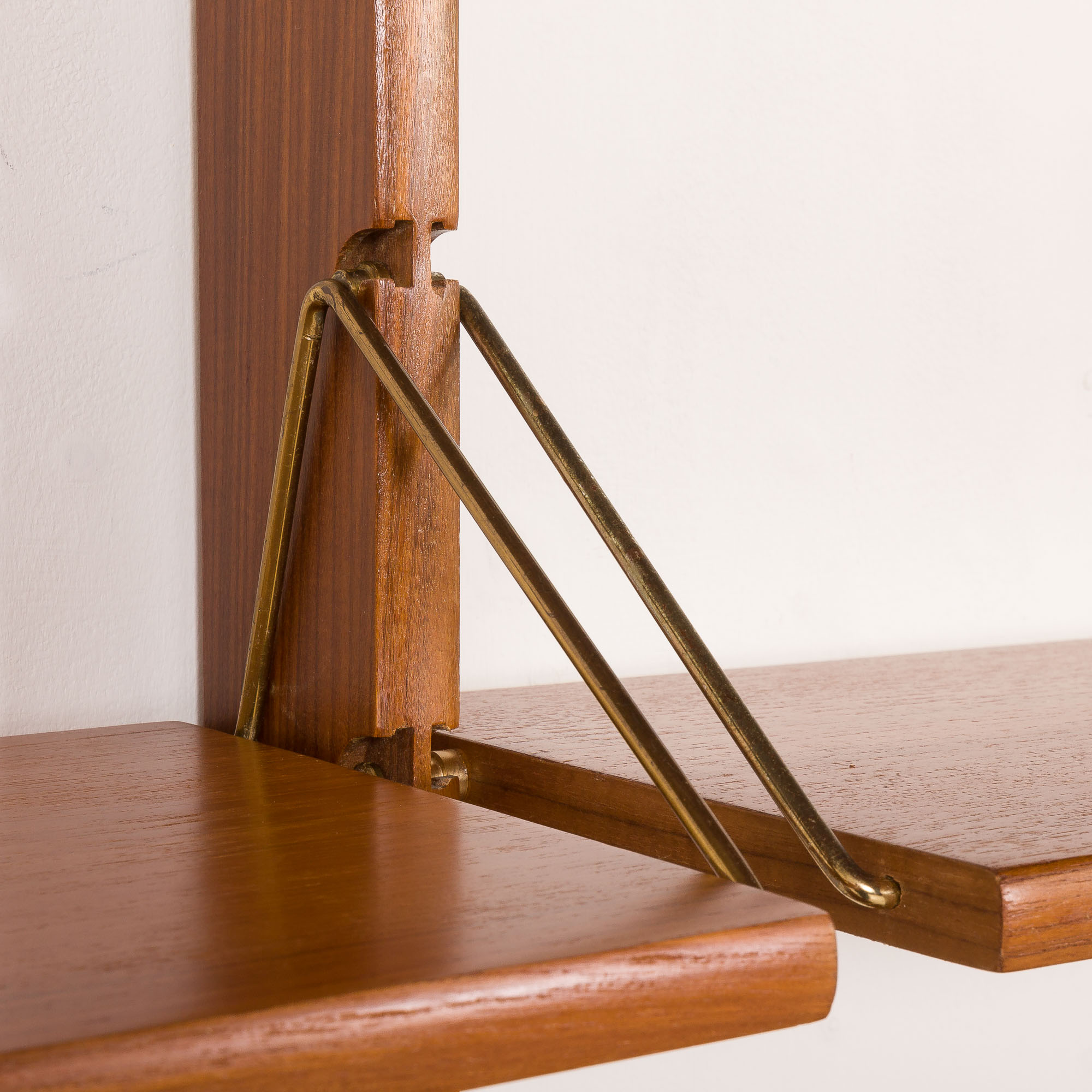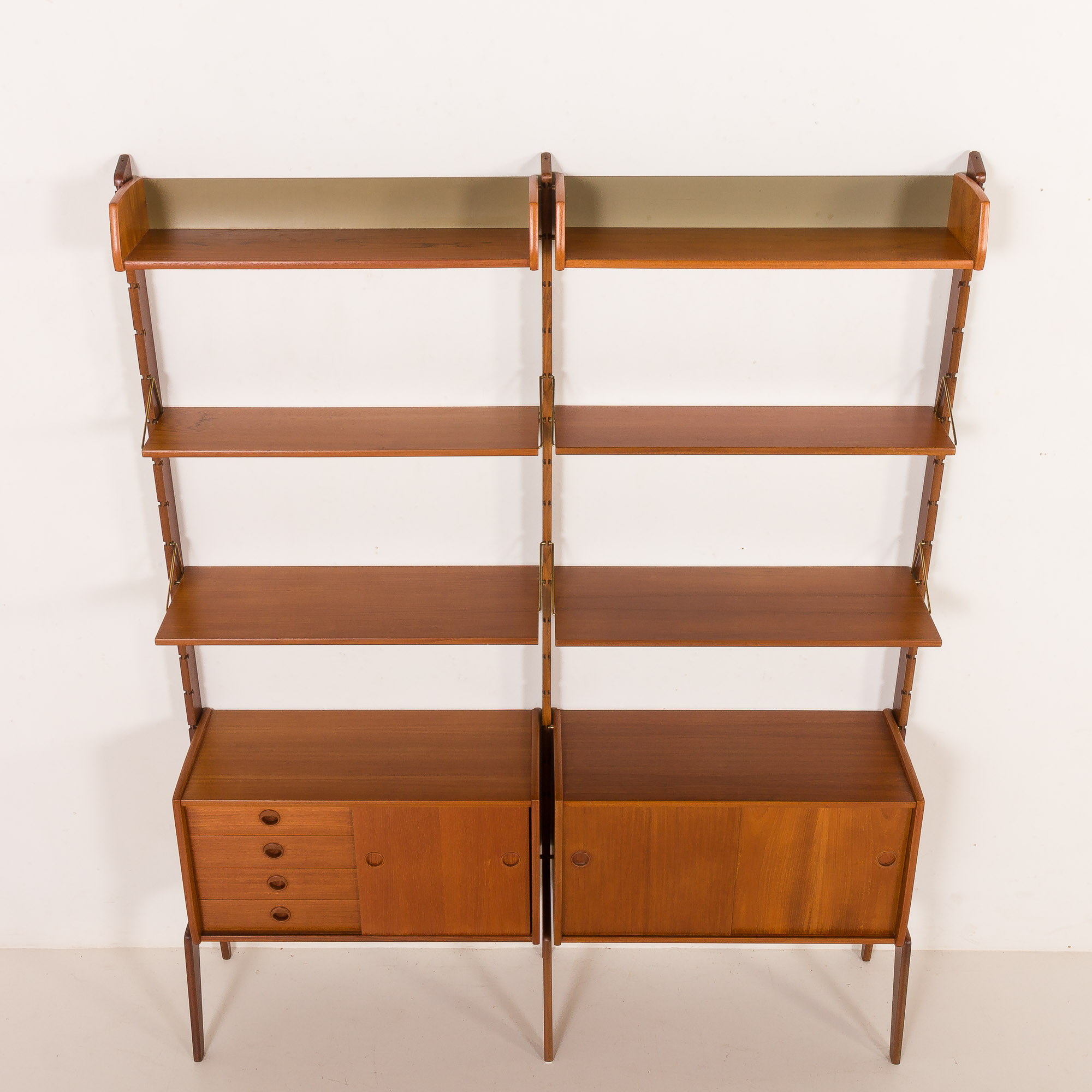 This fully renovated Scandinavian free-standing wall unit in teak comes from Norway from the 1960s. It is a completely modular shelving system model called “Ergo,” designed by John Texmon and Einar Blindheim for Blindheim Møbelfabrikk.