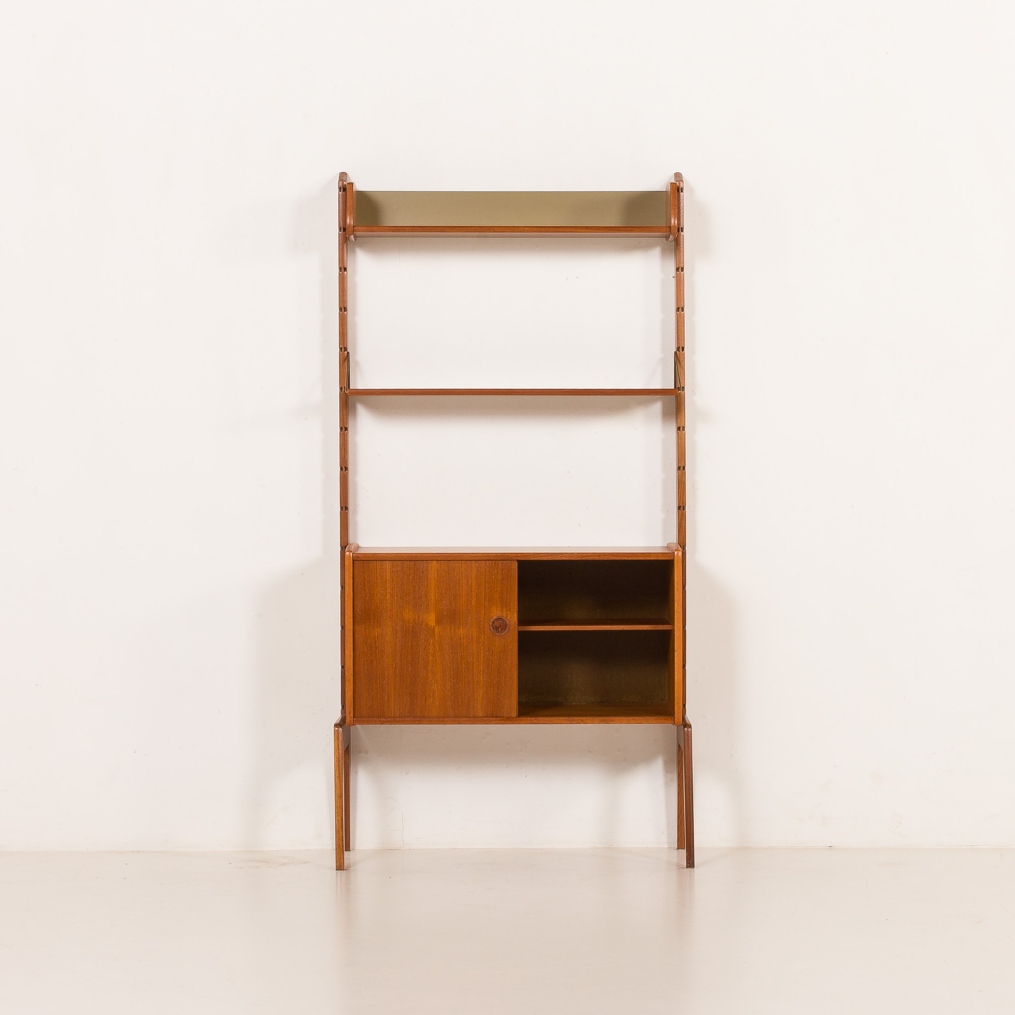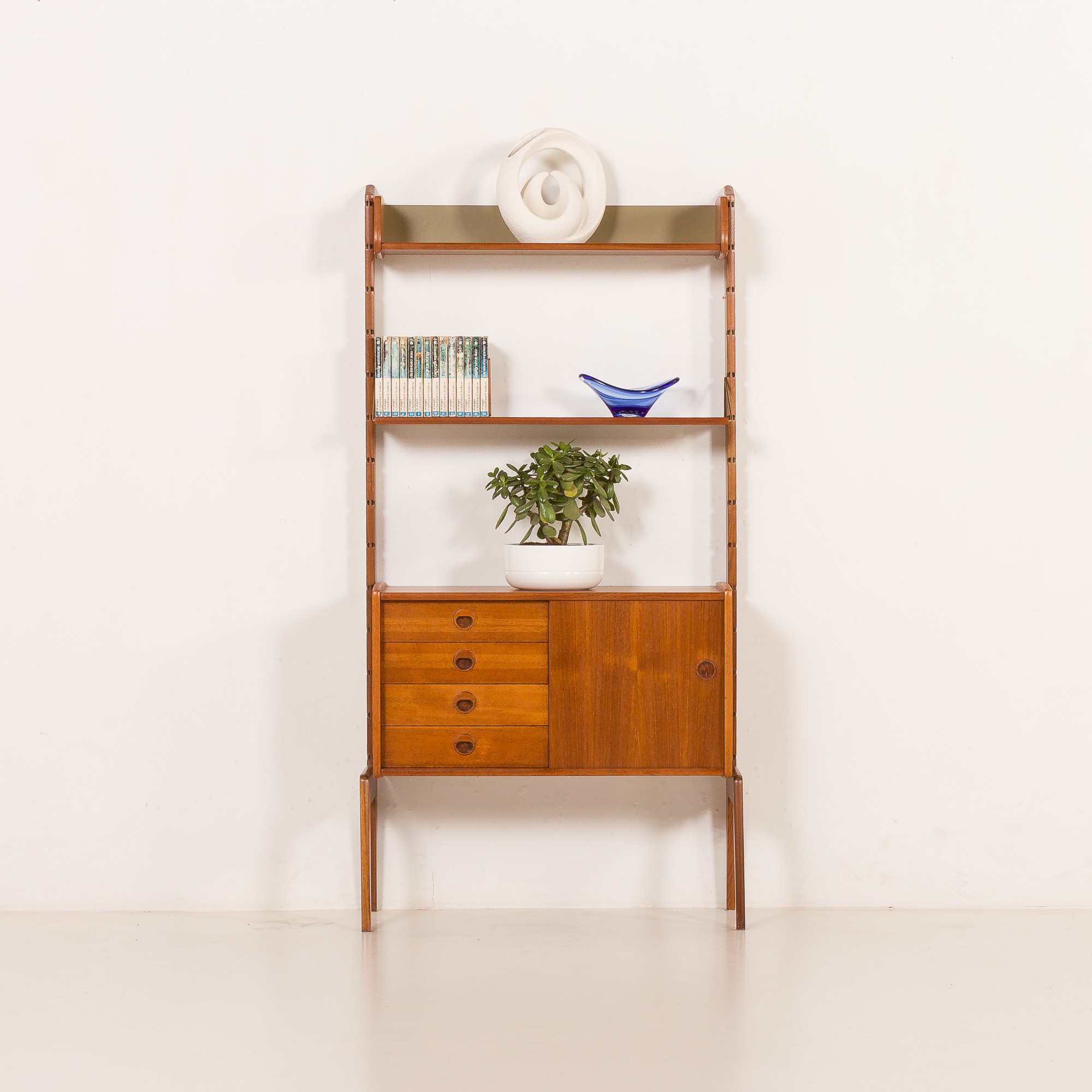 Ten skandynawski, mały, wolnostojący regał z drewna tekowego pochodzi z Norwegii z lat 60. Jest to w pełni modułowy system „Ergo”, zaprojektowany przez Johna Texmona i Einara Blindheima dla Blindheim Mobelfabrikk.