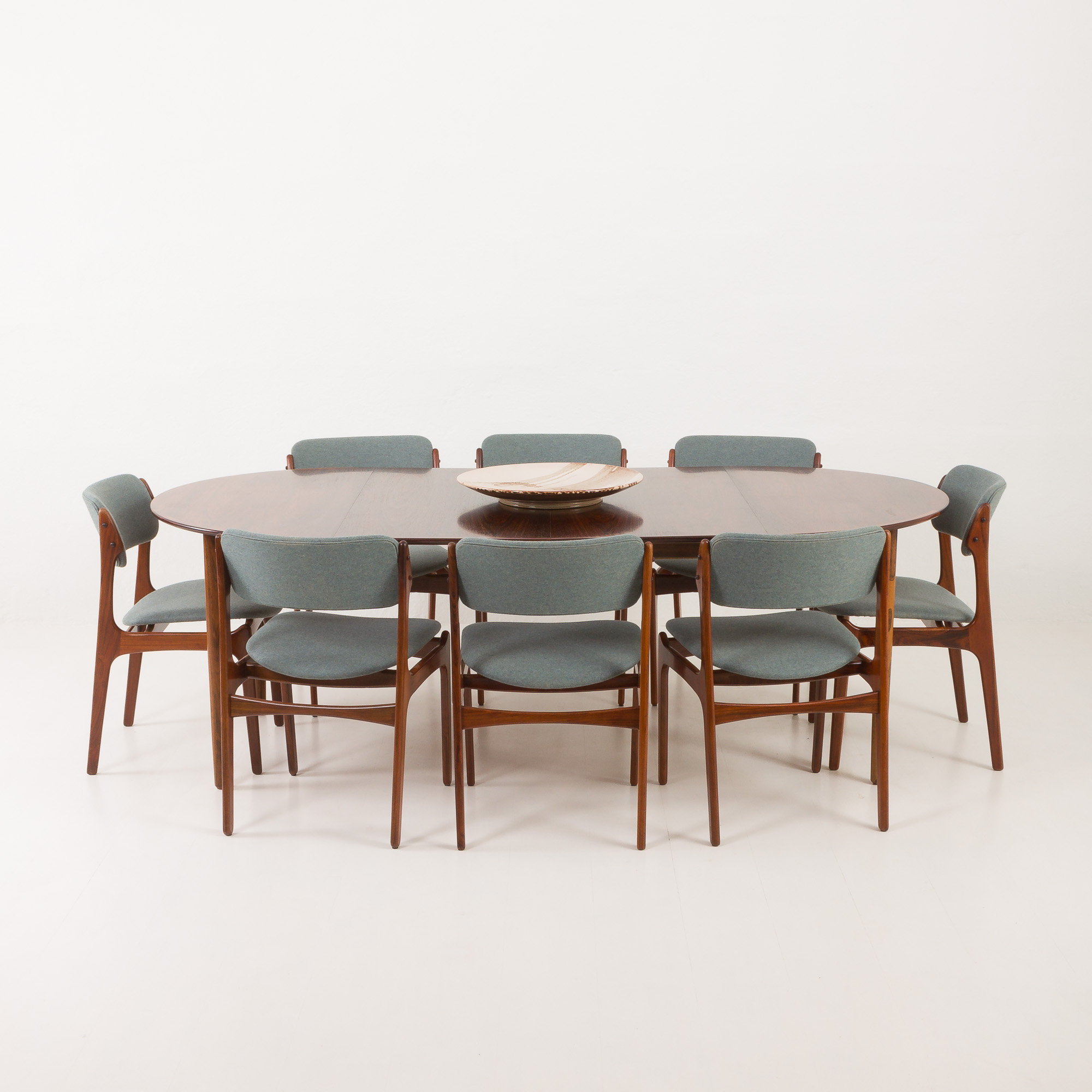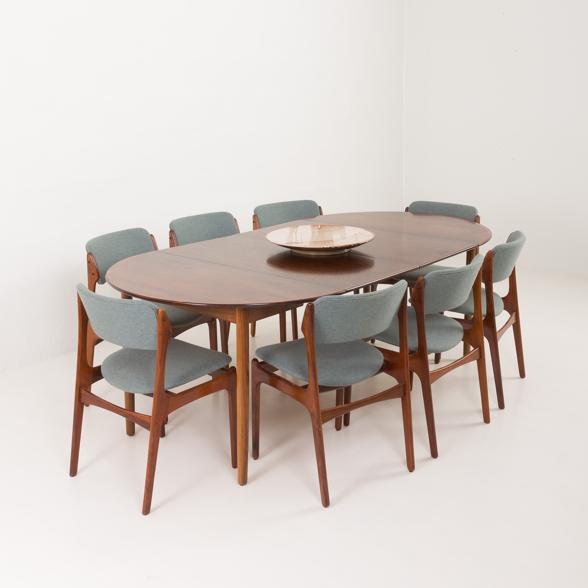 Duńskie krzesła do jadalni model OD-49 projektu Erika Bucha to przykład nowoczesnego designu z lat 60-tych, ucieleśniającego elegancję i funkcjonalność, z których słyną skandynawskie meble. Zestaw odzwierciedla charakterystyczny dla projektanta styl, charakteryzujący się eleganckimi liniami, wysokiej jakości materiałami i starannym wykonaniem.