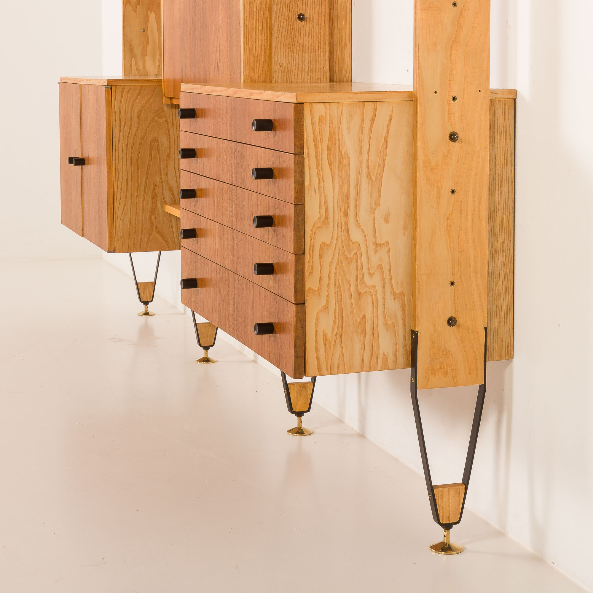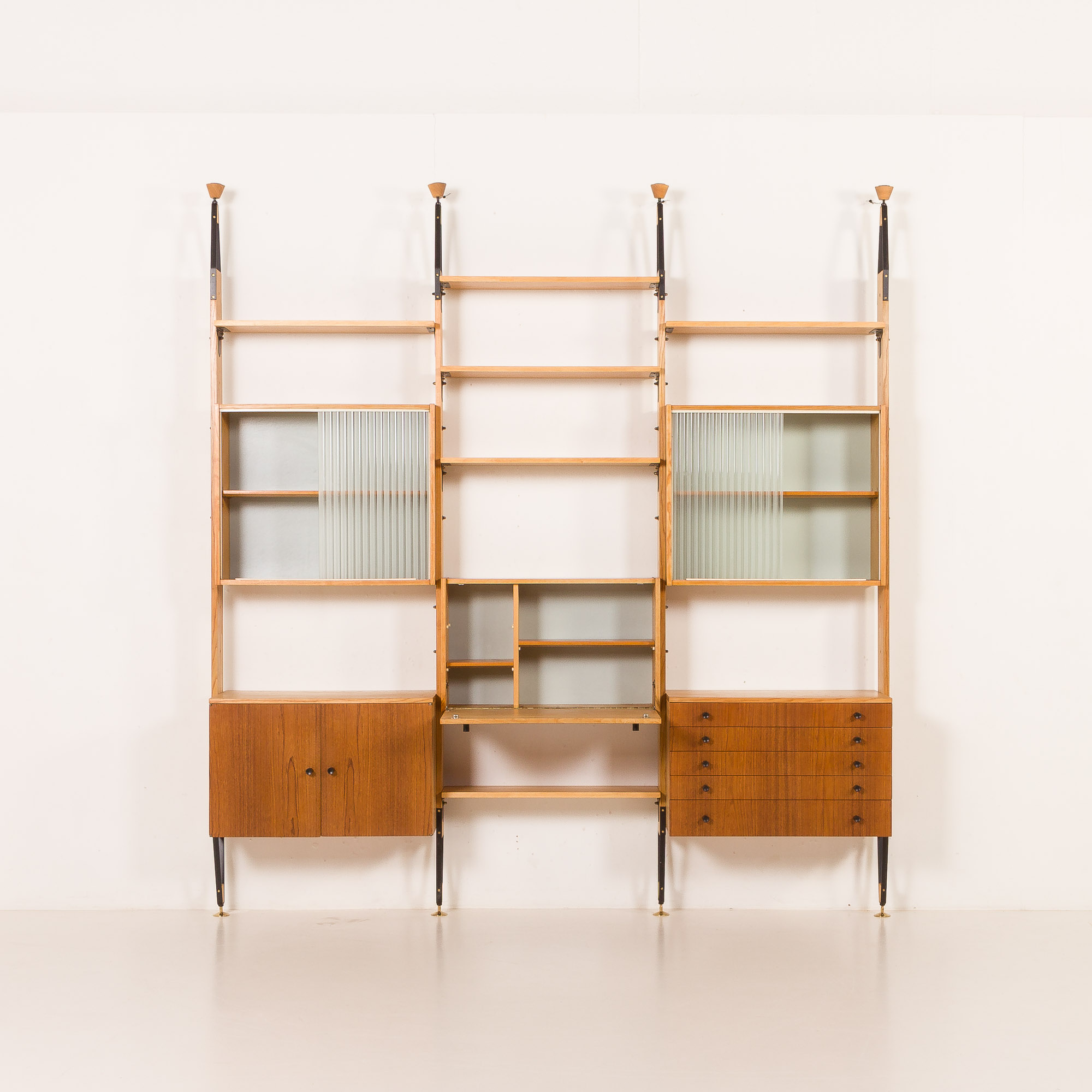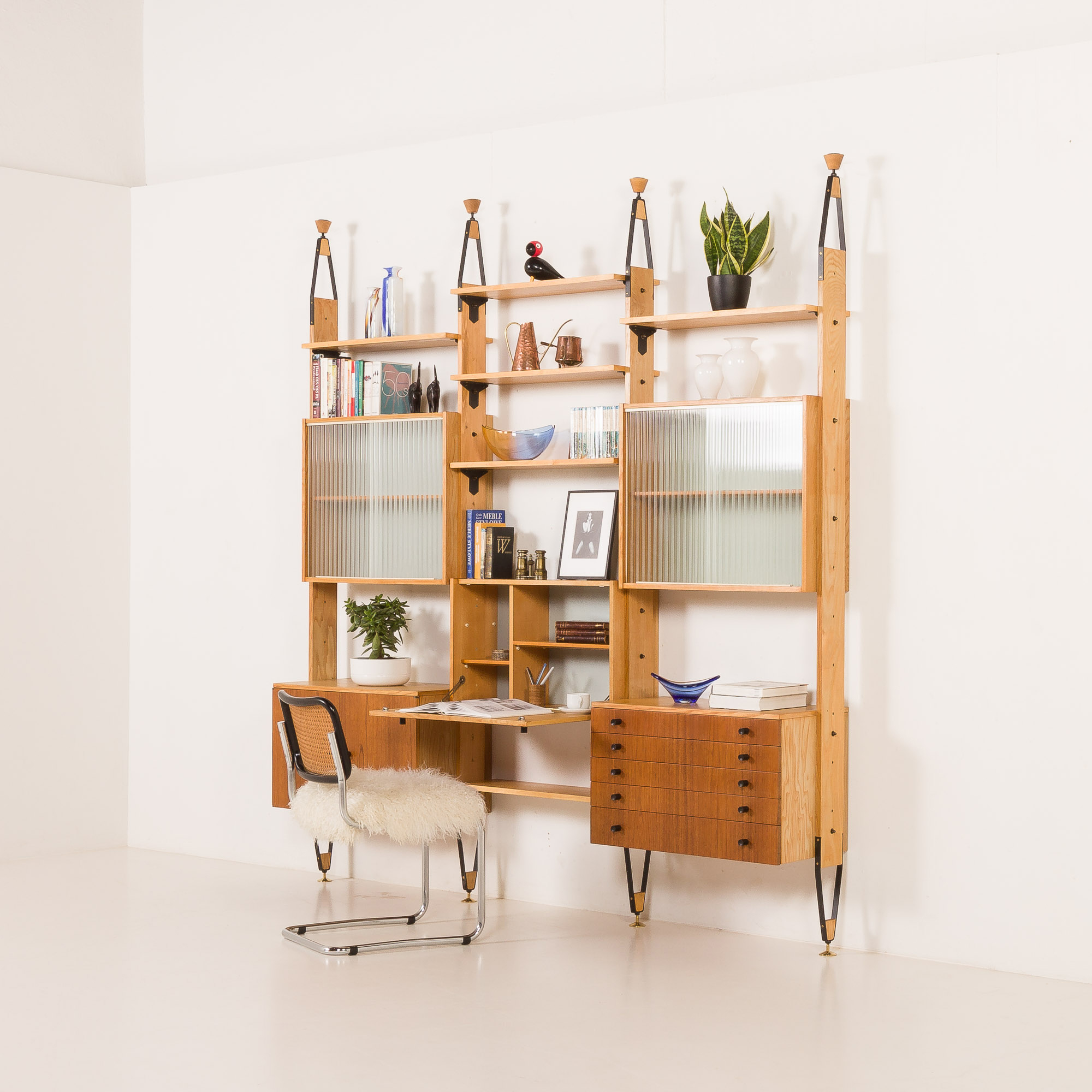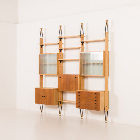 Ten wyjątkowy, czechosłowacki, sięgający od podłogi do sufitu, regał mid-century, wykonany w latach 60., idealnie łączy funkcjonalność z ponadczasową elegancją.