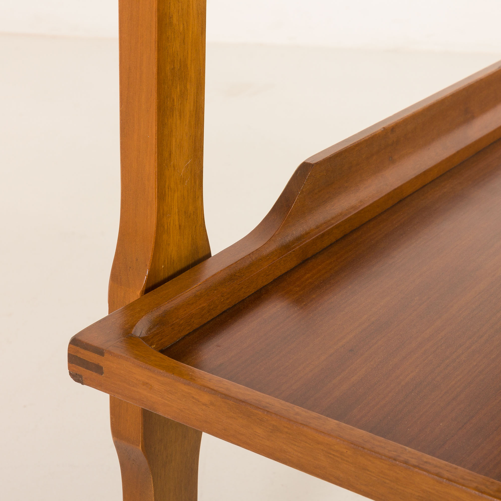 Idealne połączenie praktyczności i elegancji sprawia, że ten mebel doskonale sprawdzi się jako wózek do serwowania lub jako element dekoracyjny w salonie lub jadalni. Nietuzinkowa stolarka i użycie litego orzecha wskazują na włoskiego projektanta, a przynajmniej producenta z najwyższej półki.