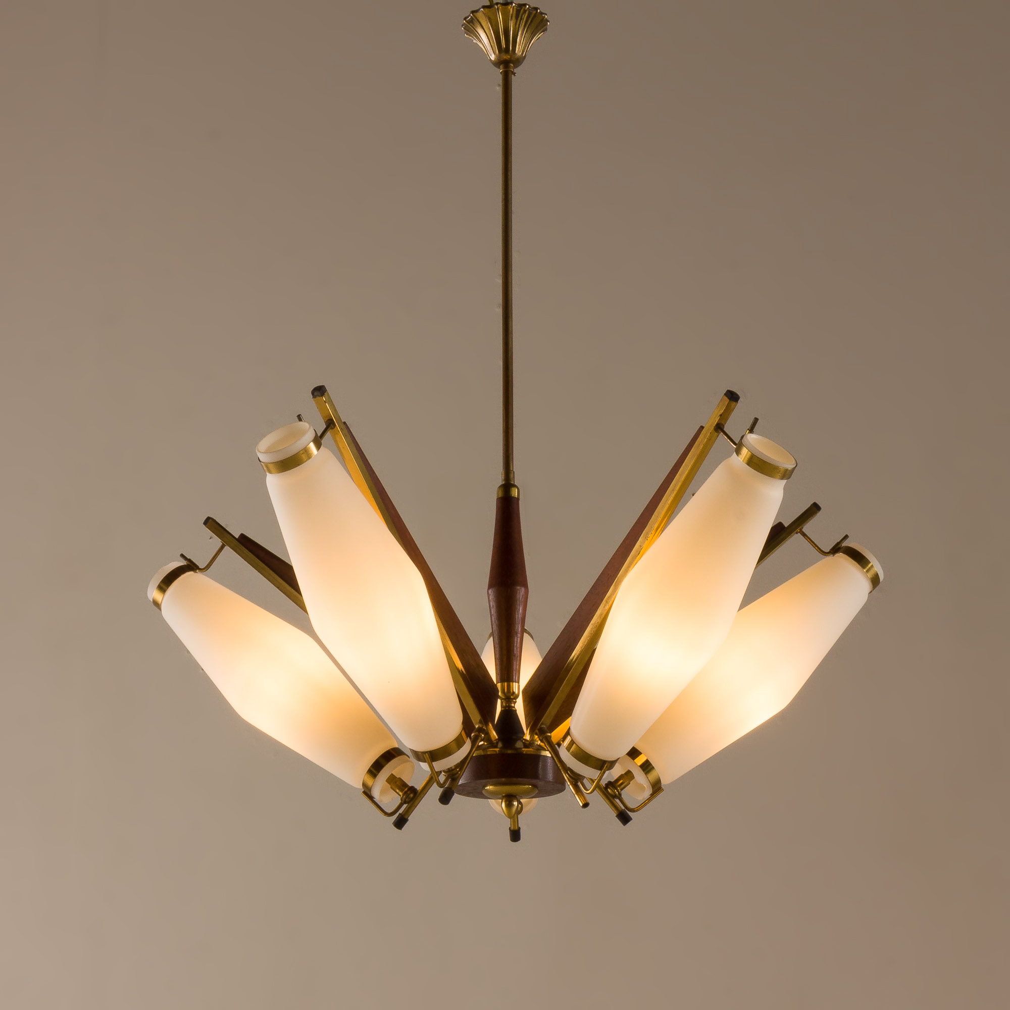 Elegancki włoski żyrandol z połowy XX wieku, zaprojektowany w charakterystycznym stylu Stilnovo.