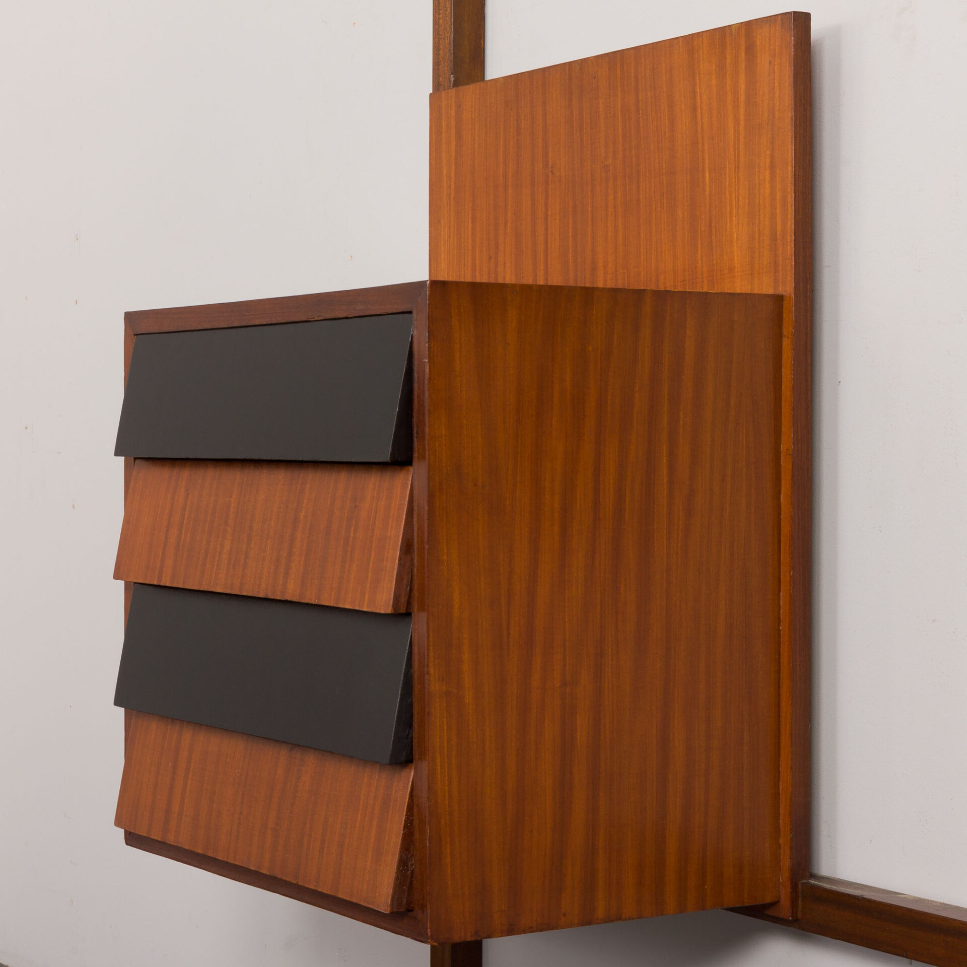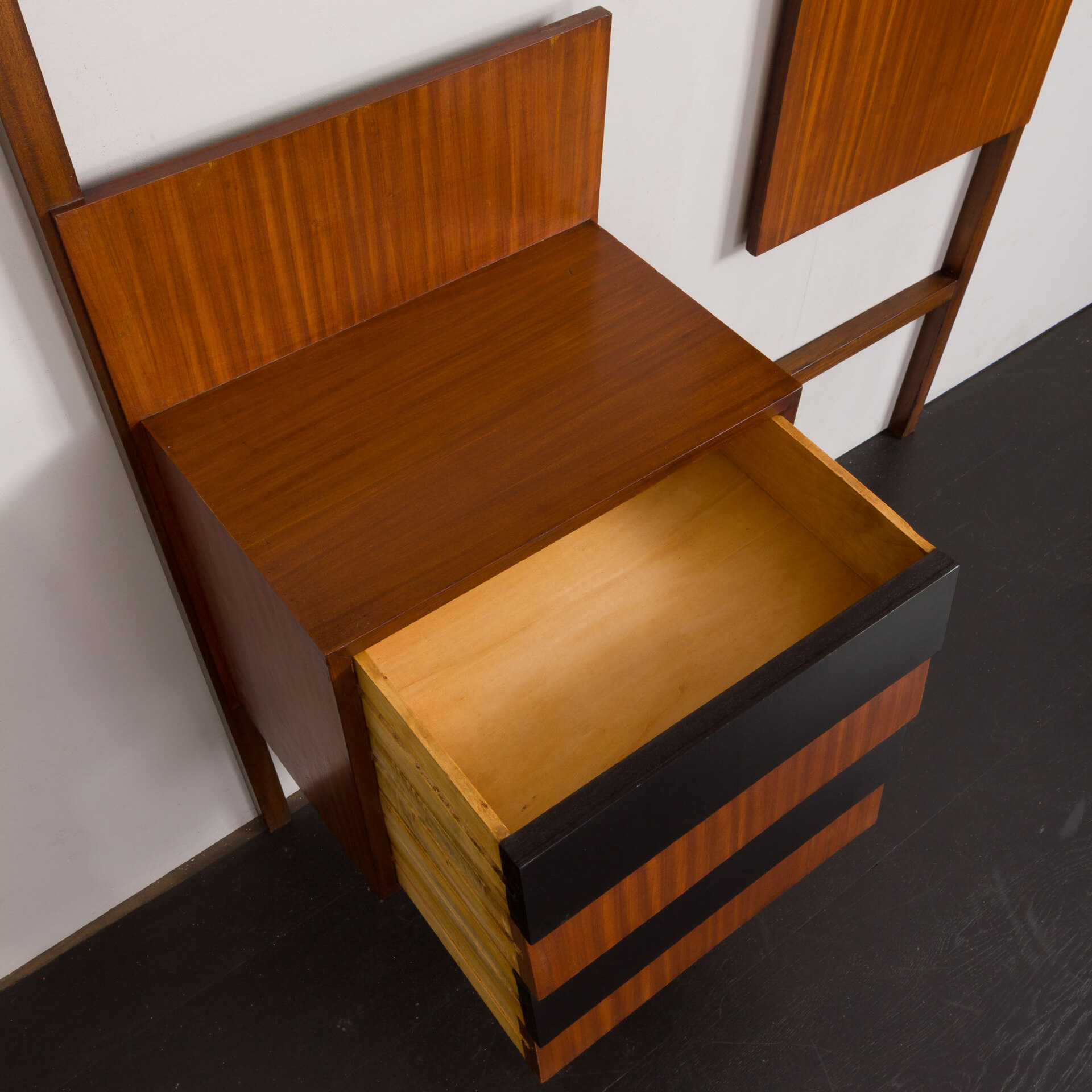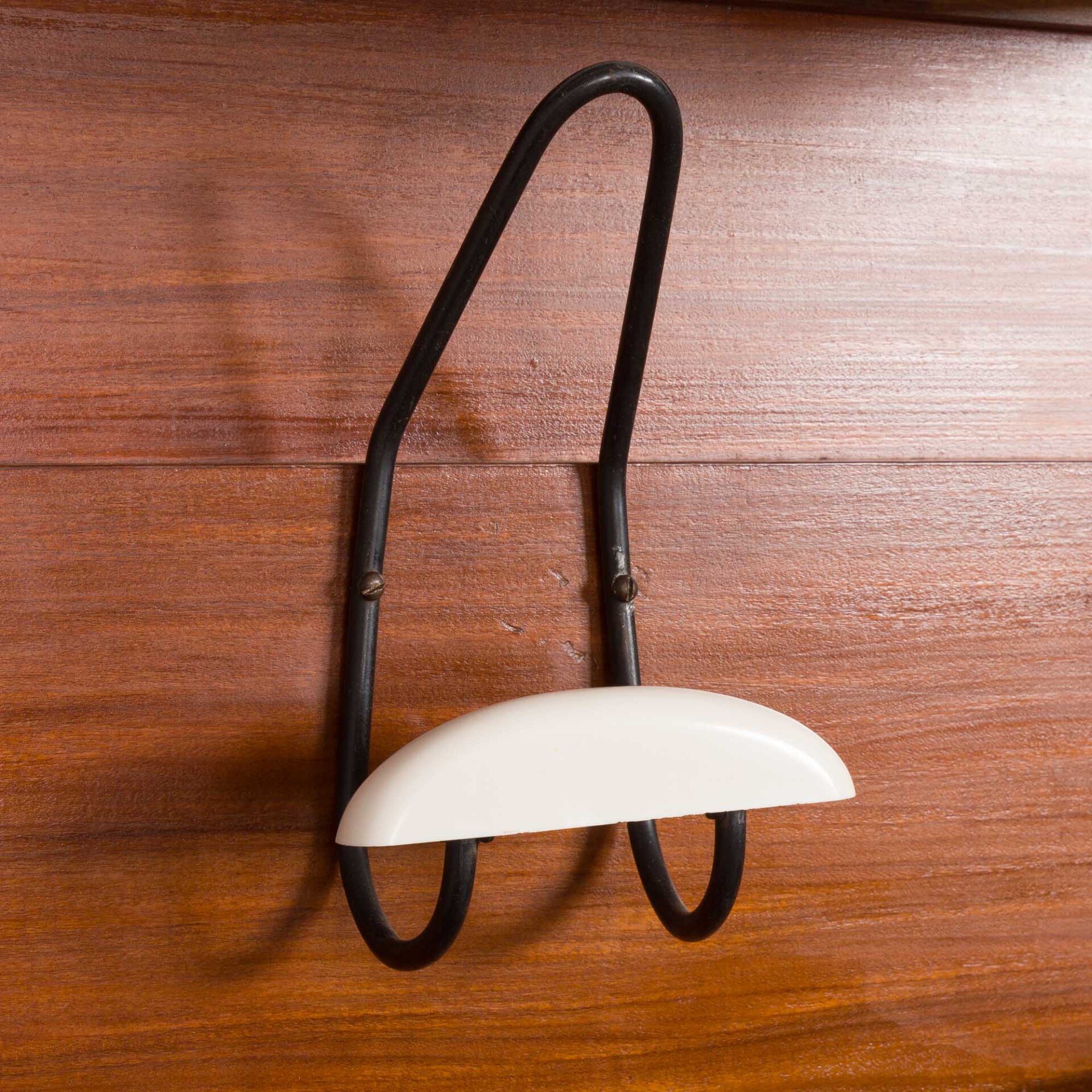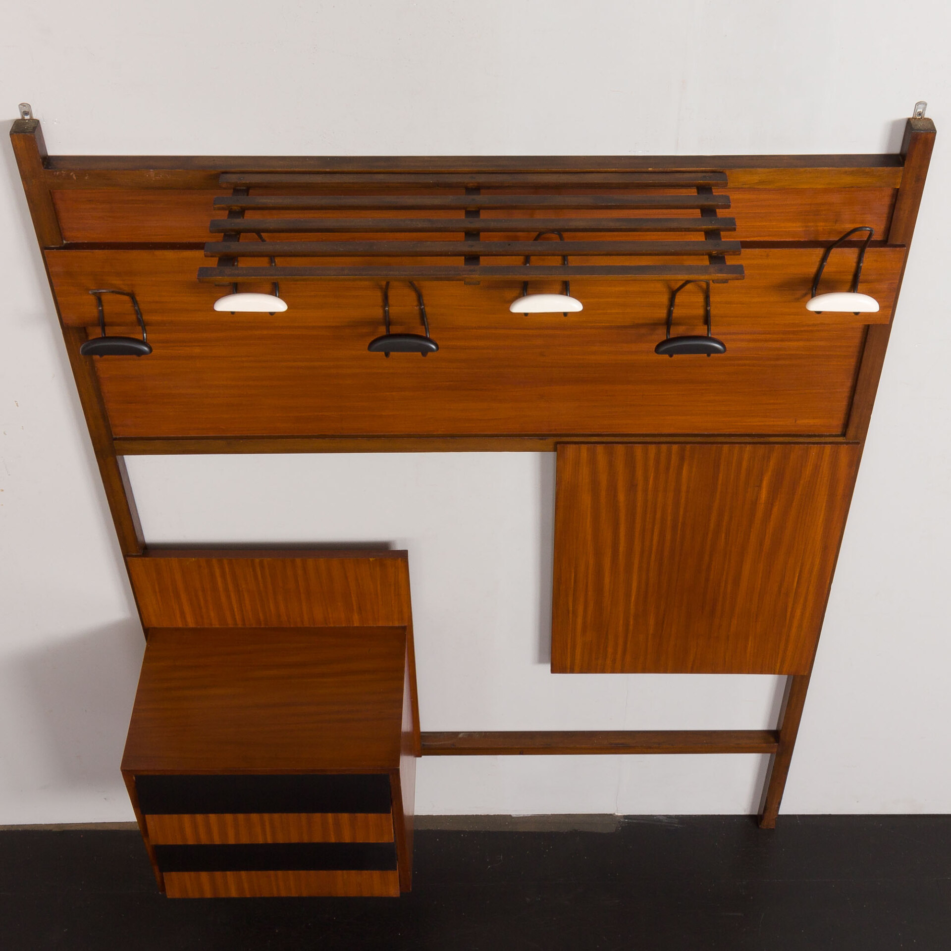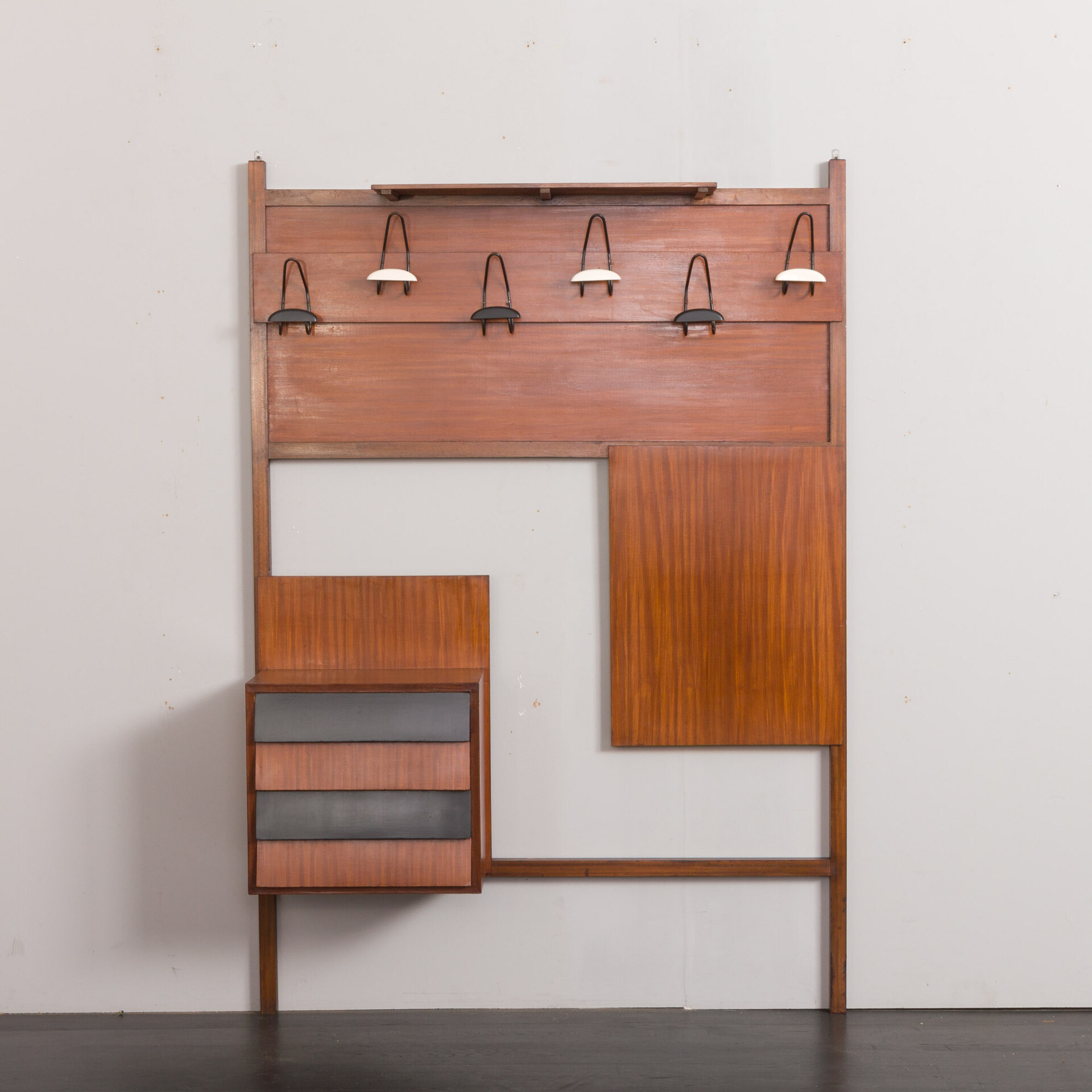 Włoski wieszak ścienny vintage na płaszcze pochodzi z lat 70. To wyjątkowy element wystroju, który doda do Twojego przedpokoju nie tylko funkcjonalności, ale również eleganckiego, włoskiego designu z okresu mid- century. Ten montowany na ścianie mahoniowy wieszak nie tylko wzbogaca wnętrze swoją ciepłą estetyką, ale także zachwyca kontrastowymi detalami w kolorach czarnym i białym, tworząc efektowną i zapadającą w pamięć aranżację oraz niezwykły kontrast, który przyciąga uwagę.