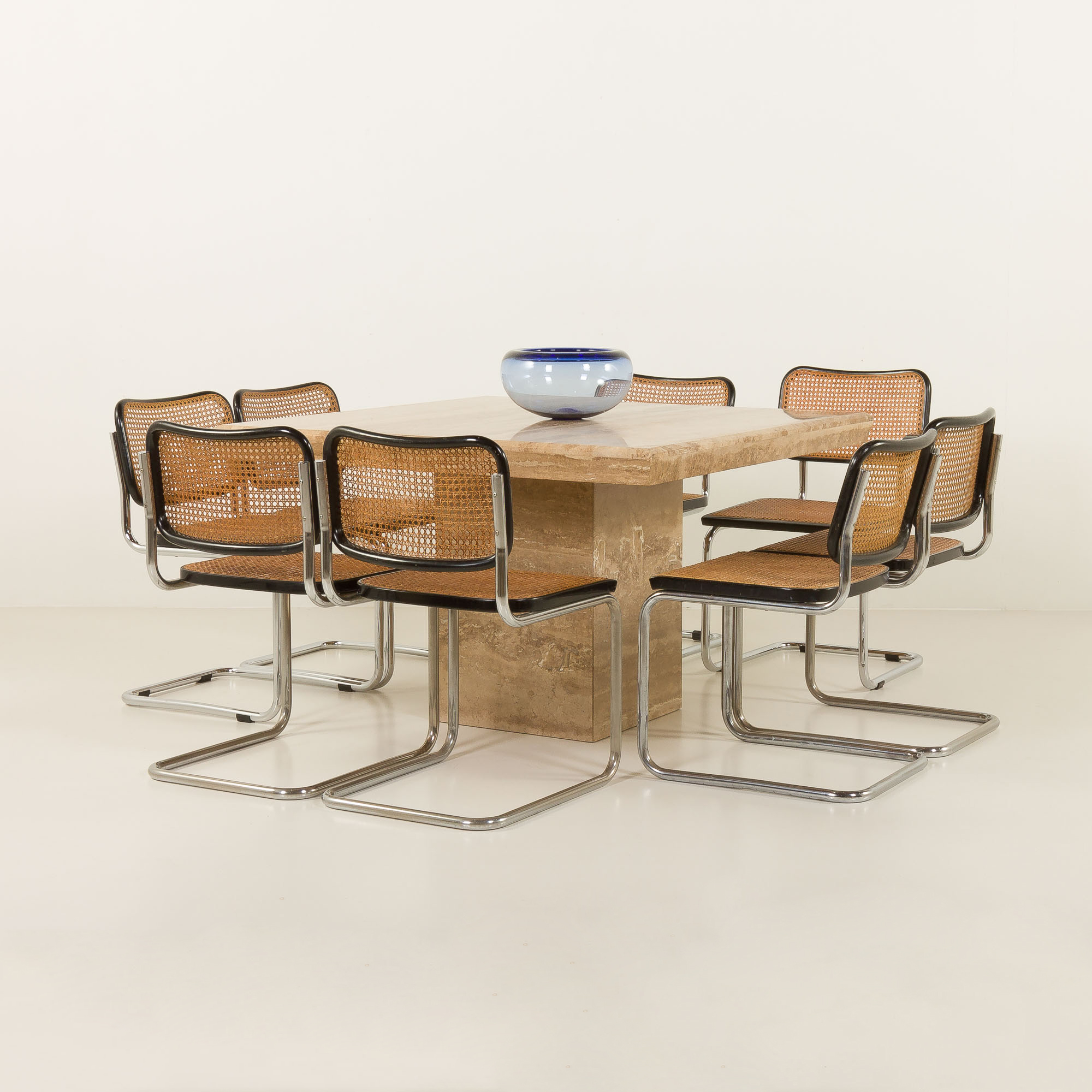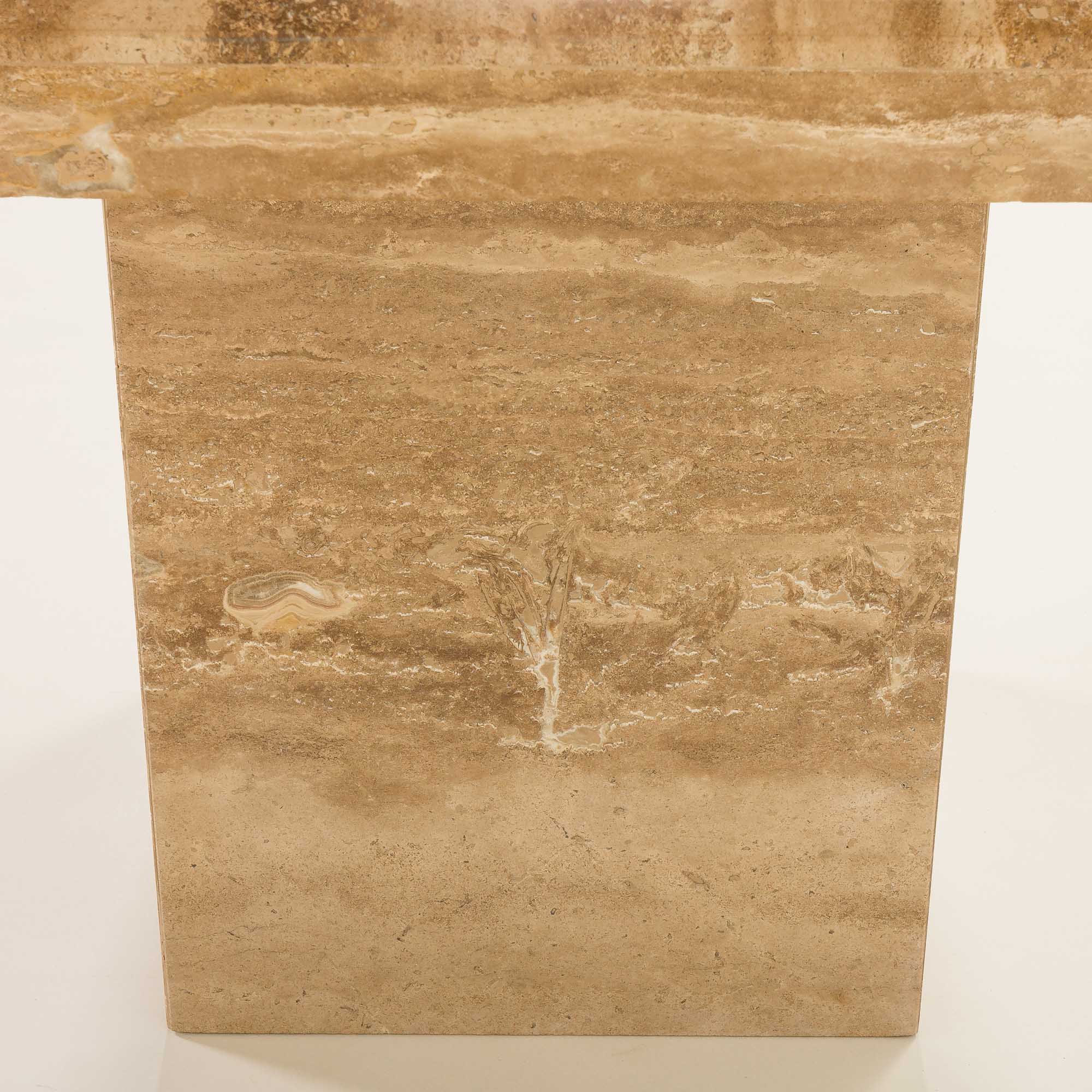 Stół do jadalni z trawertynu to wyjątkowy przykład włoskiego designu z lat 70., który łączy elegancję, solidność i ponadczasowy styl. Wykonany w całości z naturalnego kamienia, wyróżnia się unikalnym wzorem charakterystycznym dla trawertynu z gładką powierzcnią, wynikającą z polerowania i zastosowania żywicy, co nadaje mu niepowtarzalny wygląd.