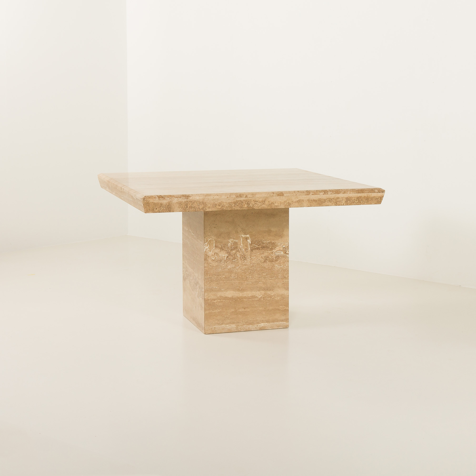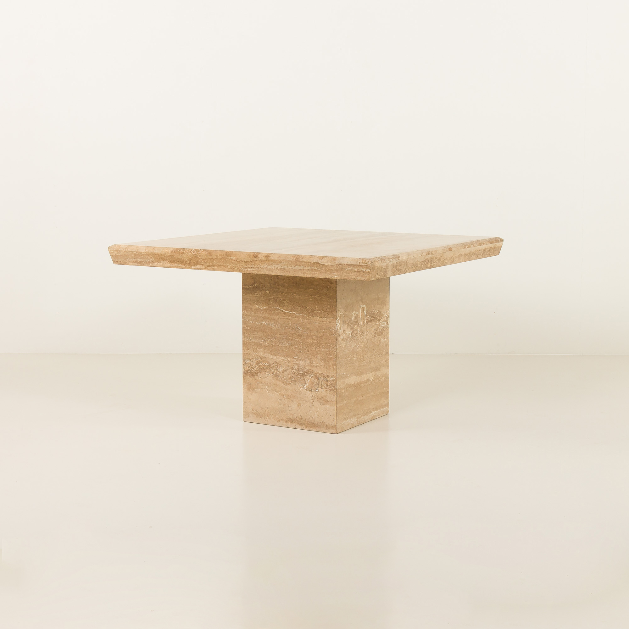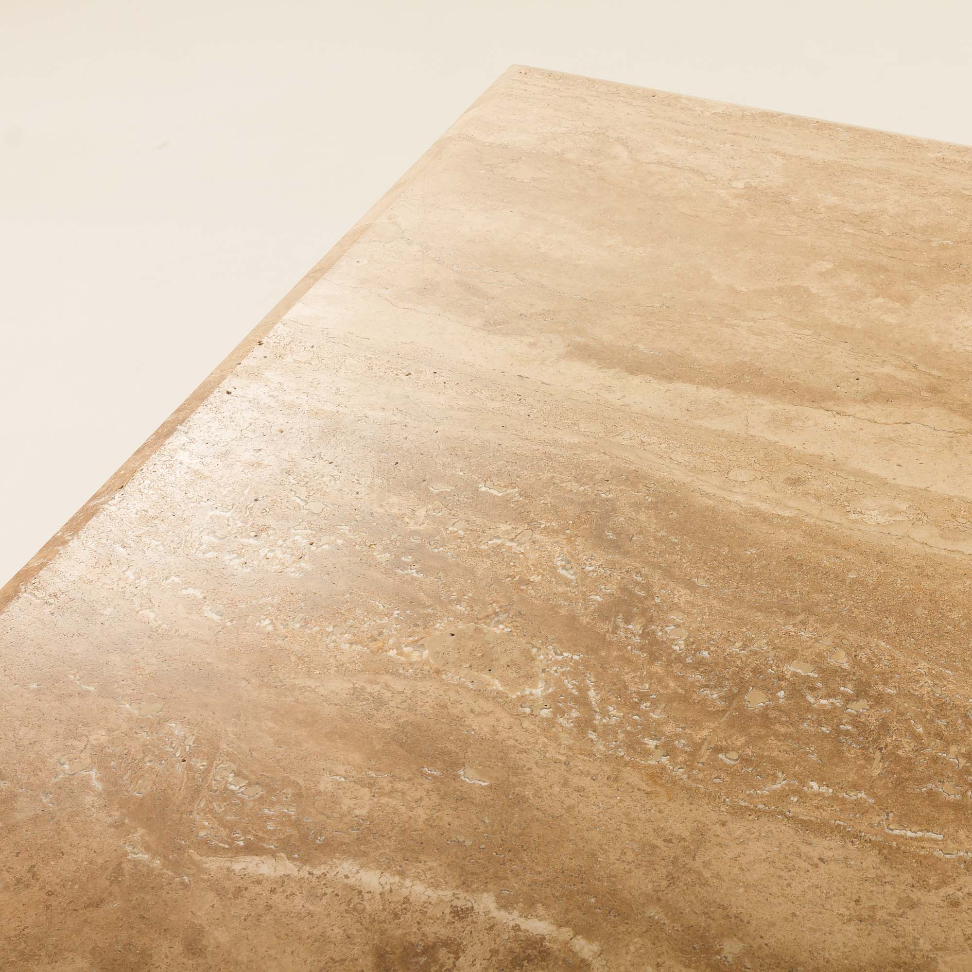 Jego masywna, geometryczna forma odzwierciedla estetykę epoki, w której dominowały surowe, minimalistyczne bryły i szlachetne materiały. Ciepłe, beżowe i kremowe odcienie kamienia sprawiają, że doskonale komponuje się zarówno z klasycznymi, jak i nowoczesnymi wnętrzami.