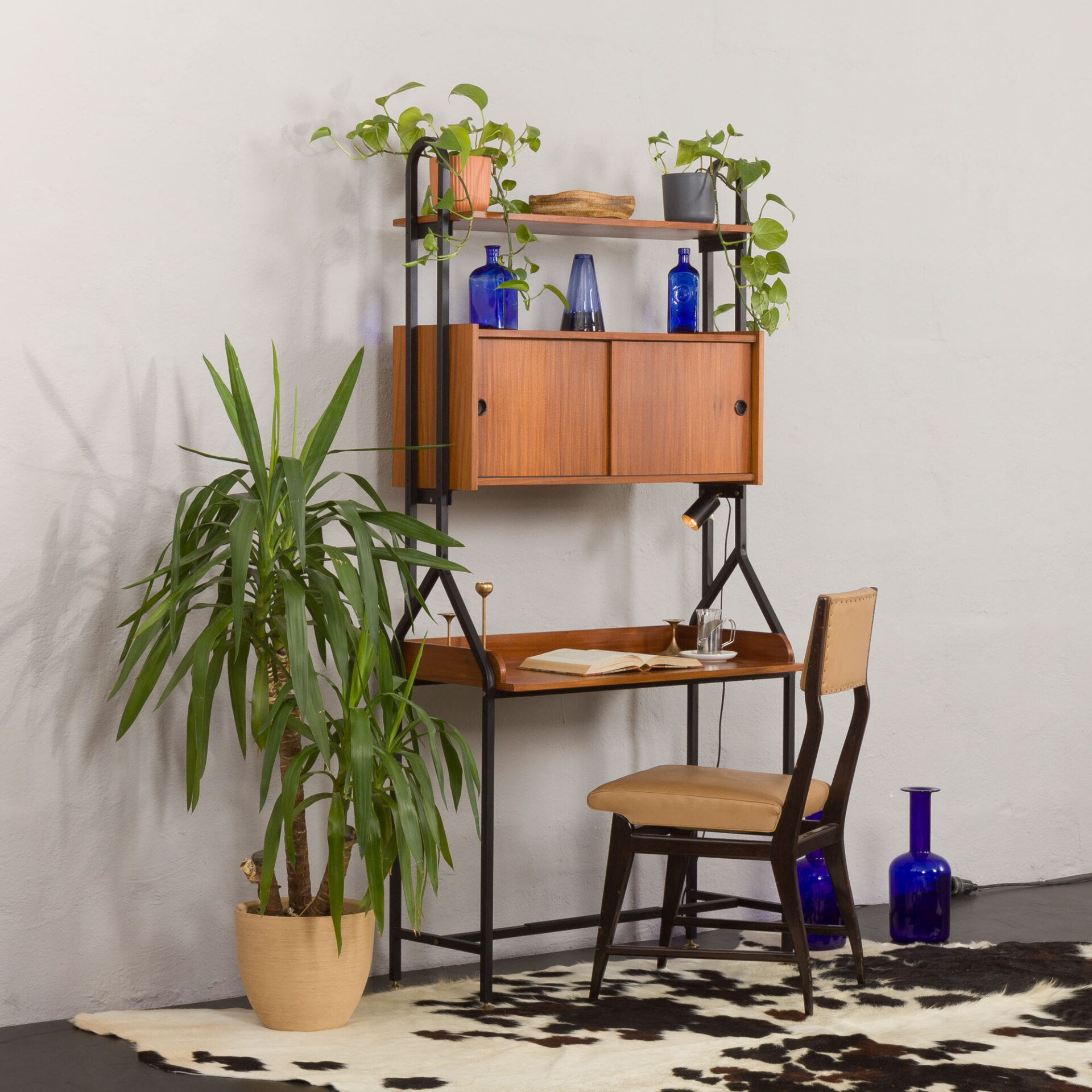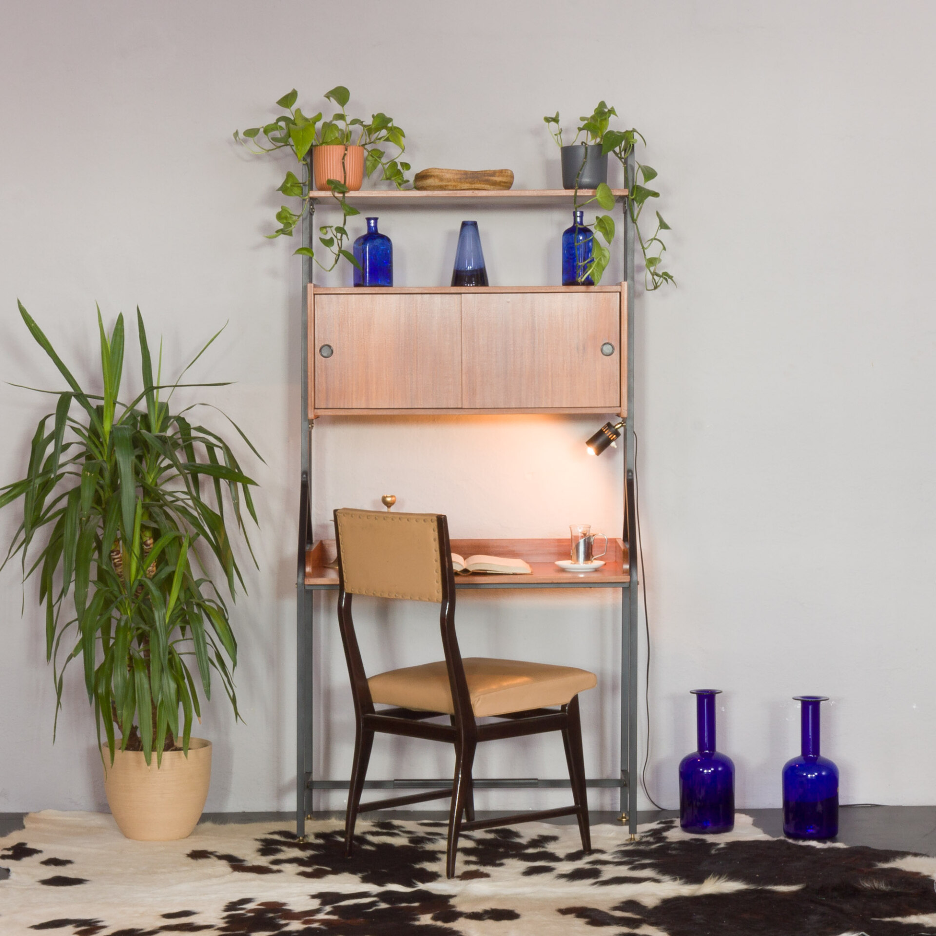 Włoski regał vintage z biurkiem, z okresu mid-century, w stylu Silvio Cavatorta
