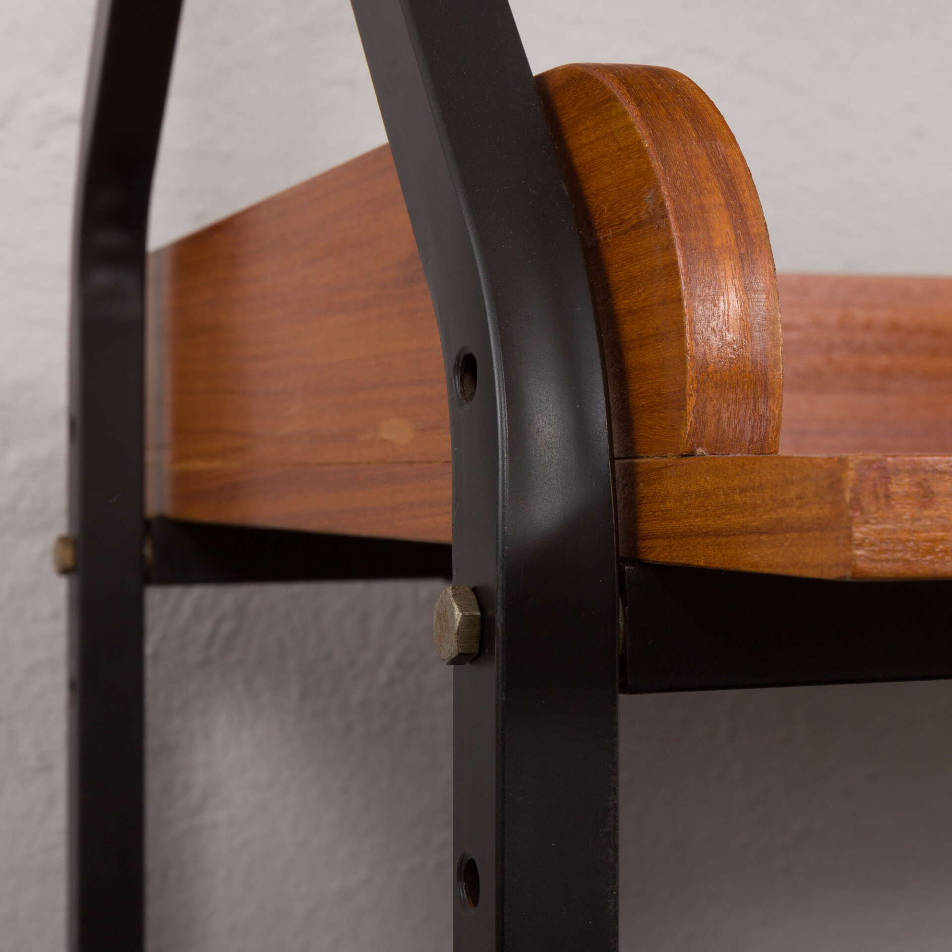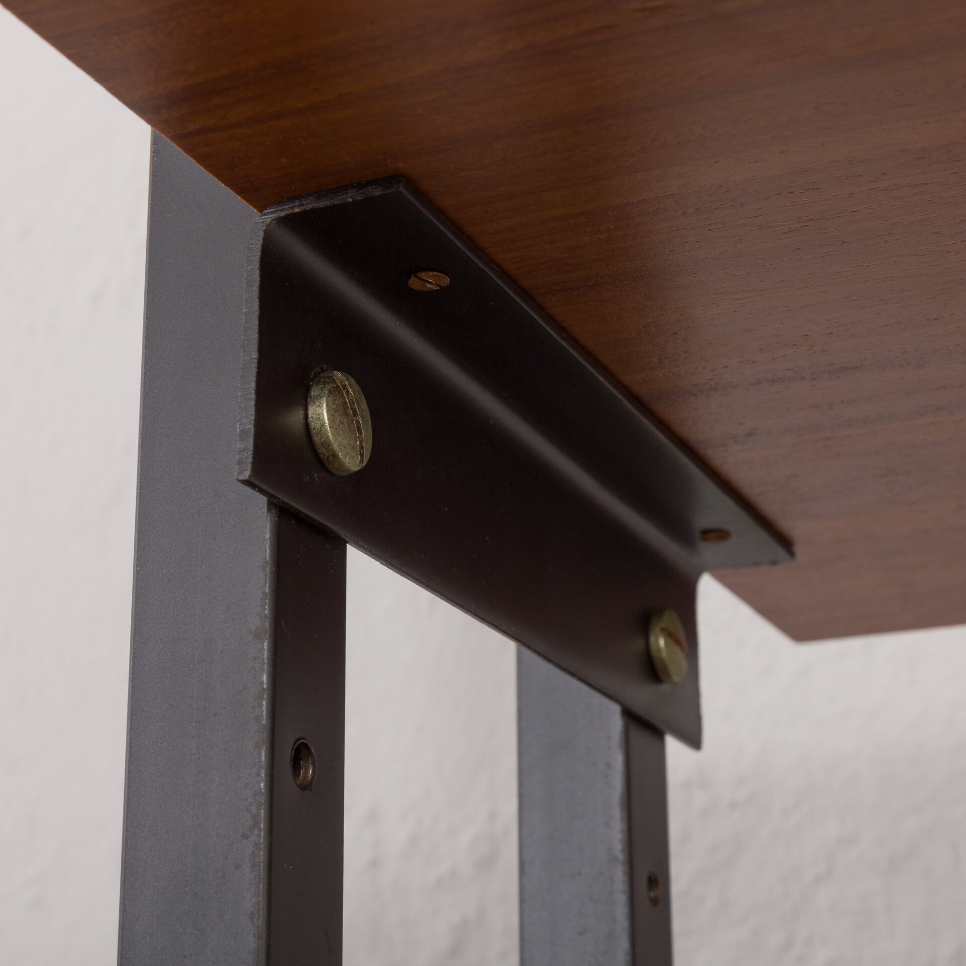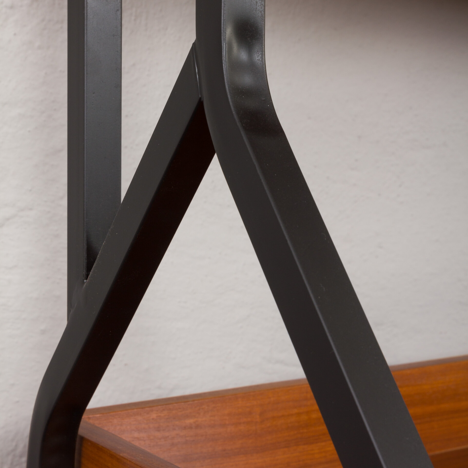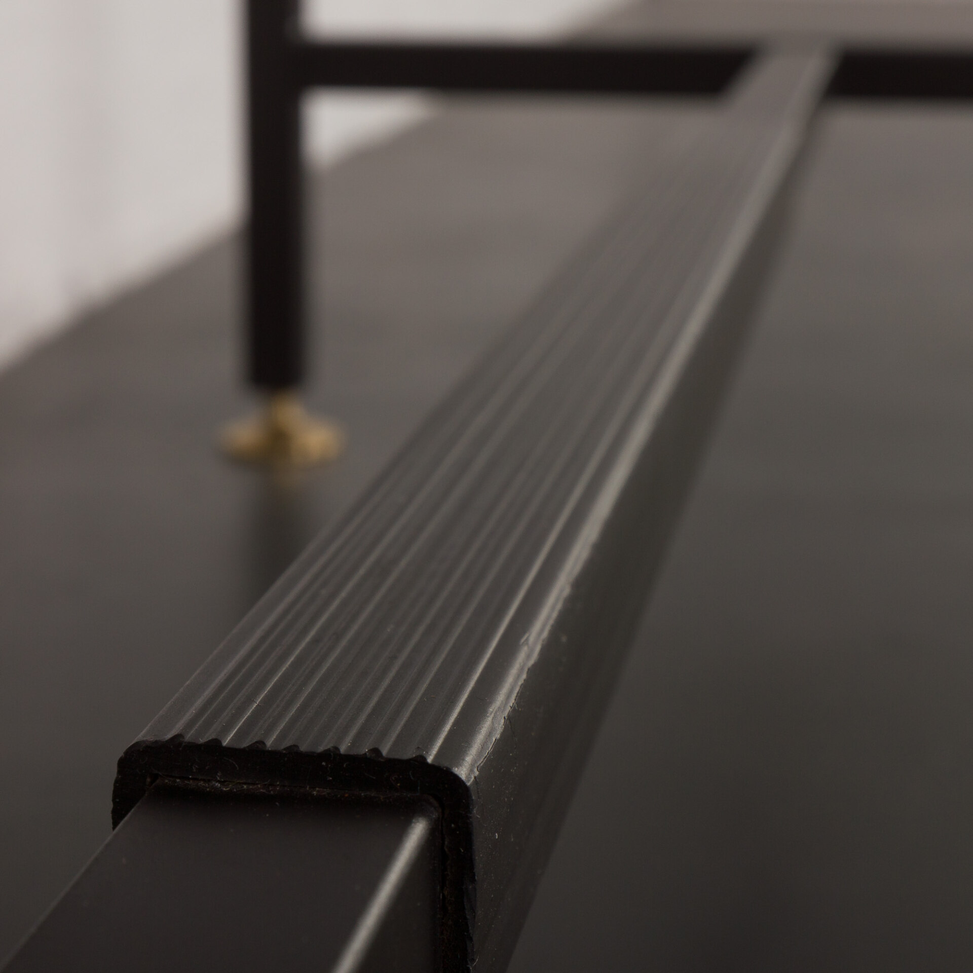 Minimalistyczny, a jednocześnie funkcjonalny włoski, wolnostojący regał vintage z epoki mid-century, swym designem nawiązuje do stylu Silvio Cavatorta z lat 60. Całość tworzy funkcjonalne miejsce do pracy na home office z dodatkową półką na książki i szafką. Biurko i dodatkowe oświetlenie załączone do zestawu pozwoli na pracę w salonie, jak i sypialni. Precyzyjnie wykonana konstrukcja, pomalowanych na czarno, metalowych wsporników tworzy efektowny kontrast wobec ciepłej, bogatej barwy forniru tekowego. Połączenie tych materiałów nie tylko doskonale oddaje charakter i styl włoskiego okresu mid-century, ale również idealnie wpasowuje się w różne style wnętrz - od współczesnych po klasyczne aranżacje. Nawet na nierównych powierzchniach regał zachowuje pełną stabilność dzięki precyzyjnie wykonanym, regulowanym nóżkom z mosiądzu, których złoty odcień nadaje mu niezwykłej elegancji i klasy.