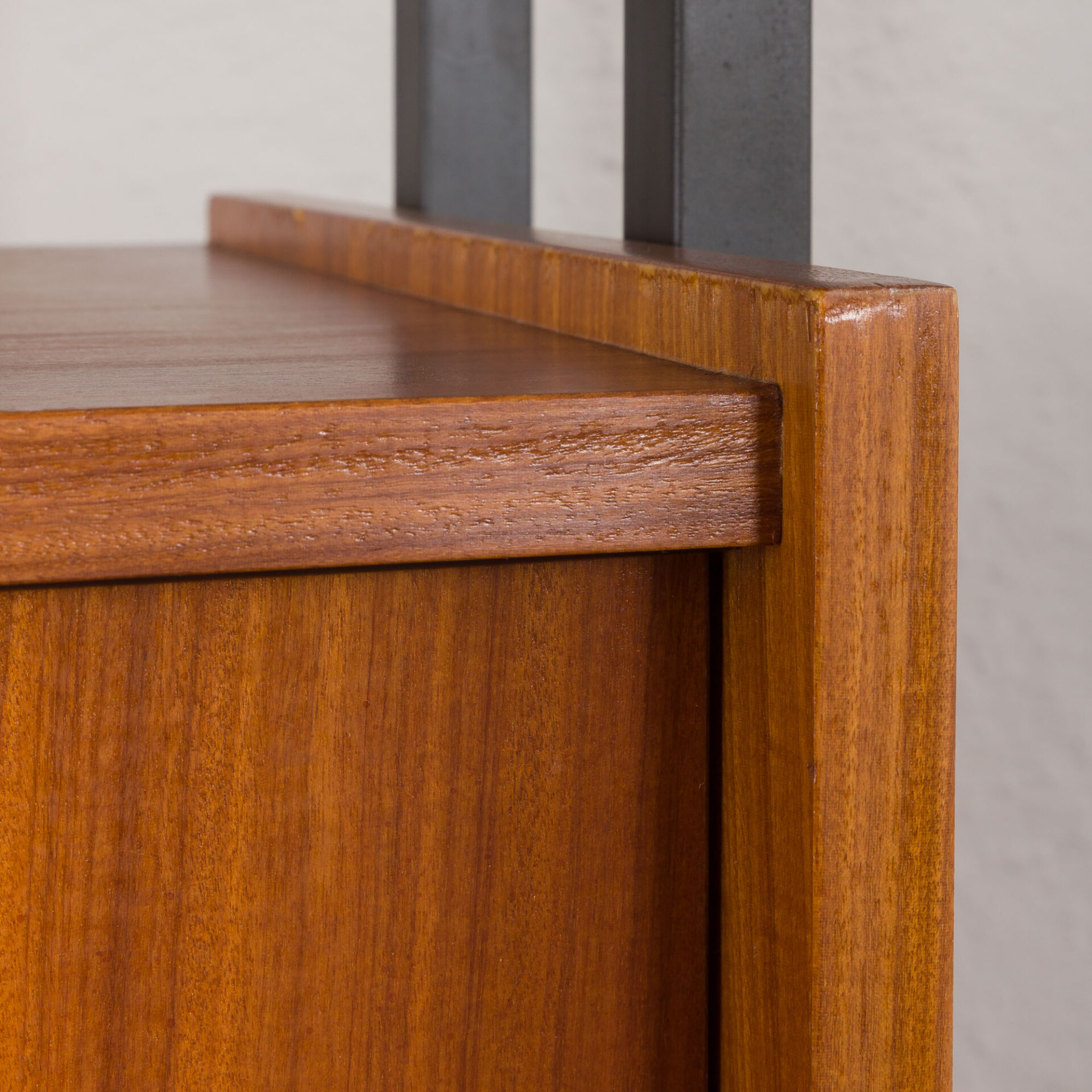 Zestaw został sprawdzony przez nasz zespół. Upewniliśmy się, że lampka jest sprawna, drzwi działają prawidłowo a wszystkie elementy pasują do siebie idealnie. Całe drewno zostało odmłodzone Olejem Duńskim. Elementy metalowe zostały przemalowane na czarno. Pozostawiamy drobne ślady użytkowania, które nie psują estetyki, a jedynie potwierdzają oryginalność mebla. Staramy się przywrócić meblom ich najlepszy wygląd, wciąż biorąc pod uwagę, że mają 60 lat.
