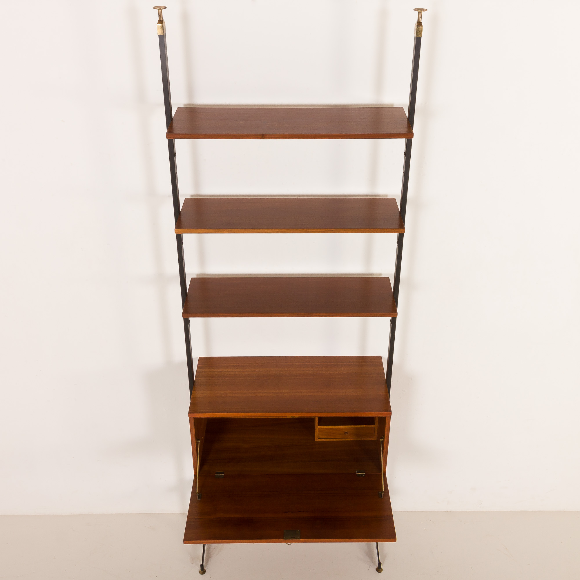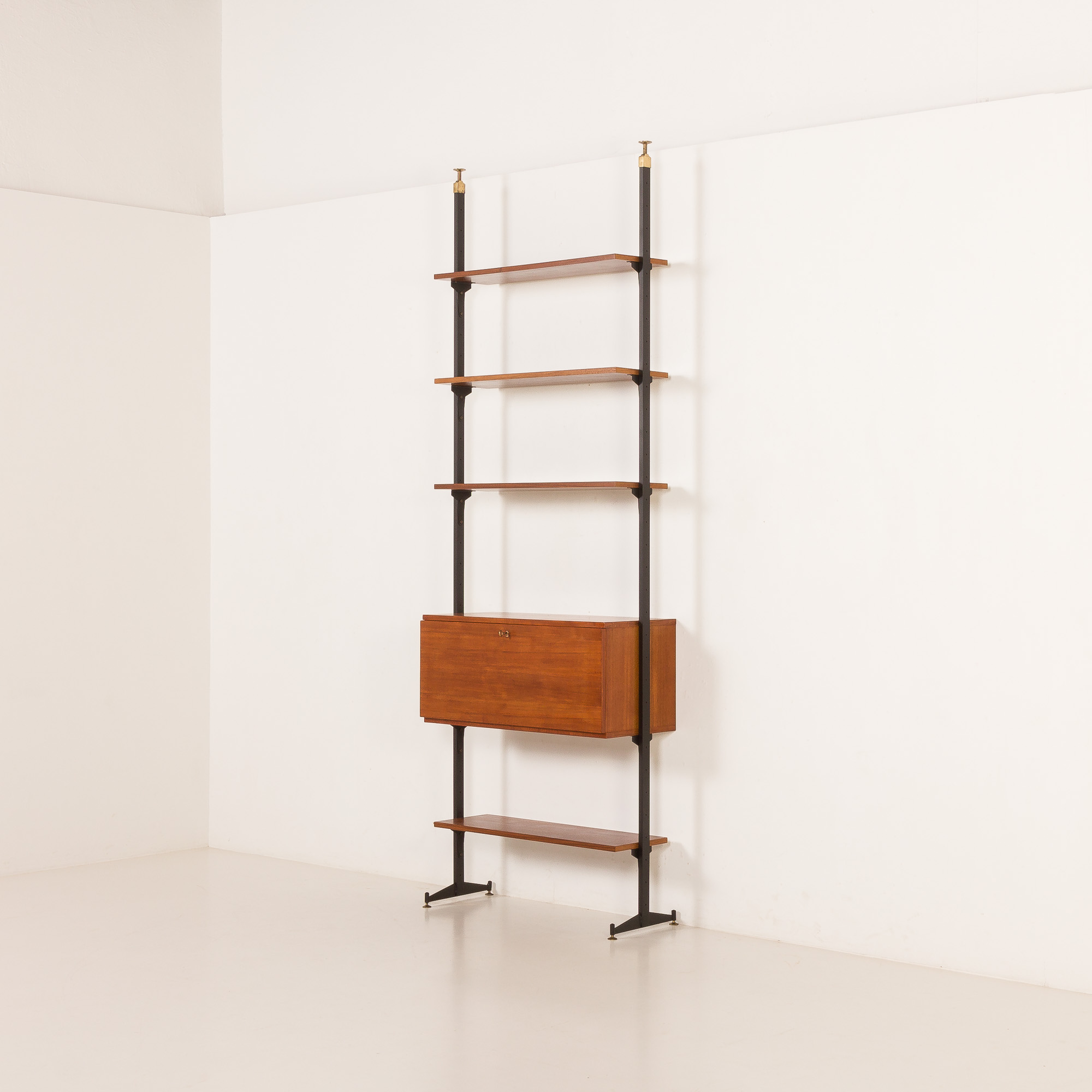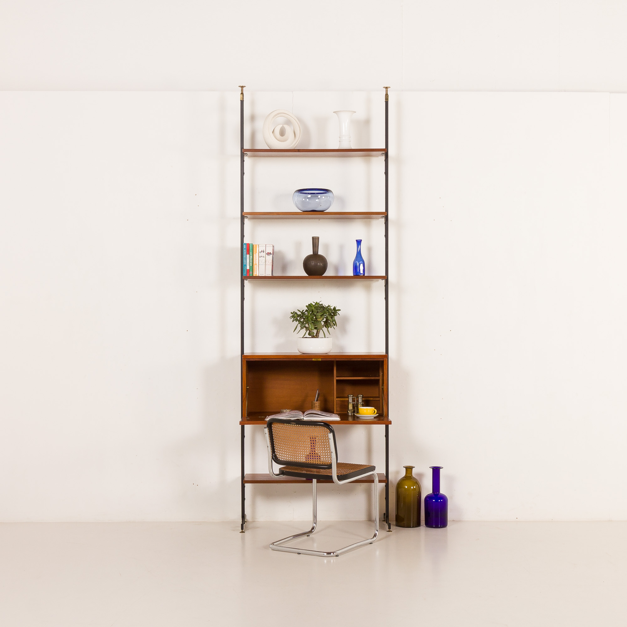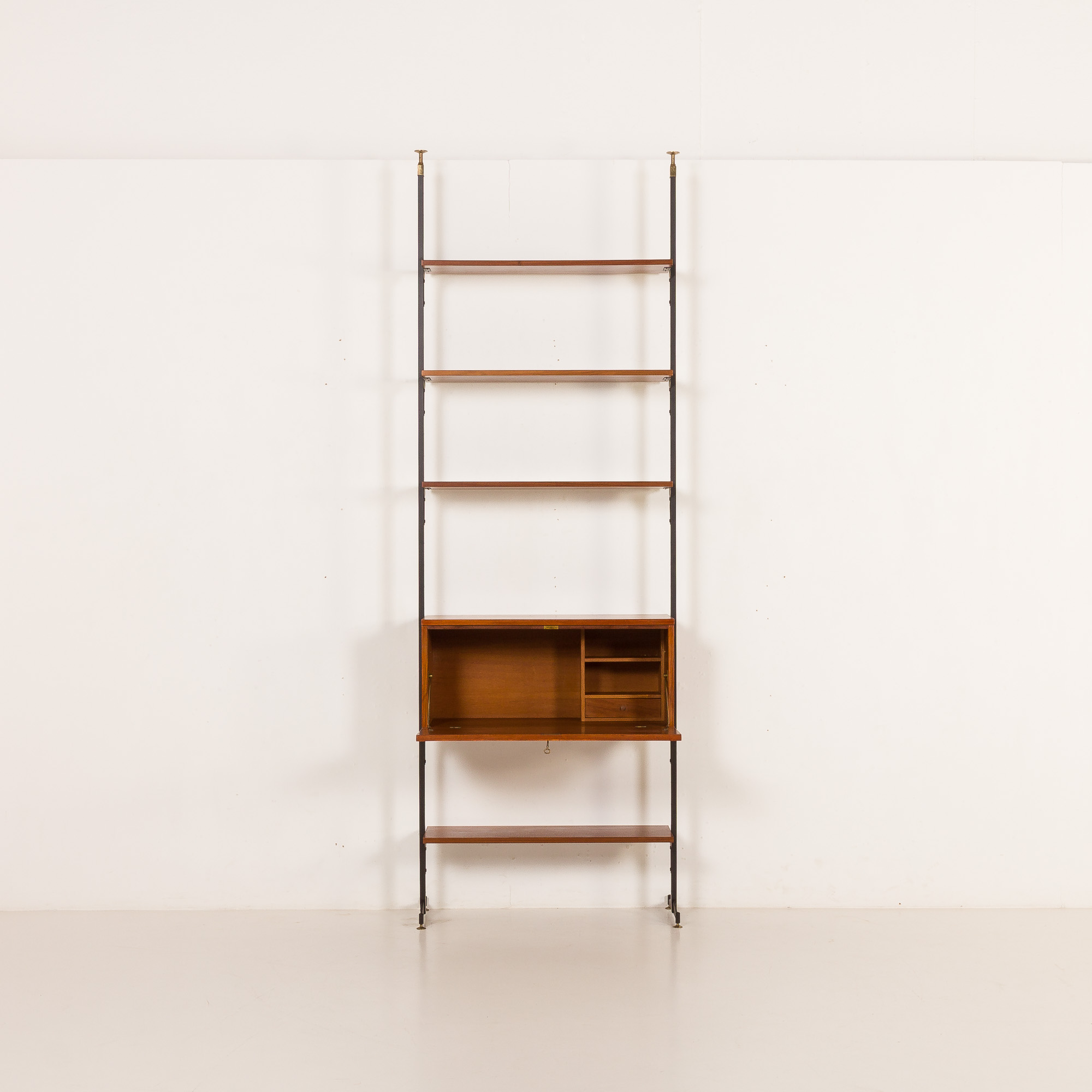Ten włoski, sięgający od podłogi do sufitu, regał z biurkiem został zaprojektowany w latach 60. Idealnie sprawdzi się jako przepierzenie w większych mieszkaniach lub pokojach. Może również stworzyć dyskretną i elegancką przestrzeń roboczą w sypialni lub salonie.