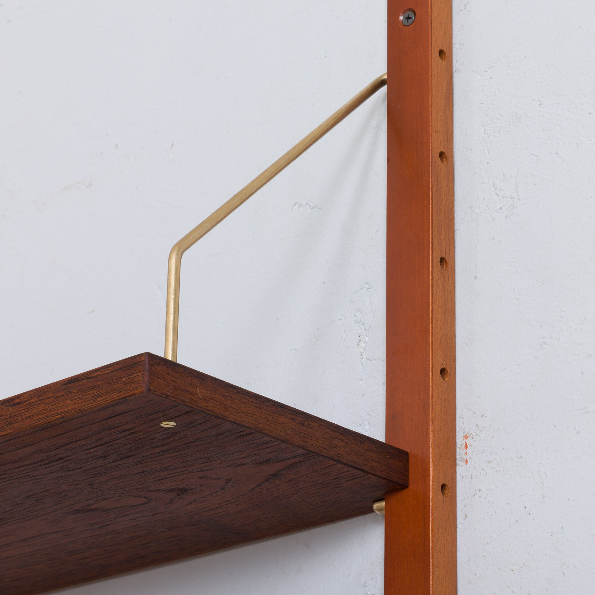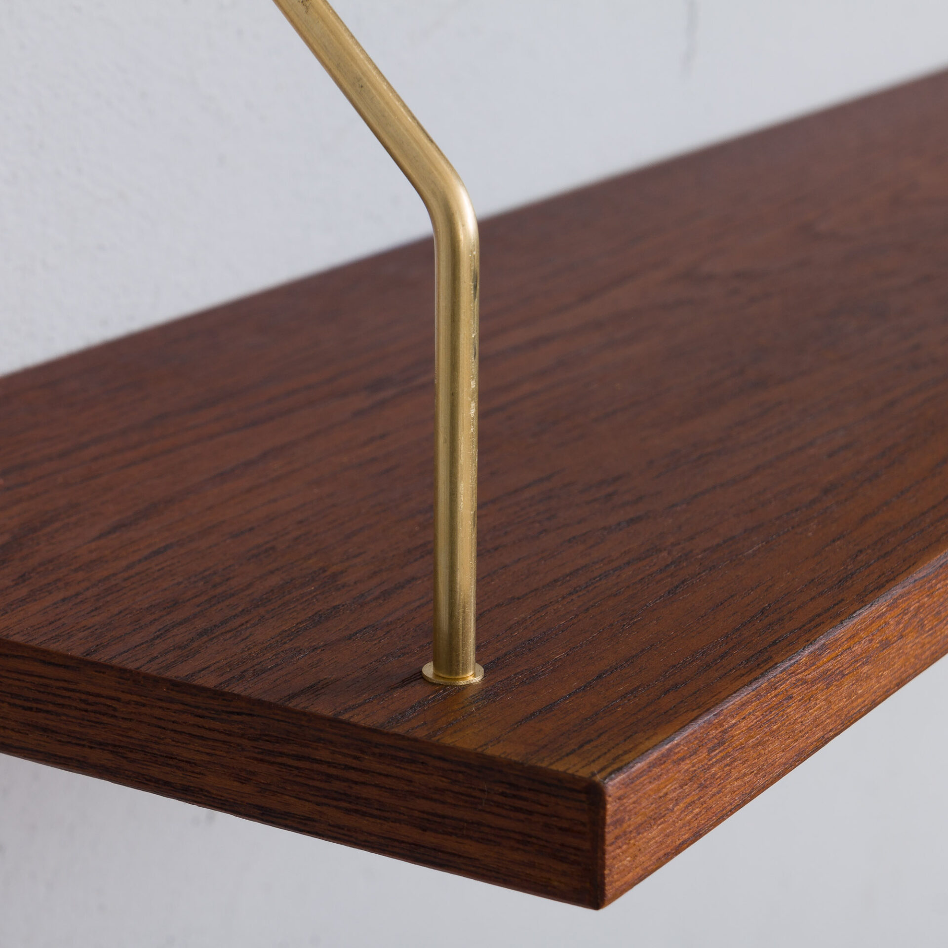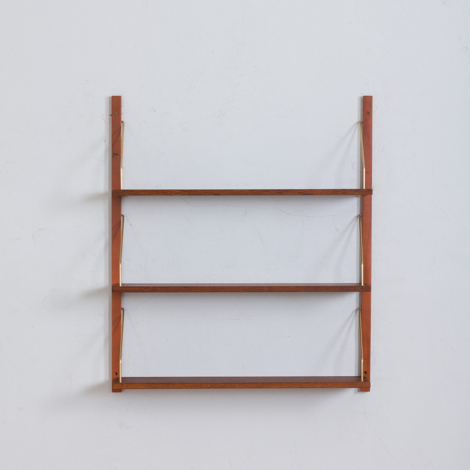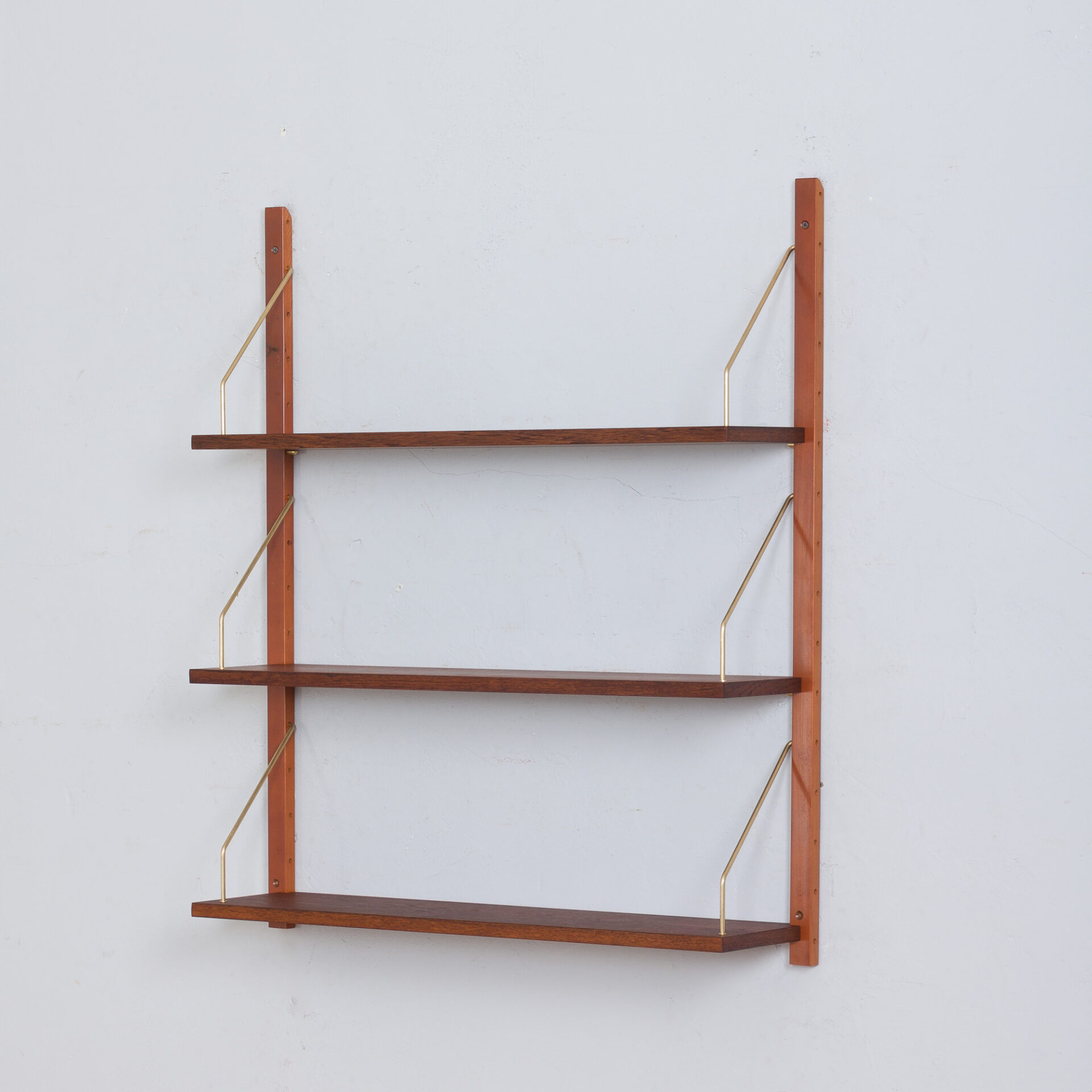 Zestaw trzech półek został zaprojektowany w stylu Prebena Sorensena w latach 60-tych. Te proste i eleganckie półki na książki wykonane z drewna tekowego zamocowane są na wspornikach z litego drewna przy pomocy mosiężnych uchwytów. Zestaw składa się z: