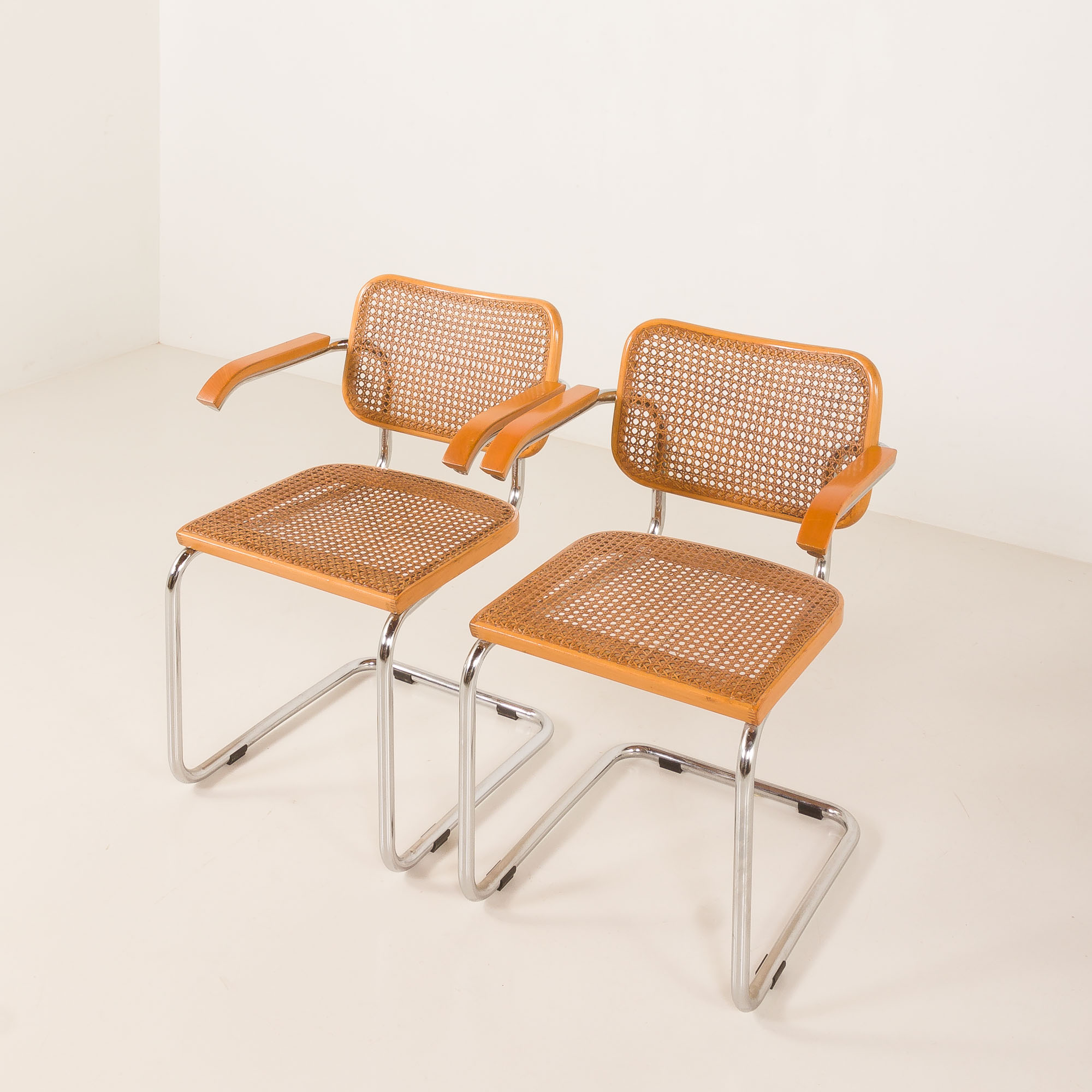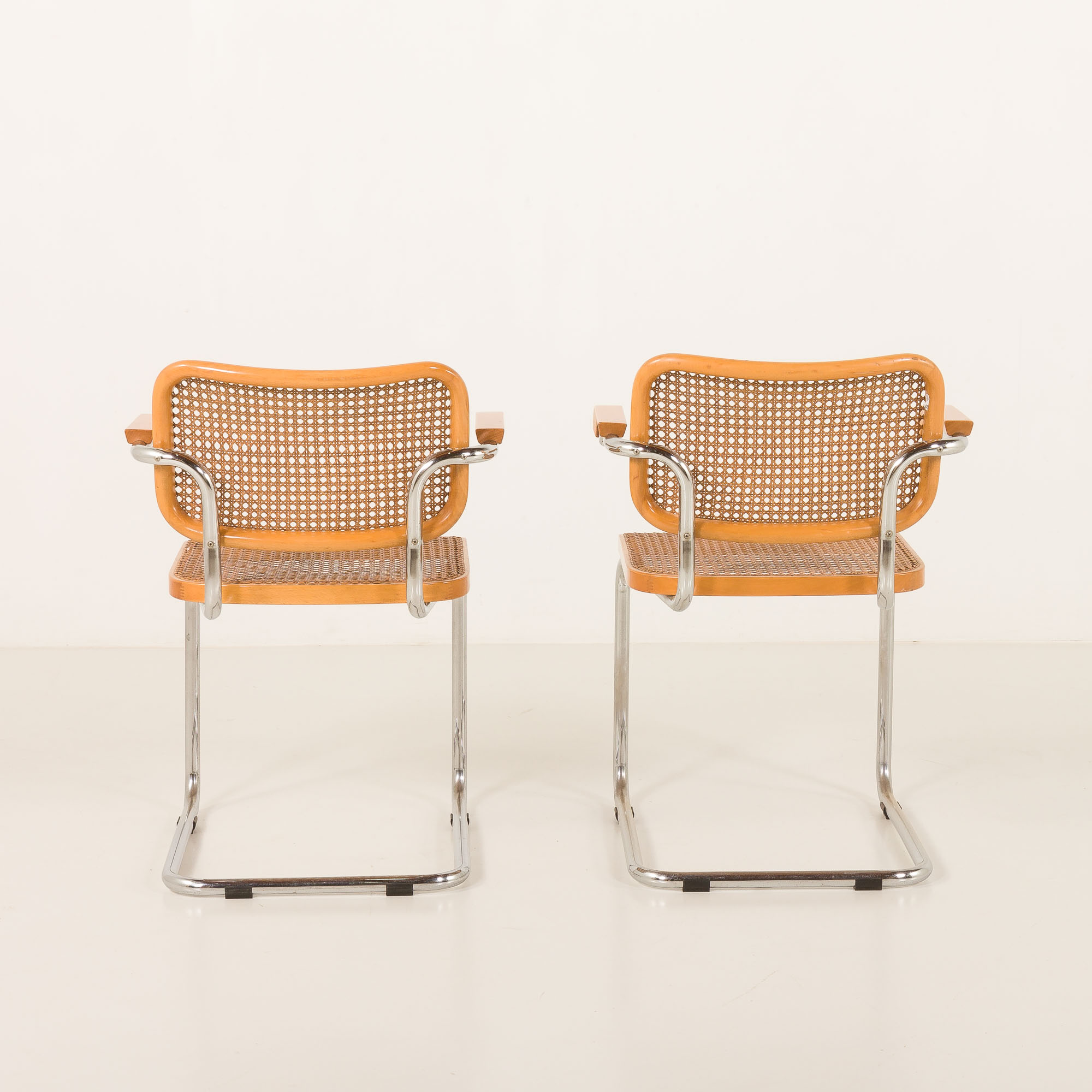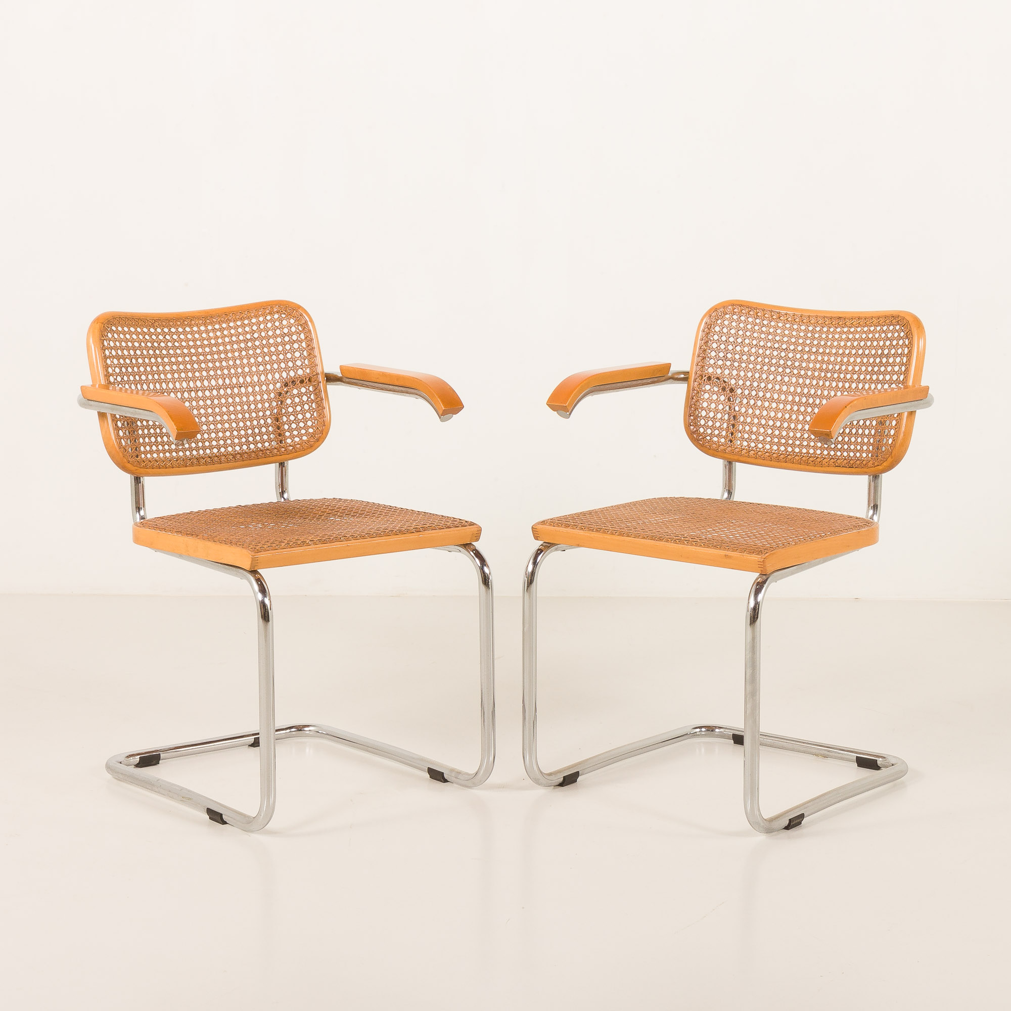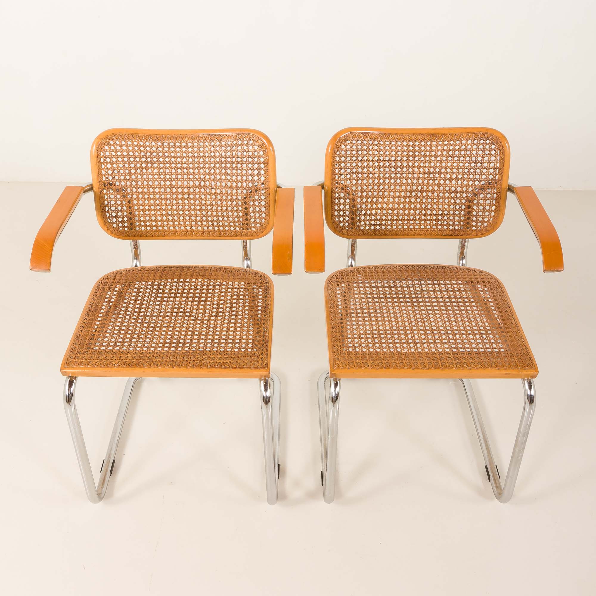 Para krzeseł Cesca zaprojektowana przez Marcela Breuera i wyprodukowana przez Gavinę, na początku lat 60 XX wieku.