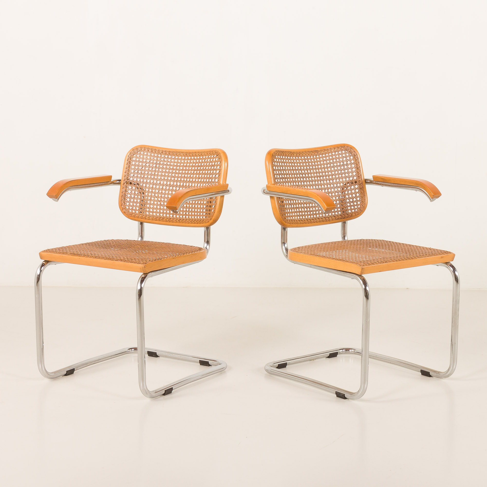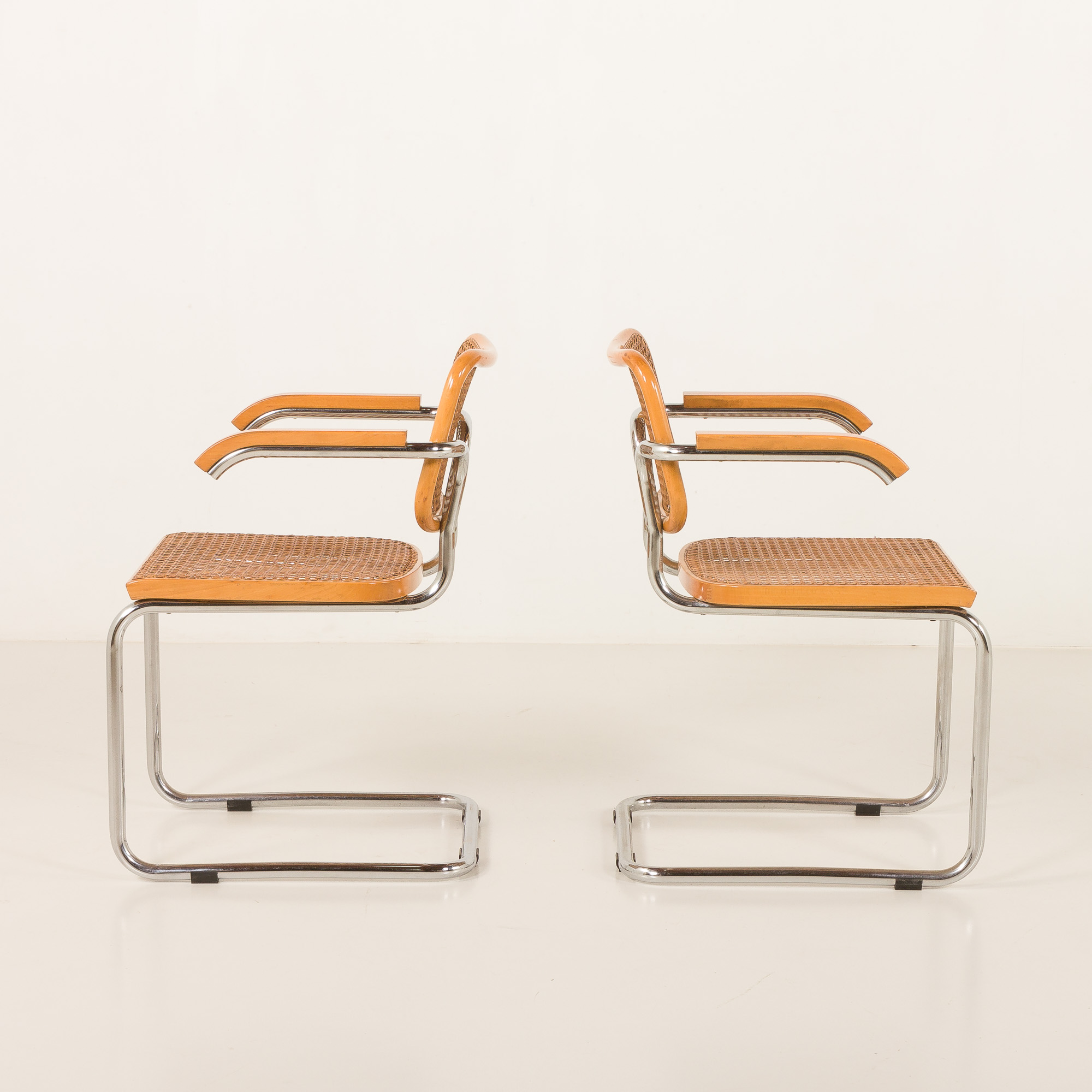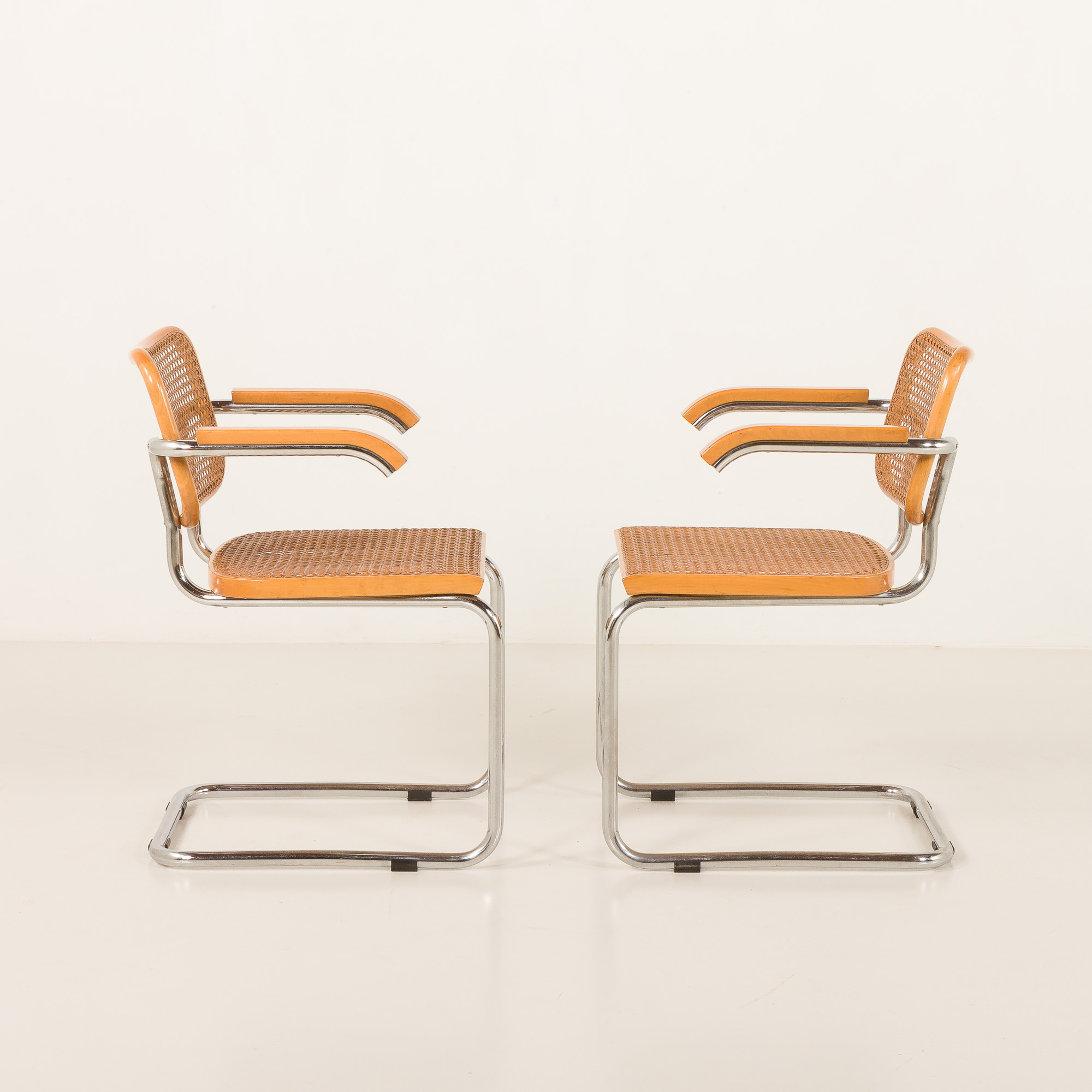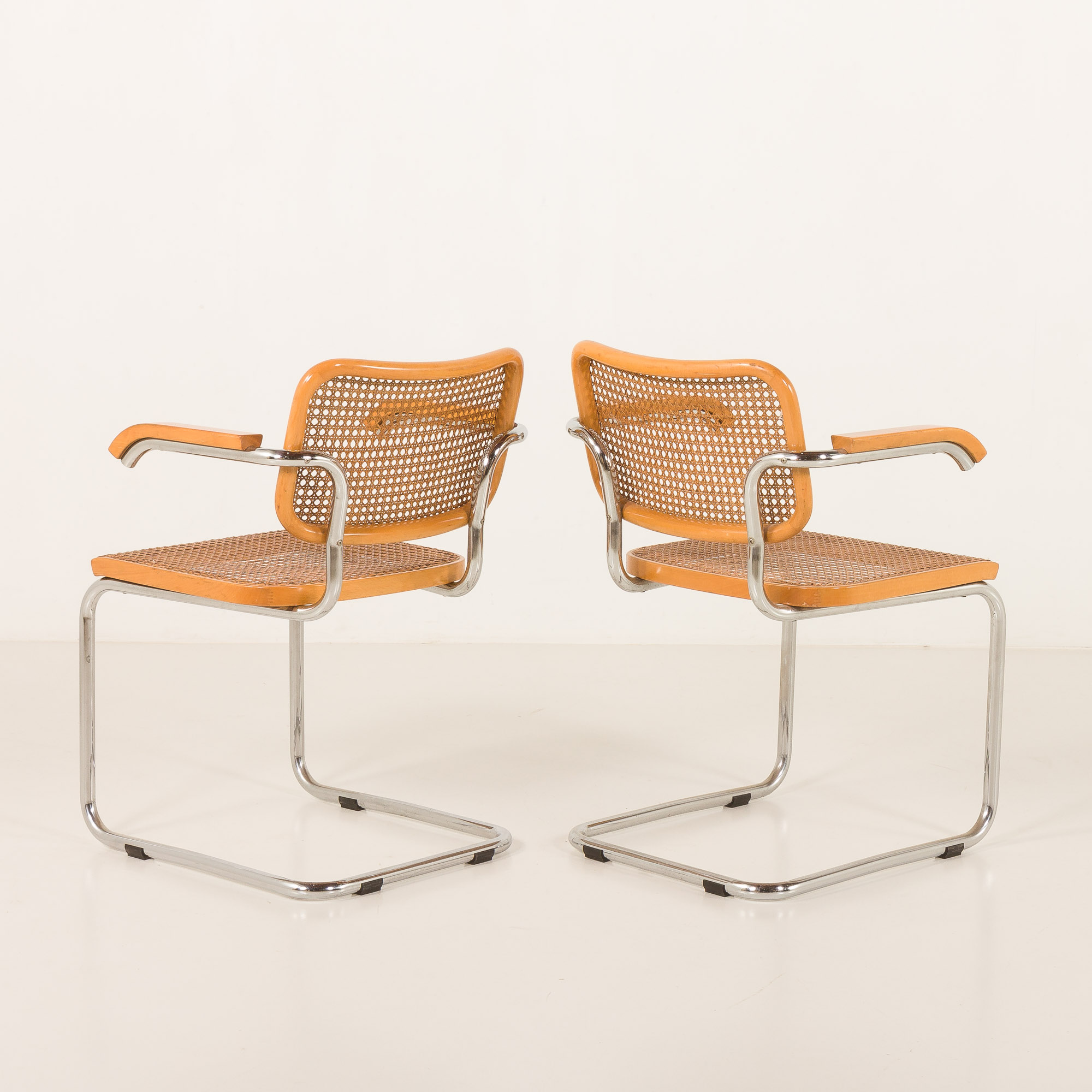 Para krzeseł Cesca zaprojektowana przez Marcela Breuera i wyprodukowana przez Gavinę, na początku lat 60 XX wieku.