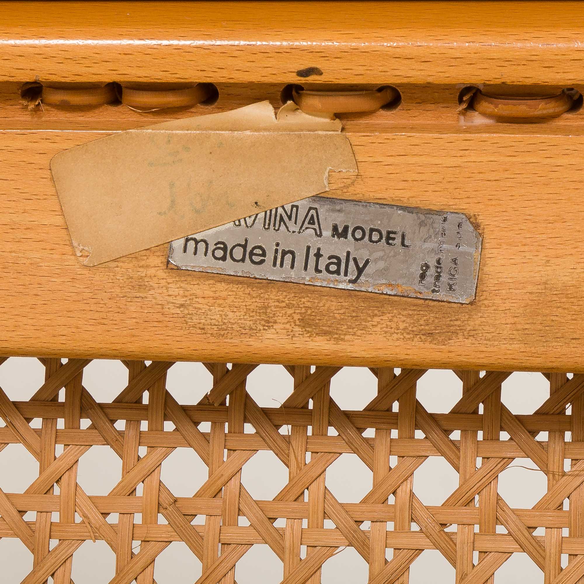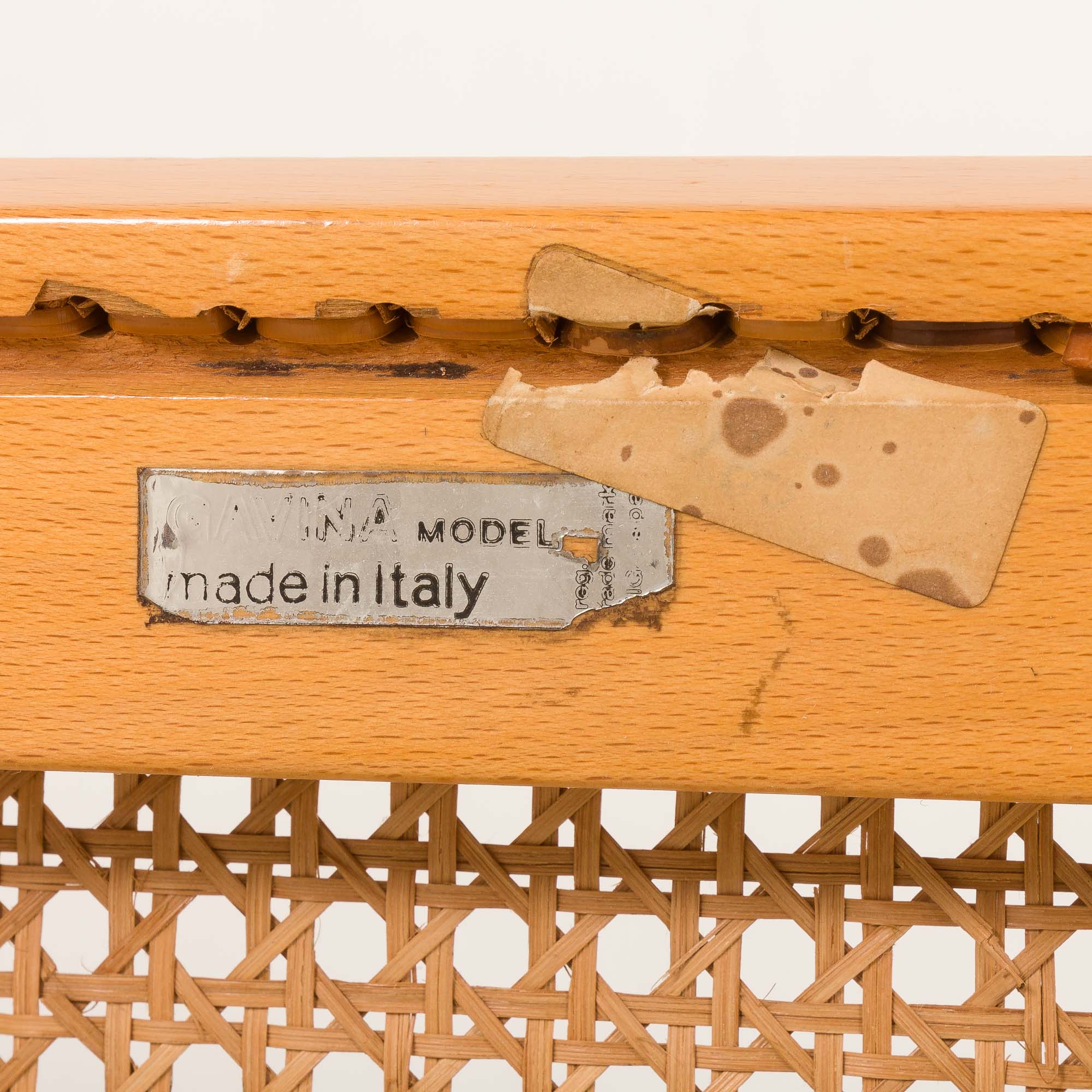 Autentyczność krzeseł potwierdza naklejka Gavina umieszczona pod siedziskiem. Wszystkie części są oryginalne i noszą ślady czasu, przez które krzesło przeszło. Wszelkie ślady upływu czasu widoczne są na załączonych zdjęciach. Miodowo-brązowy kolor trzcinowej plecionki dobrze się zestarzał, pokrywając piękną patyną, która podkreśla ciepły wygląd krzesła. Ten model bardzo rzadko można znaleźć w tak dobrym, oryginalnym i nienaruszonym stanie.