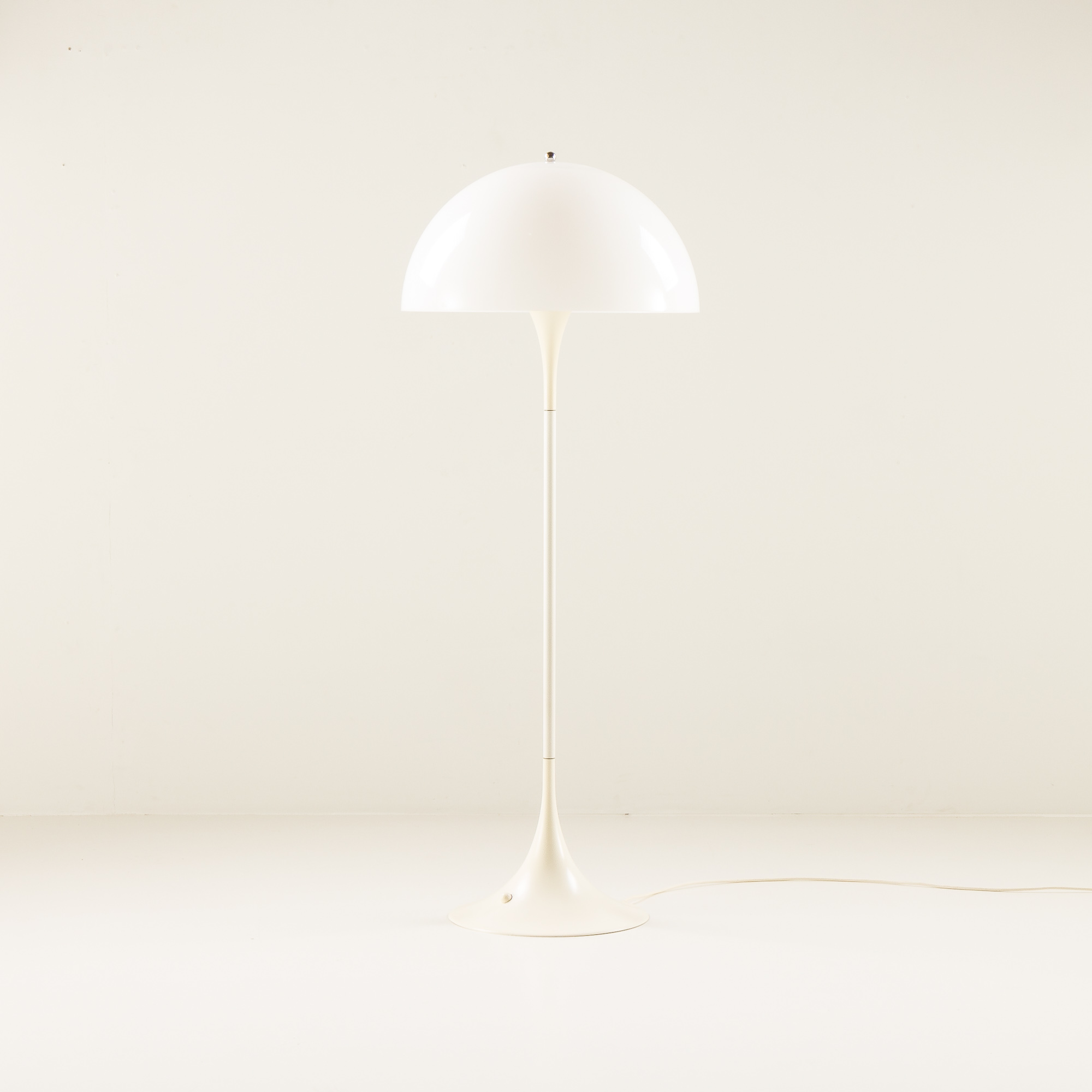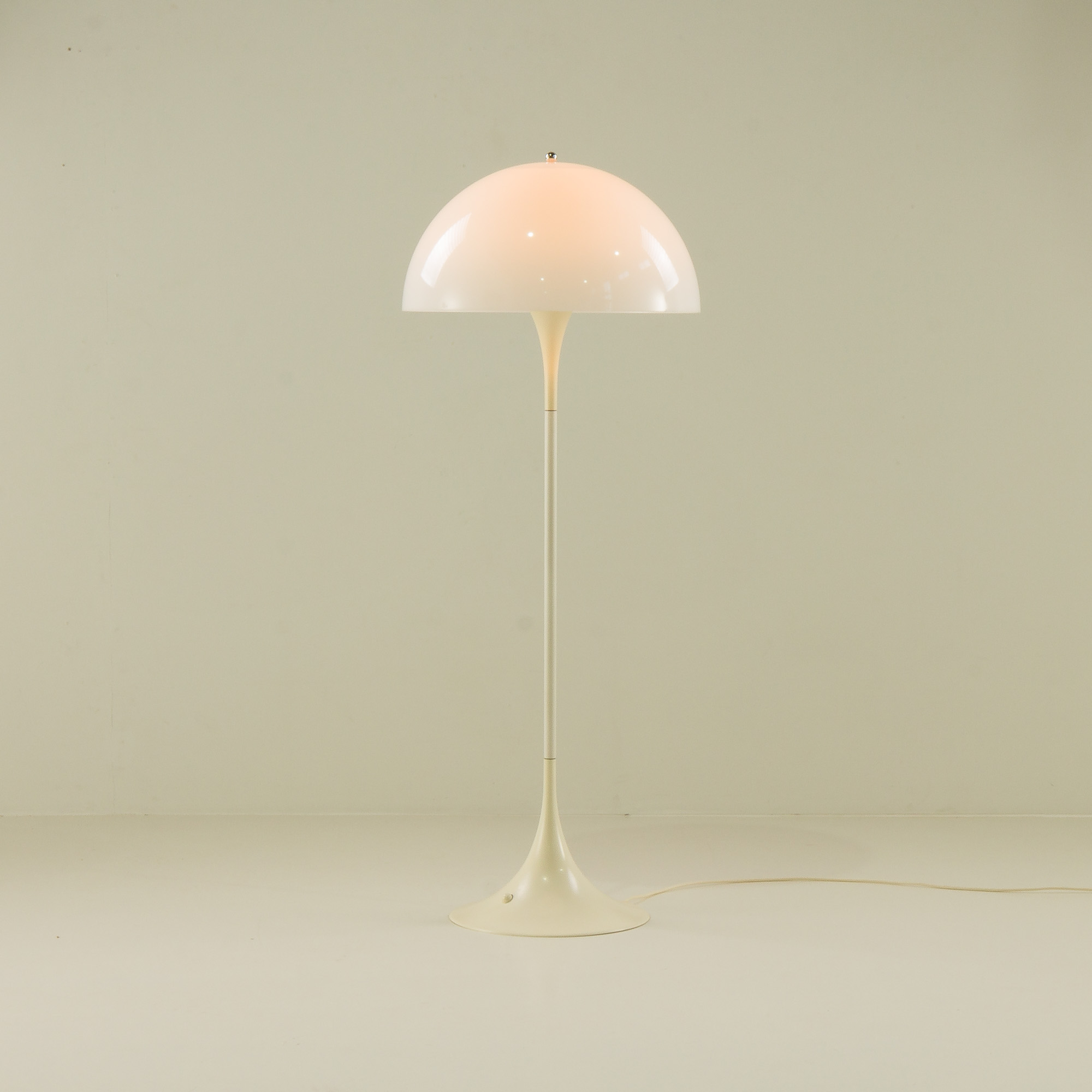 Lampa stojąca Panthella to kultowy projekt Vernera Pantona z 1971 roku dla Louis Poulsen. Zapewnia przyjemne i komfortowe oświetlenie. Źródło światła umieszczone pod mlecznobiałym, półkulistym kloszem akrylowym zapewnia przytulne rozproszenie światła. Klosz rzuca światło w dół, a materiał, z którego wykonana jest lampa, sprawia, że światło w pomieszczeniu rozchodzi się poprzez całą powierzchnię klosza.