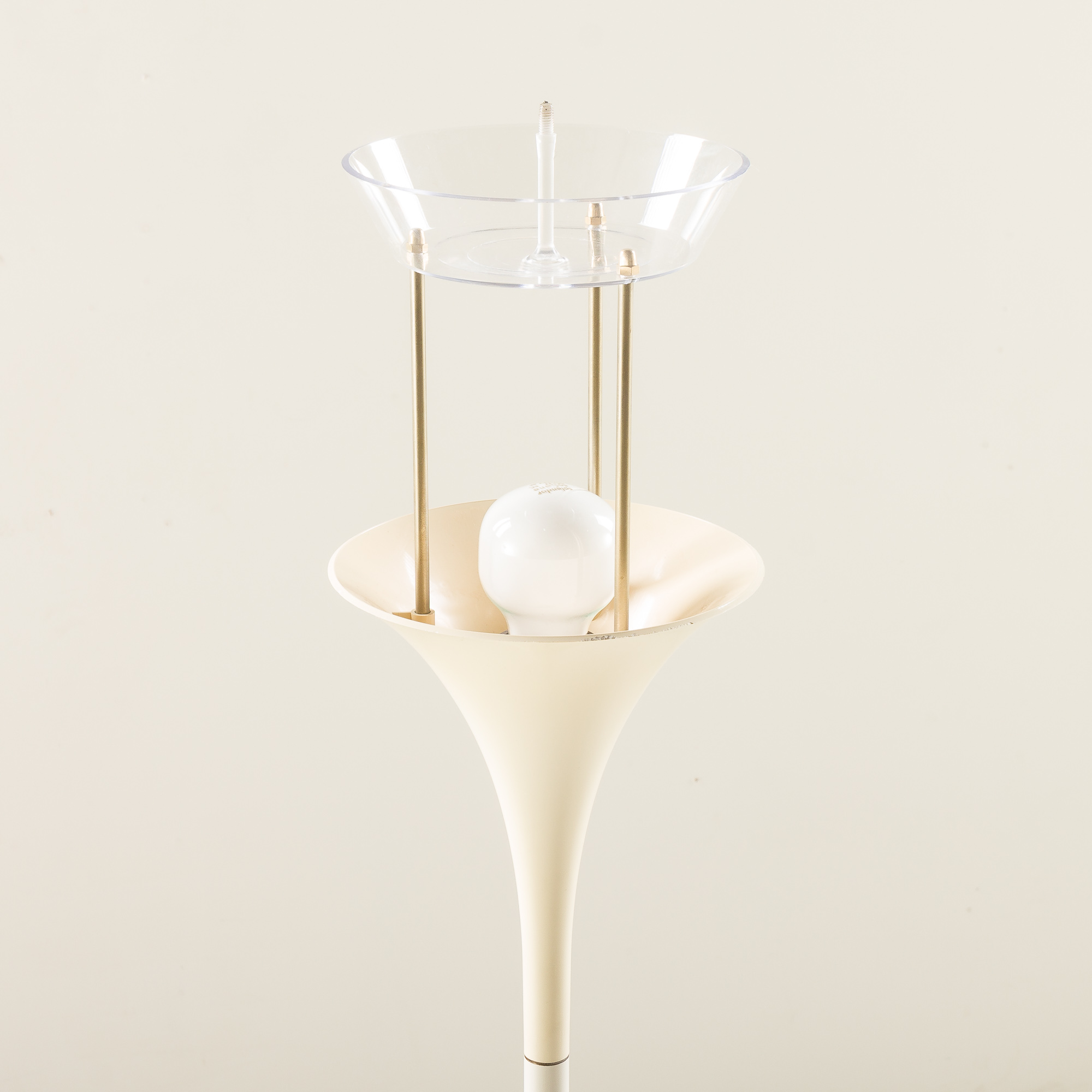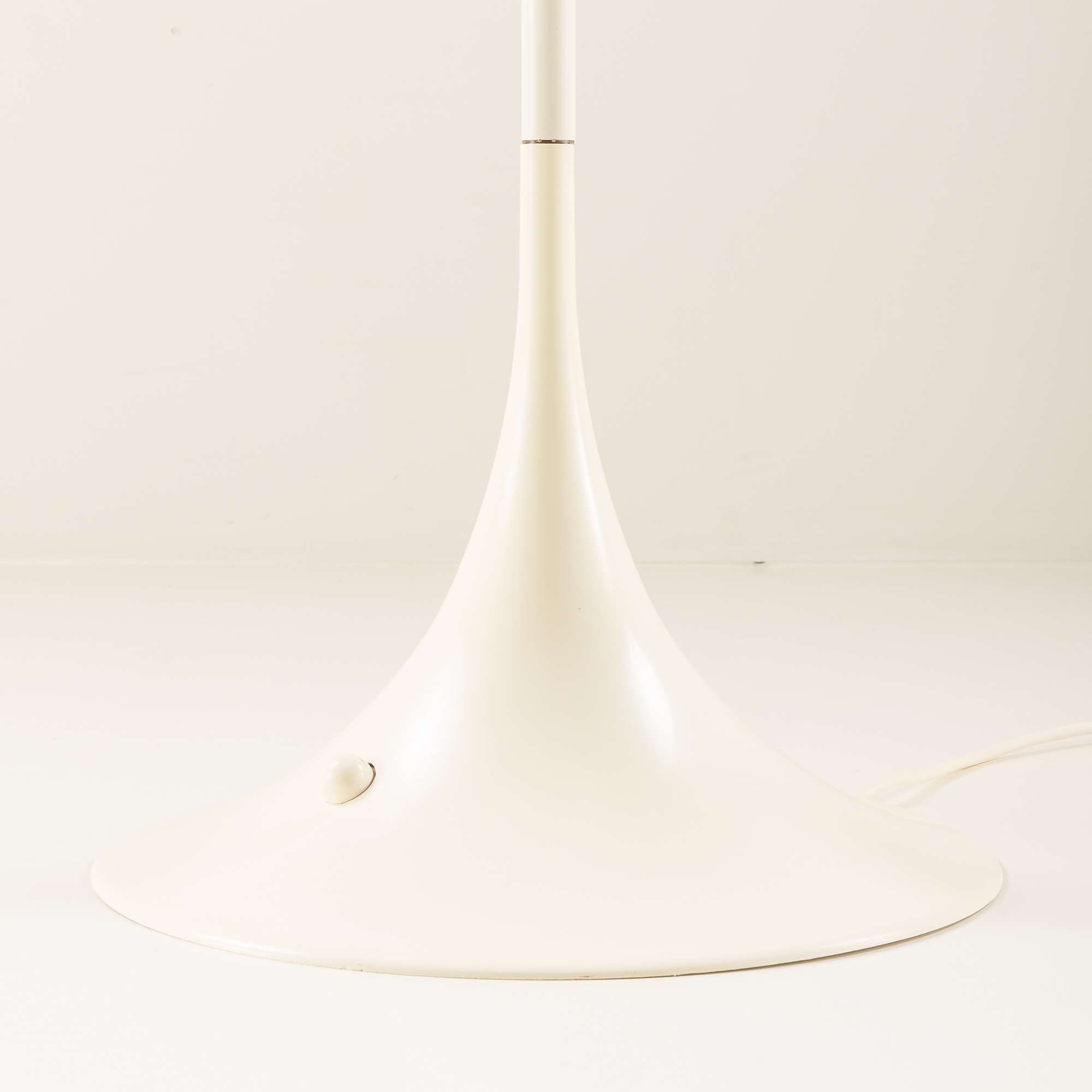 Smukła, trąbkowata podstawa lampy uzupełnia krzywiznę klosza, nadając jej zrównoważony, rzeźbiarski wygląd. Organiczny kształt jest typowy dla projektów Verner Panton.