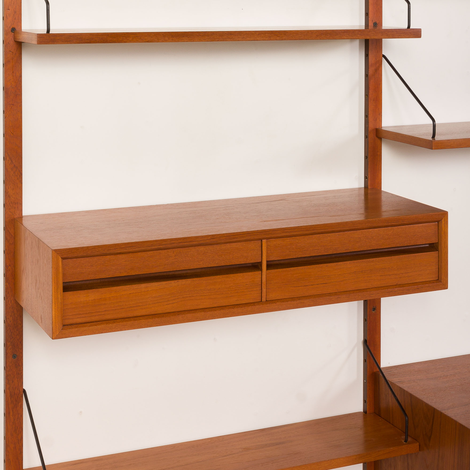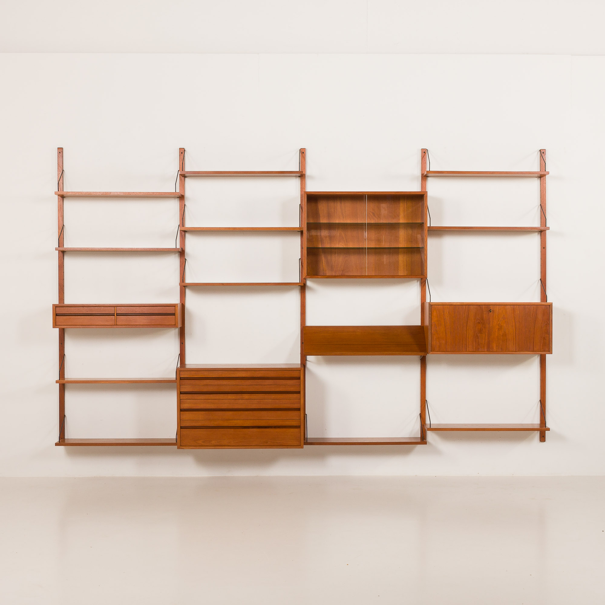 Duński 4-częściowy zestaw ścienny z drewna tekowego zaprojektowany w latach 60. XX wieku przez Poula Cadoviusa dla Cado.