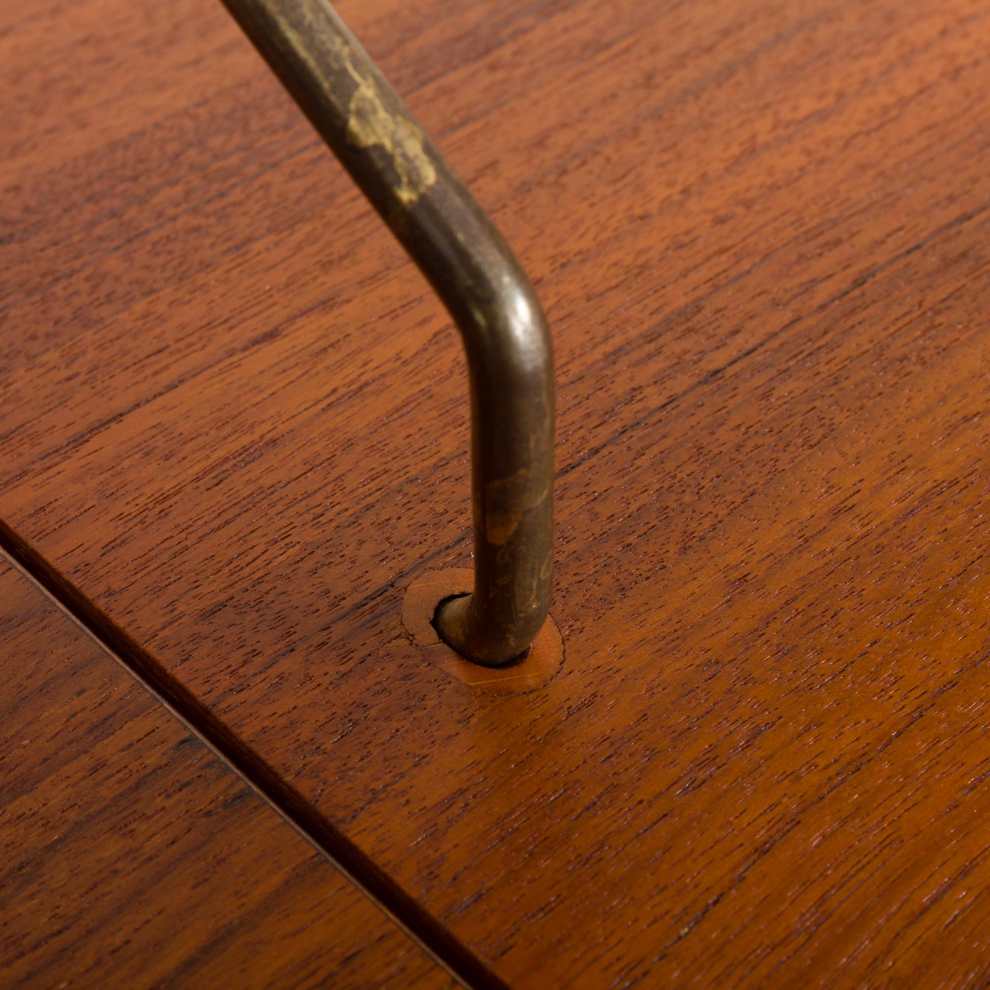 Zaprojektowany, aby być zarówno estetycznym, jak i wysoce praktycznym meblem. Został wykonany z drewna tekowego o ciepłym odcieniu i pięknym usłojeniu. Zastosowanie wysokiej jakości drewna tekowego i forniru tekowego zapewnia trwałość i długowieczność mebla. Dbałość o szczegóły, szczególnie widoczna w ładnie zintegrowanych uchwytach i pięknie plecionym froncie jednej z szafek, pokazuje kunszt duńskich rzemieślników.