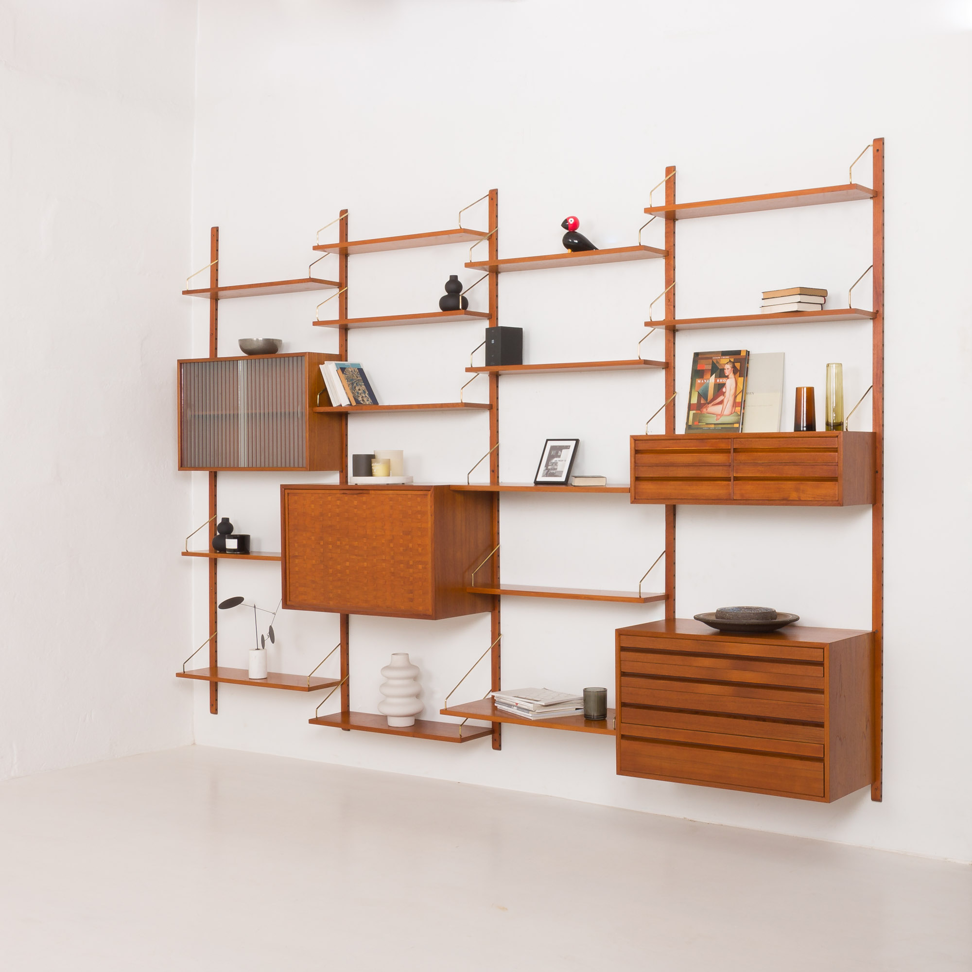 Ten atrakcyjny wizualnie i niezwykle funkcjonalny duński system ścienny został zaprojektowany w latach 60-tych przez Poula Cadoviusa dla firmy Cado.