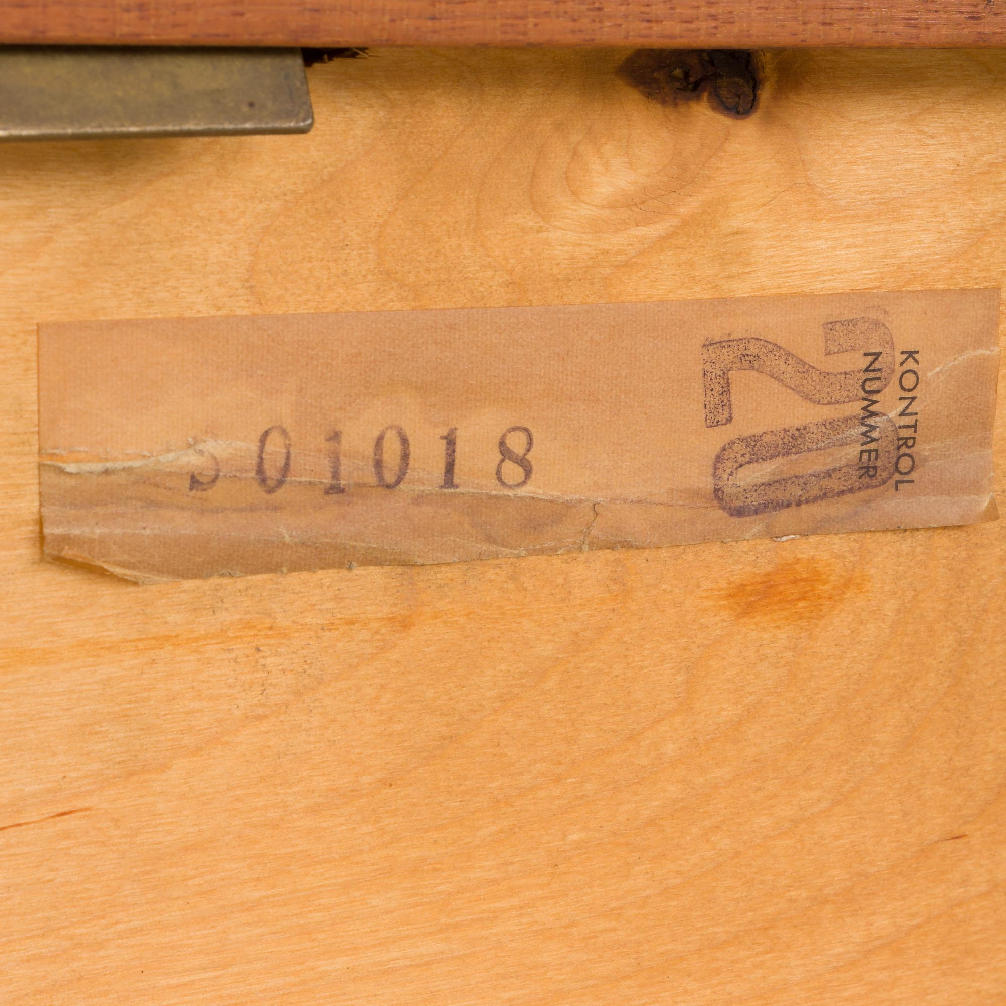 Pomimo upływu czasu, mebel jest w doskonałym oryginalnym stanie. Niewielkie ślady użytkowania są adekwatne do wieku. Grawer „made in Denmark” z tyłu półek, wraz z numerami seryjnymi na szafce i komodzie, potwierdzają autentyczność ich pochodzenia. Drewno zostało oczyszczone i zabezpieczone warstwami duńskiego oleju, które je wzmacnia i podkreśla naturalne piękno słojów.