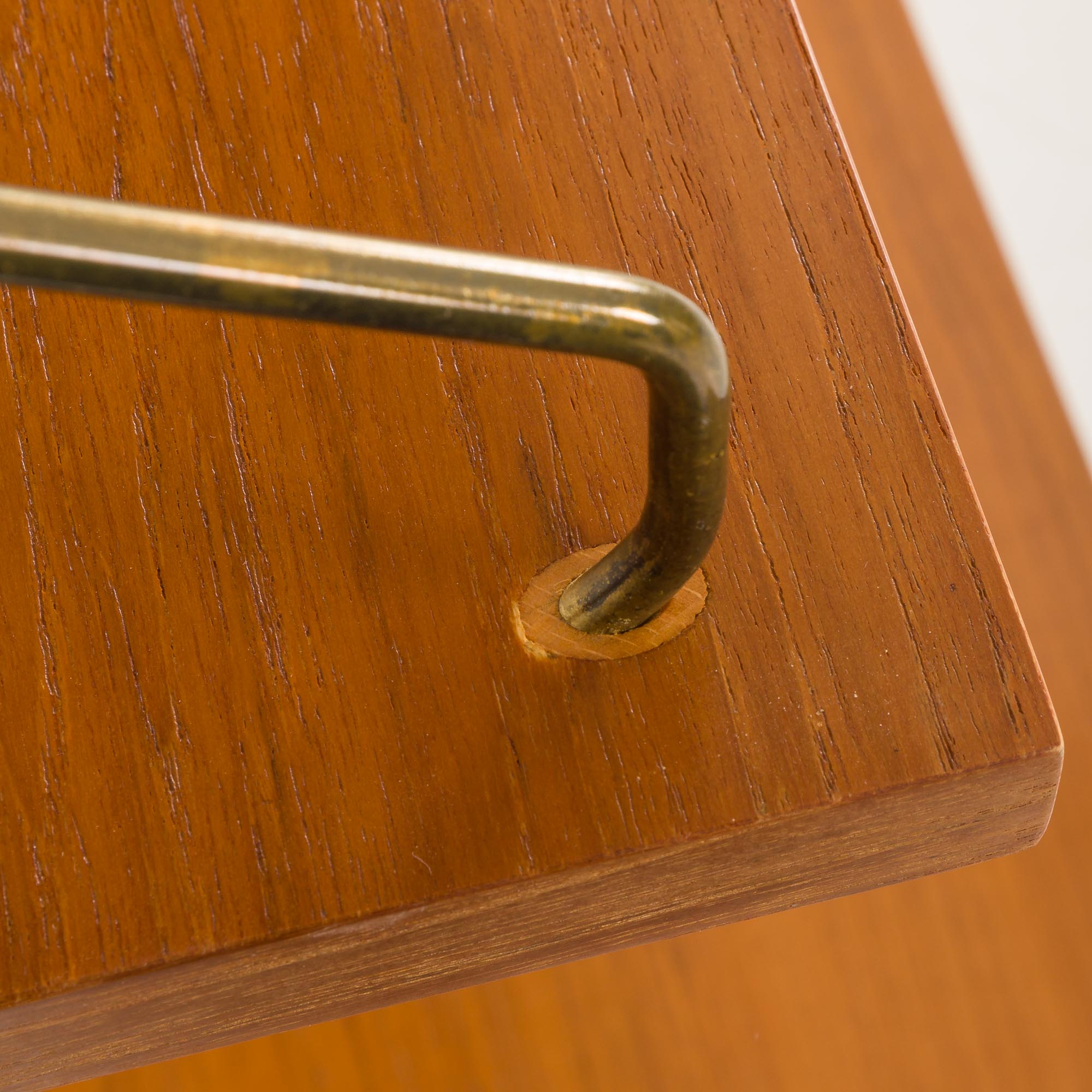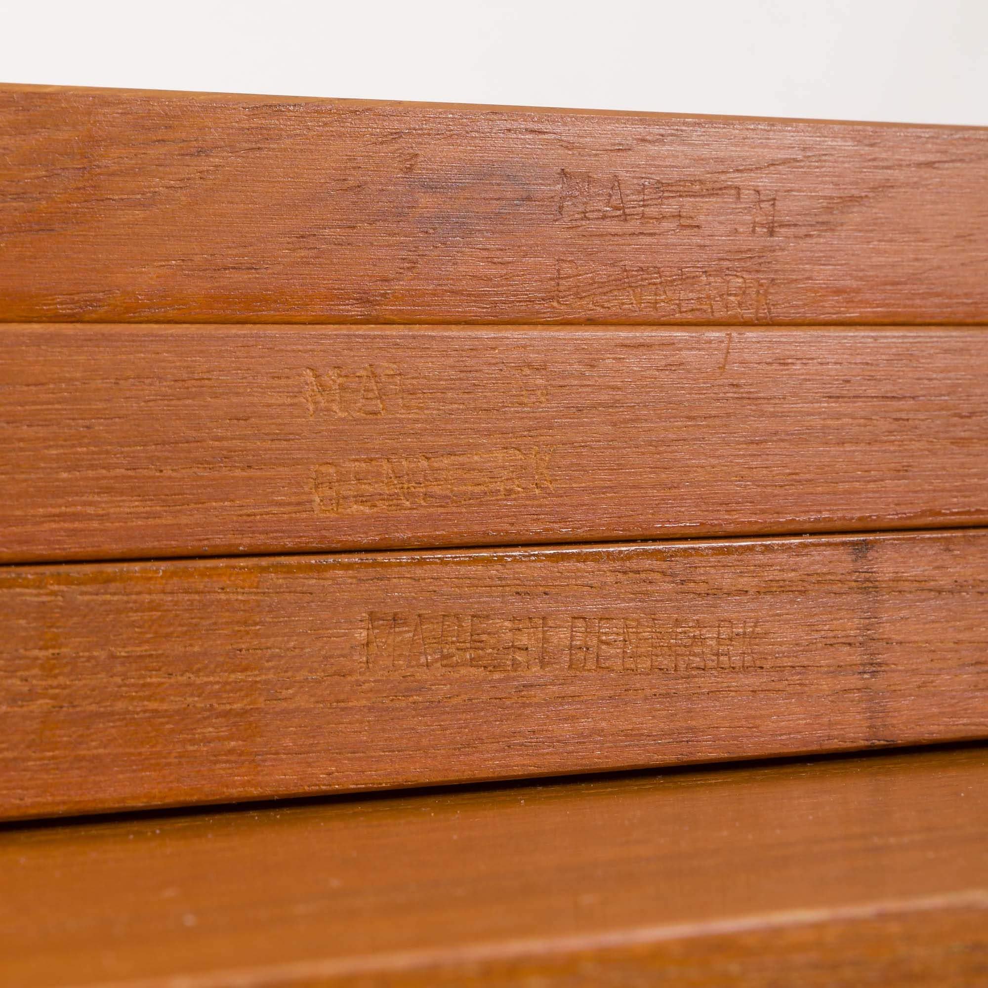 Pomimo upływu prawie sześciu dekad, zestaw pozostaje w idealnym oryginalnym stanie. Drewno zostało odświeżone profesjonalnymi środkami, aby podkreślić jego naturalne piękno. Grawer „Made in Denmark” z tyłu półek, potwierdza autentyczność pochodzenia mebla.