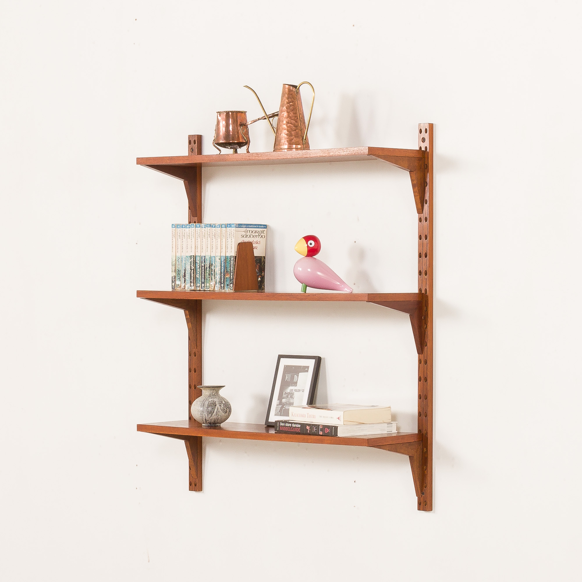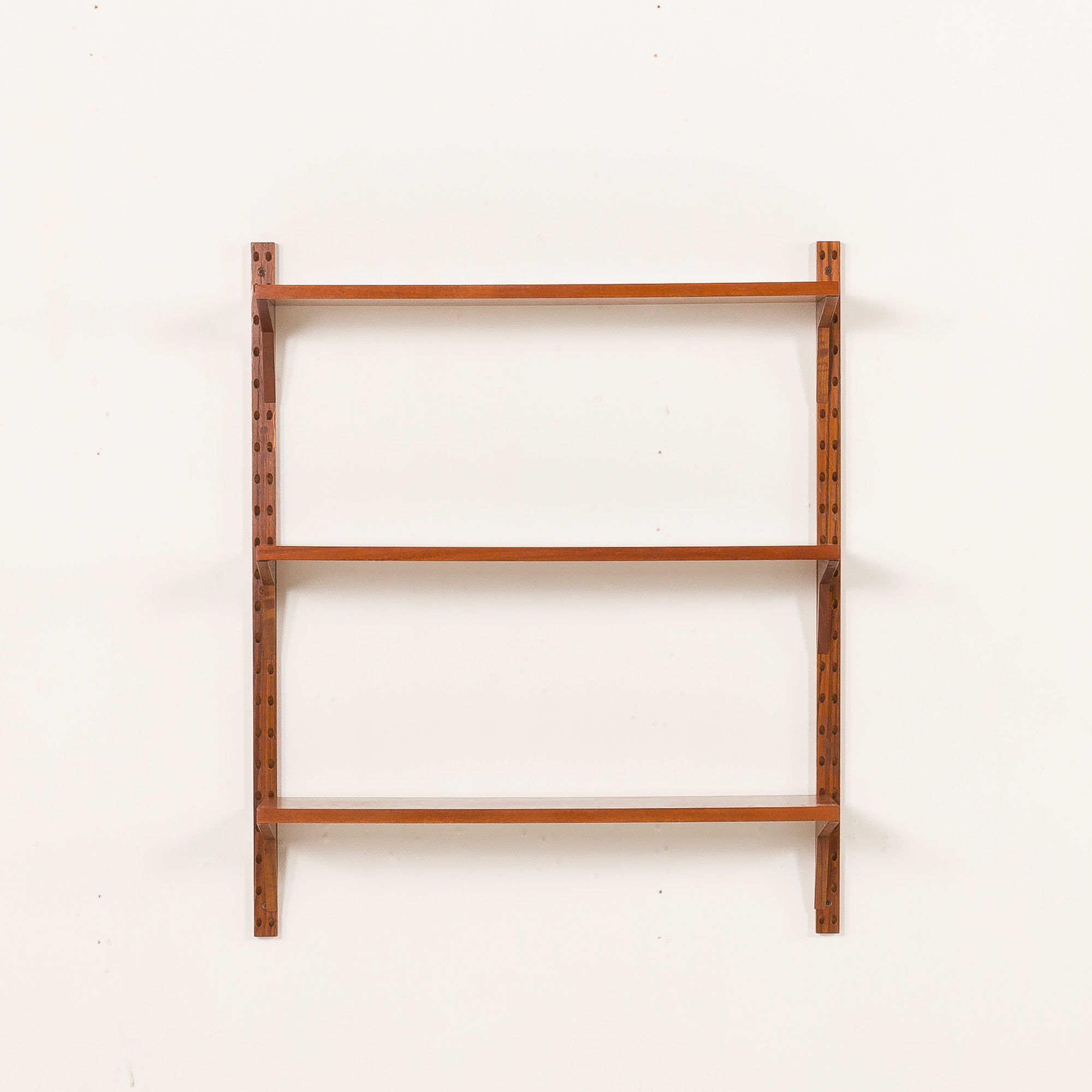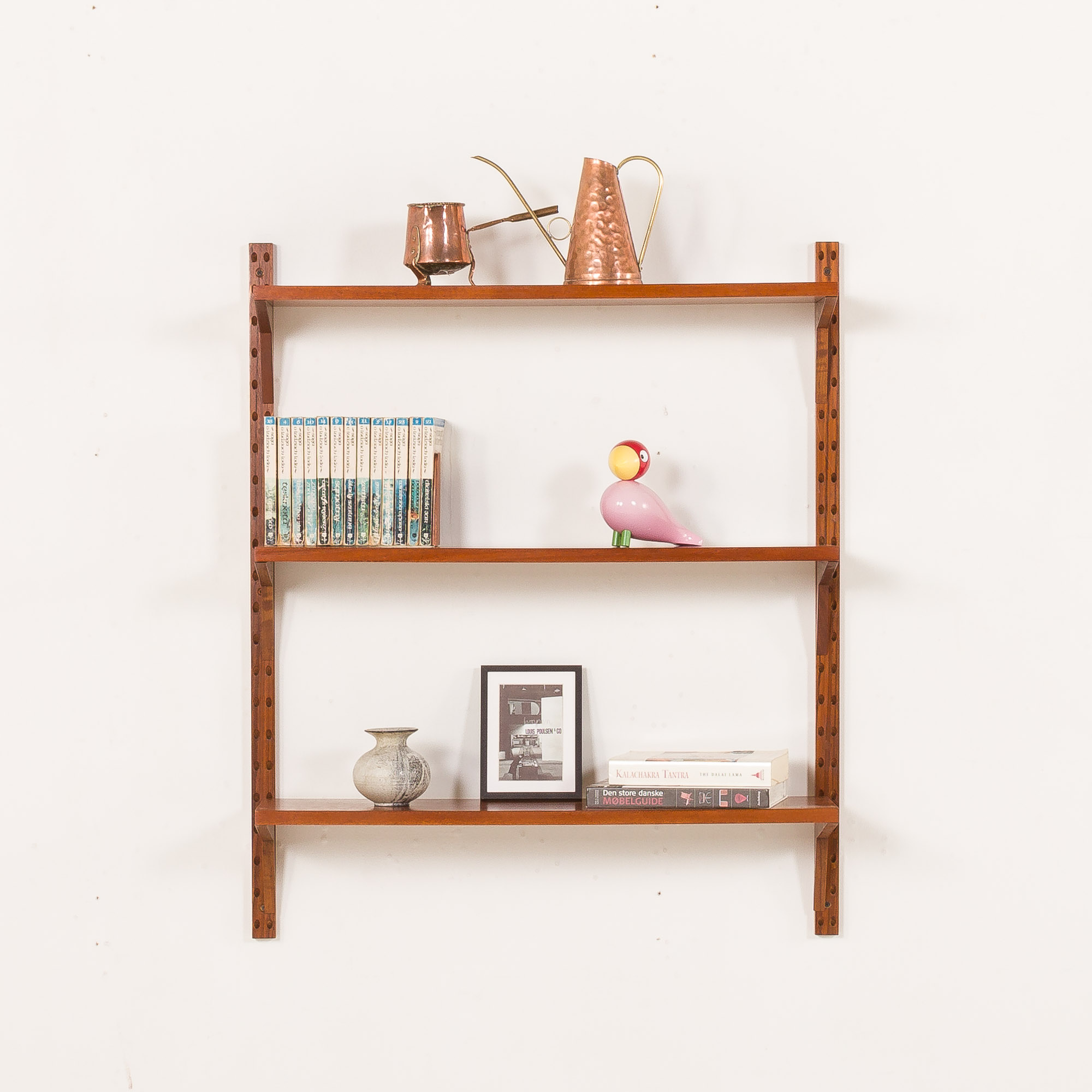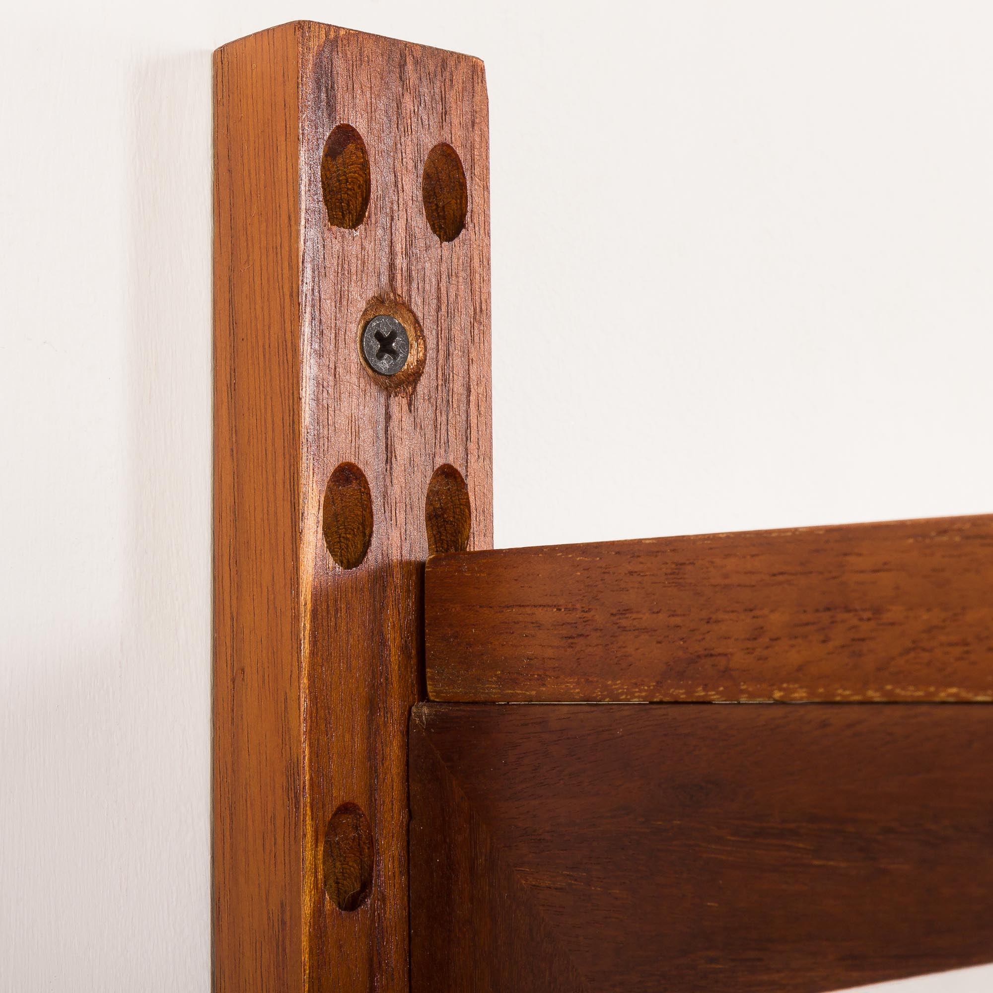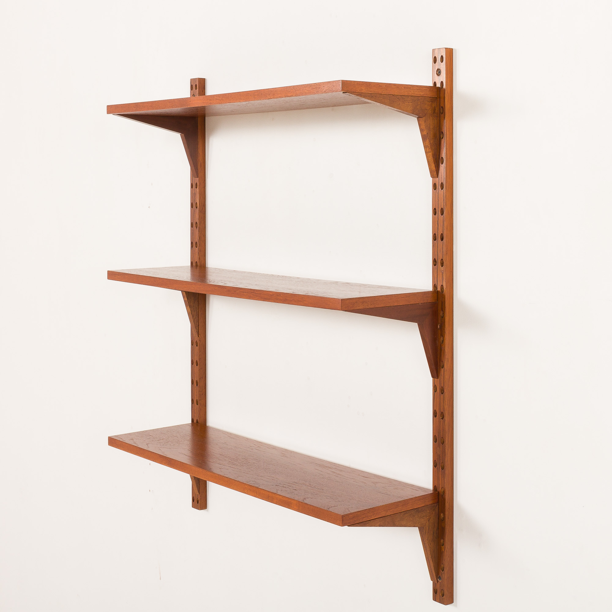 Duński regał ścienny vintage z drewna tekowego w stylu Poula Cadoviusa, lata 60.