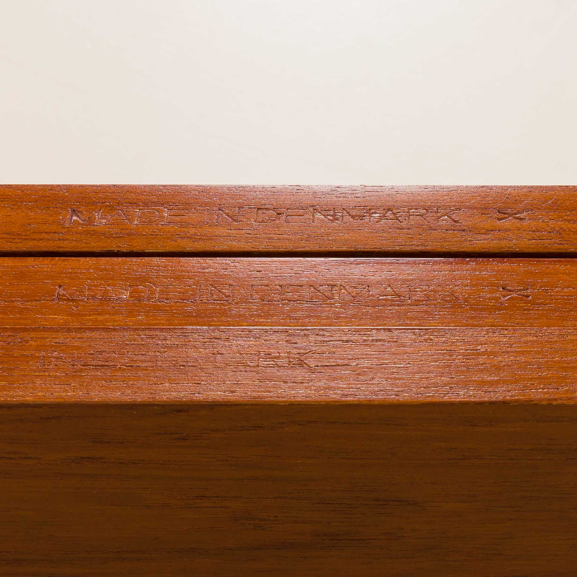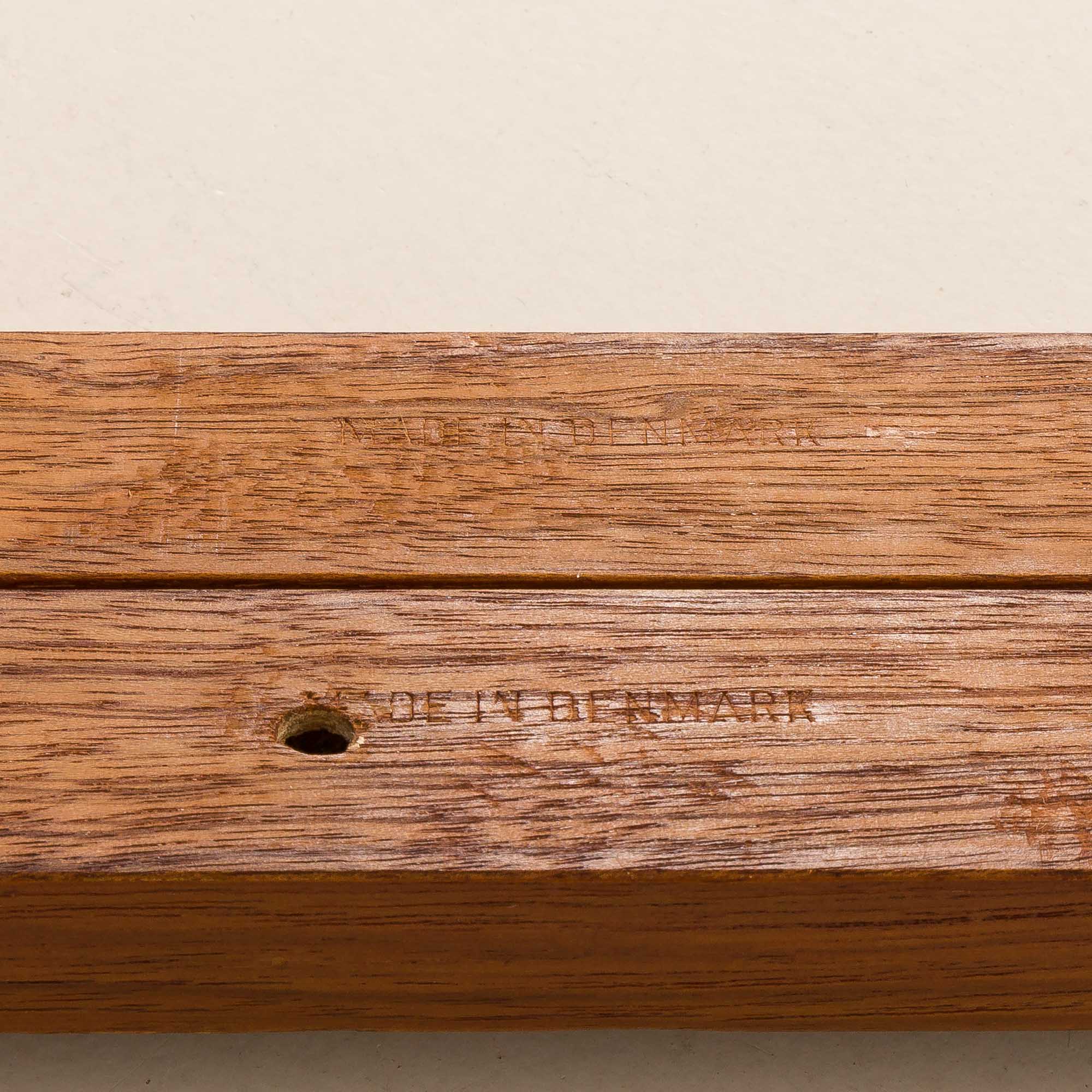 Regał został poddany gruntownej renowacji. Drewno zostało oczyszczone profesjonalnymi środkami i zabezpieczone duńskim olejem, aby wydobyć jego naturalne piękno. Grawerunek „Made in Denmark” umieszczony z tyłu półek i listew potwierdza autentyczność pochodzenia mebla.