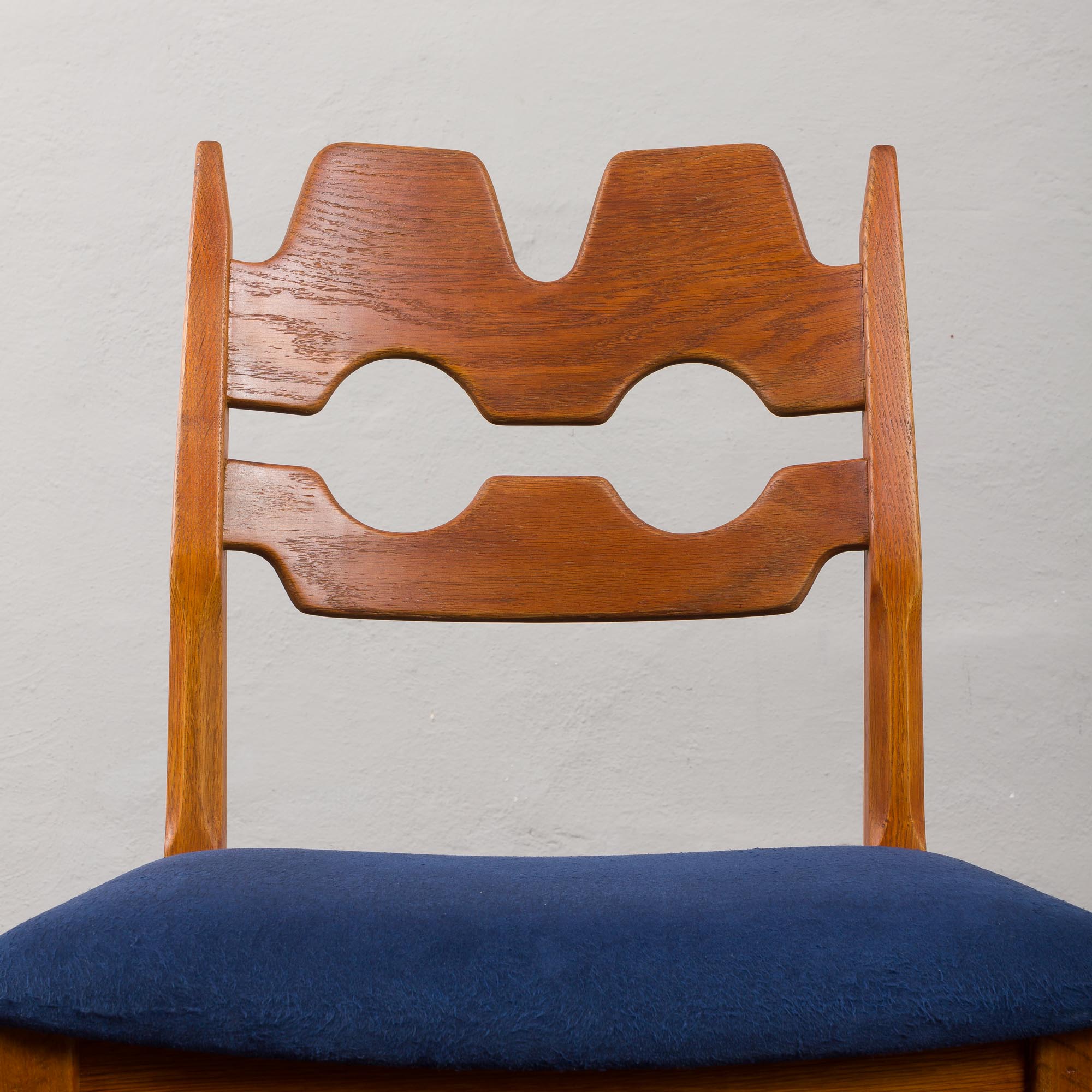 Zestaw sześciu kultowych krzeseł Razor Blade Chair zaprojektowanych przez Henninga Kjaernulfa w latach 60. i wyprodukowanych przez duńską firmę Nyrup Mobelfabrikk, co potwierdza oryginalna etykieta pod siedziskami. Lekko zakrzywione oparcia mają kształt żyletki i stanowią wyjątkowa konstrukcję. Styl i kształt rzeźbionych nóg i ramy przypominają niemal barokowy design połączony ze skandynawskim modernizmem, tworząc unikalną i imponującą kombinację.