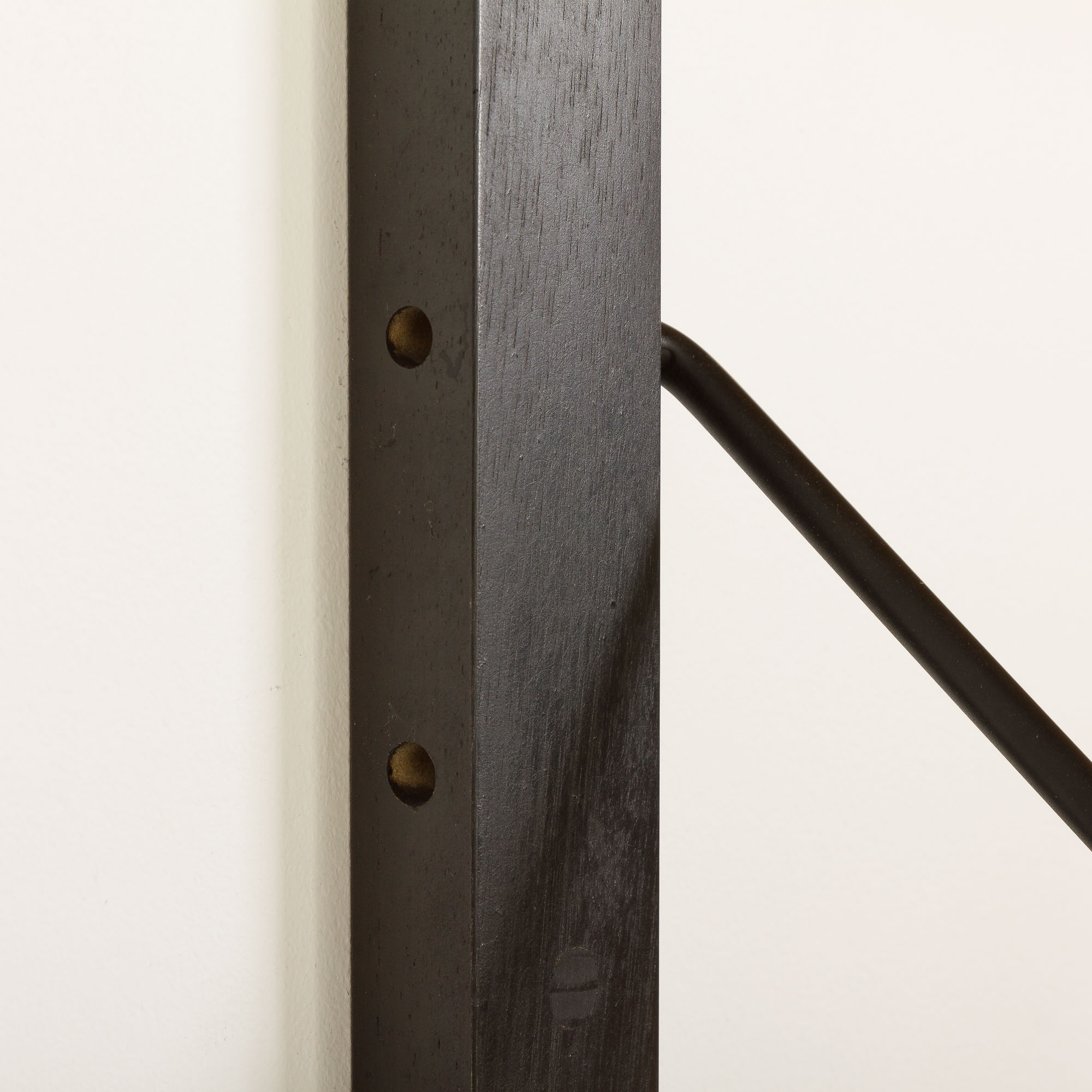 Zestaw został w pełni odrestaurowany. Szyny z litego drewna oraz metalowe zawieszki zostały pomalowane na czarno. Ozdobne kołki zostały użyte do zamaskowania starych otworów, nadając meblowi nowy charakter. Ten czasochłonny proces pozwala nam odnowić nawet najbardziej zniszczone półki. Drewno zostało odświeżone profesjonalnymi środkami, aby podkreślić jego naturalne piękno. Krótkie szyny ułatwiają transport i obniżają jego koszty. Wyjątkowo funkcjonalny i pięknie wykonany zestaw, który doskonale wpasuje się w każde wnętrze.