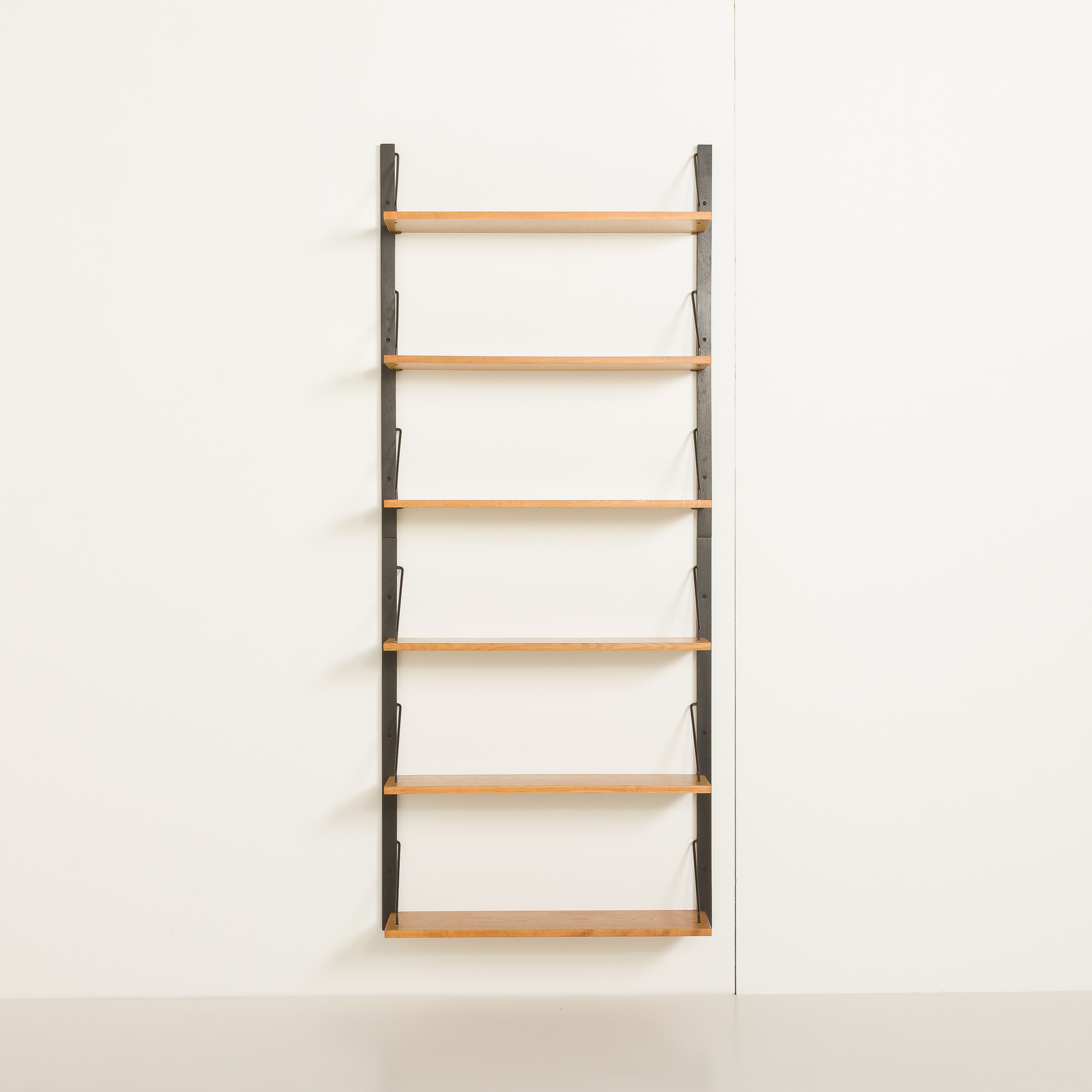 Funkcjonalny system ścienny inspirowany kultowymi modułowymi projektami Prebena Sorensena i Poula Cadoviusa z lat 60. Jego kompaktowa konstrukcja sprawia, że idealnie nadaje się nawet do małych mieszkań. Minimalistyczny design zestawu uzupełnia wysoka jakość wykonania oraz wspaniałe połączenie malowanych na czarno szyn z litego drewna i czarnych zawieszek z półkami pokrytymi fornirem dębowym. Dąb jest niezwykle twardy i odporny na uszkodzenia mechaniczne, a wyraziste usłojenie dodaje mu charakteru. Z biegiem lat dąb nabiera jeszcze większego uroku, ciemniejąc i zyskując głębię koloru. Zestaw będzie idealnym rozwiązaniem zarówno dla moli książkowych z pokaźną kolekcją, jak i osób potrzebujących więcej miejsca na zdjęcia, dekoracje czy rośliny.