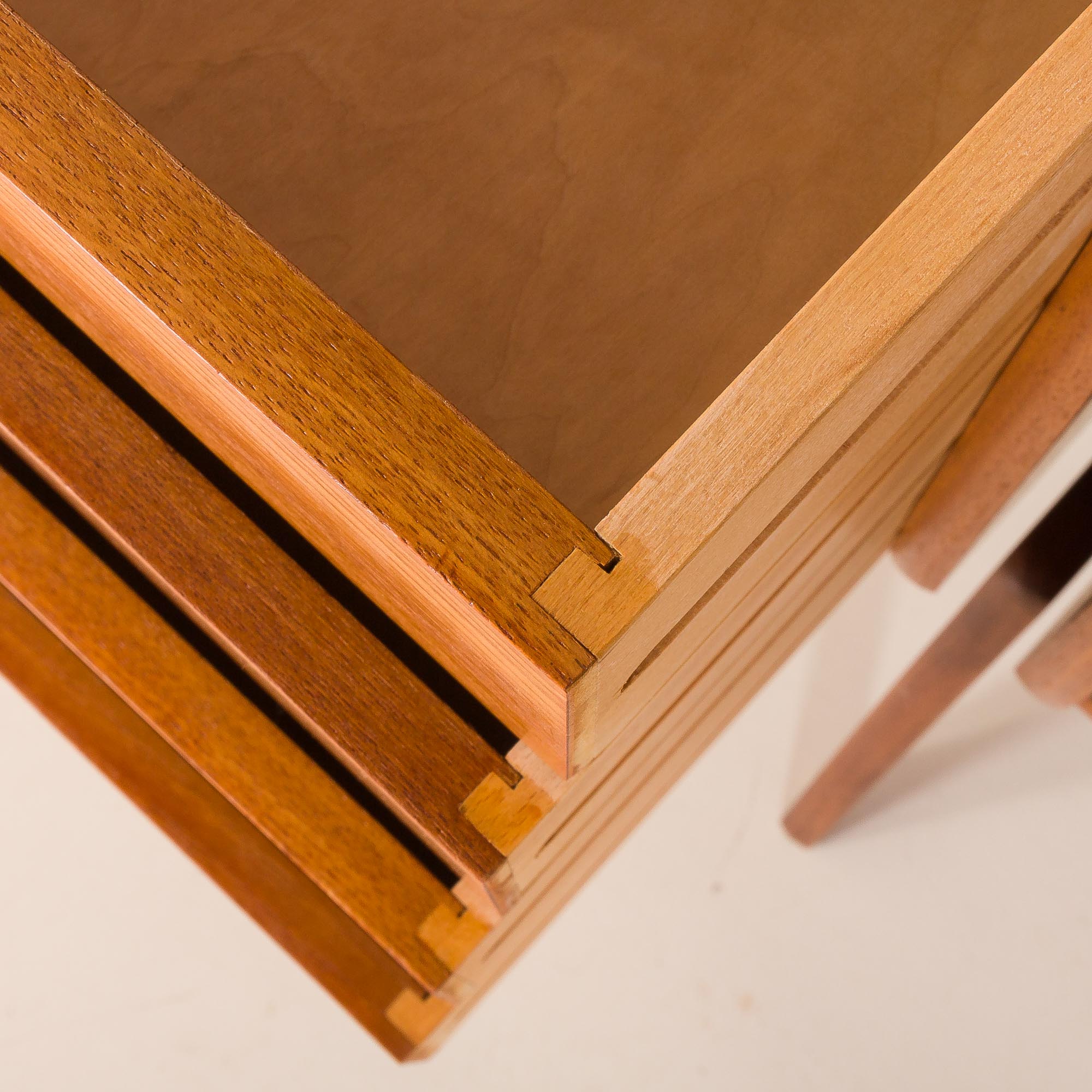 Mebel został sprawdzony i odnowiony przez nasz zespół. Wszystkie drzwi działają prawidłowo i płynnie. Drewno zostało oczyszczone profesjonalnymi środkami i wykończone warstwami duńskiego oleju, aby podkreślić piękno usłojenia. Ogólnie rzecz biorąc, mebel jest w doskonałym stanie vintage, z minimalnymi śladami użytkowania.