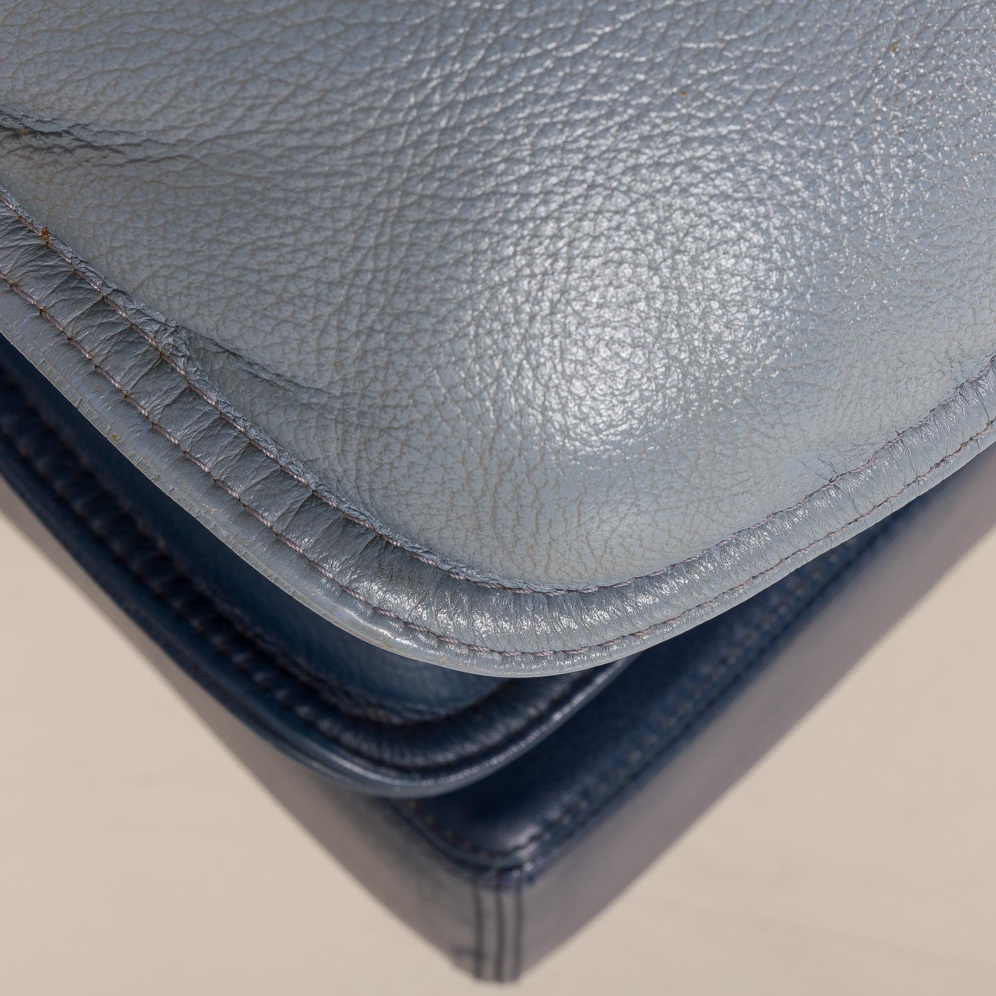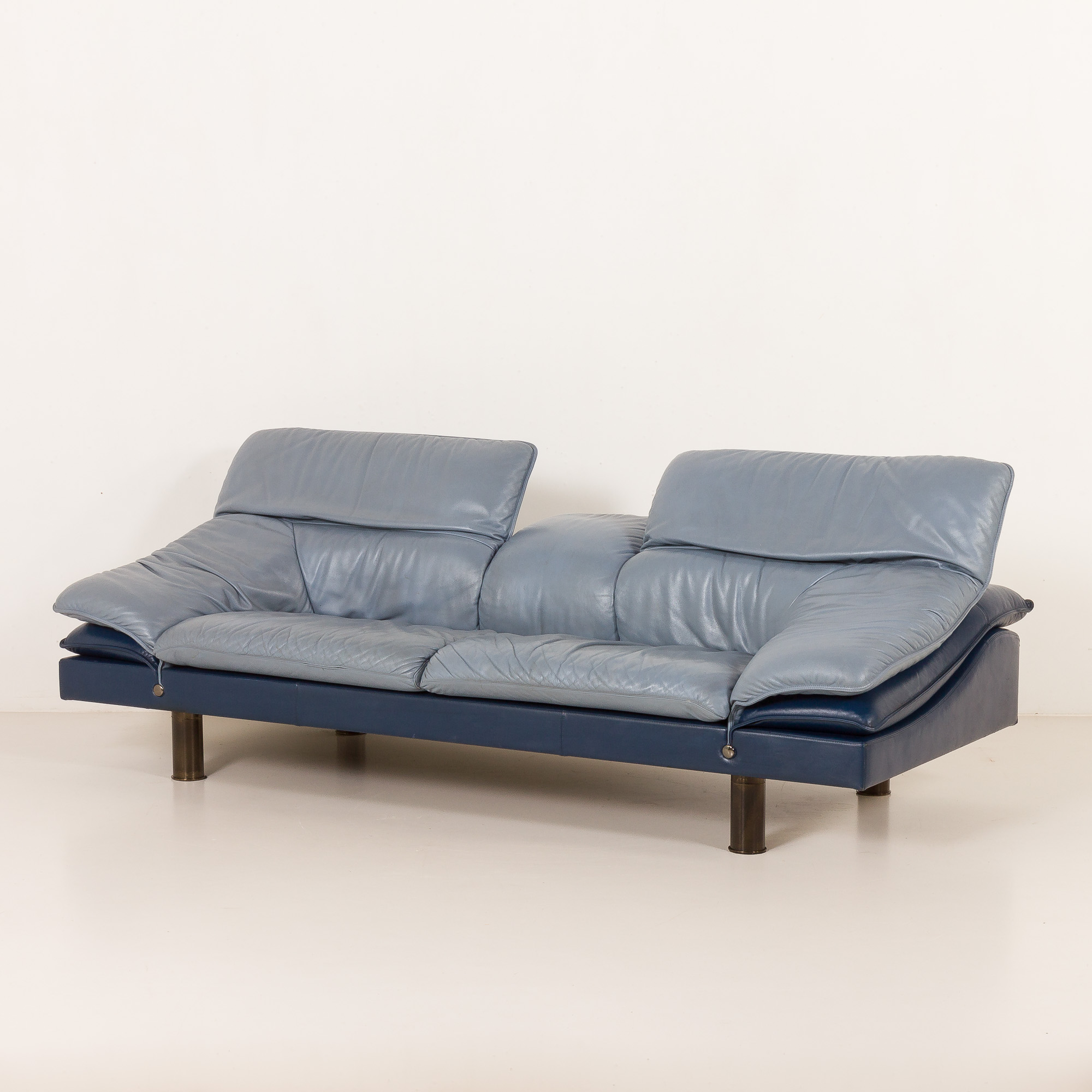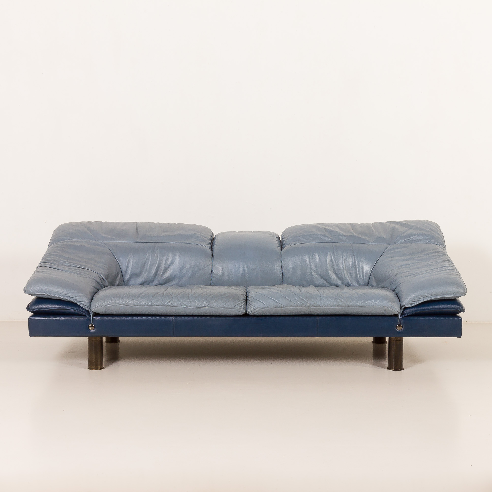 Uderzająco piękna włoska skórzana sofa vintage Space Age, wyprodukowana przez Poltrona Frau, najprawdopodobniej pod koniec lat 80. lub na początku lat 90., prezentuje śmiały, a zarazem wyrafinowany charakter włoskiego wzornictwa z tamtej epoki. Sofa charakteryzuje się charakterystyczną niebieską skórzaną tapicerką, łączącą pokaźne rozmiary z artystyczną, smukłą formą. Od końca lat 60. Poltrona Frau słynie z mebli najwyższej jakości i współpracowała z wieloma projektantami, takimi jak Pierluigi Cerri i Tito Agnoli. Uważamy, że ta konkretna sofa została zaprojektowana przez tego ostatniego. Pierluigi Cerri and Tito Agnoli. We believe this particular one is designed by the last one.