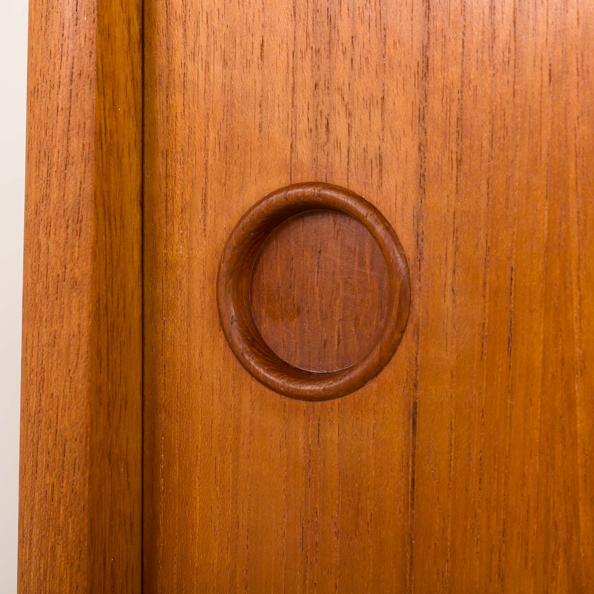 Mebel został sprawdzony i odnowiony przez nasz zespół. Wszystkie drzwi działają prawidłowo i płynnie. Drewno zostało oczyszczone profesjonalnymi środkami i wykończone warstwami duńskiego oleju, aby podkreślić piękno usłojenia. Ogólnie rzecz biorąc, mebel jest w doskonałym stanie vintage, z minimalnymi śladami użytkowania.