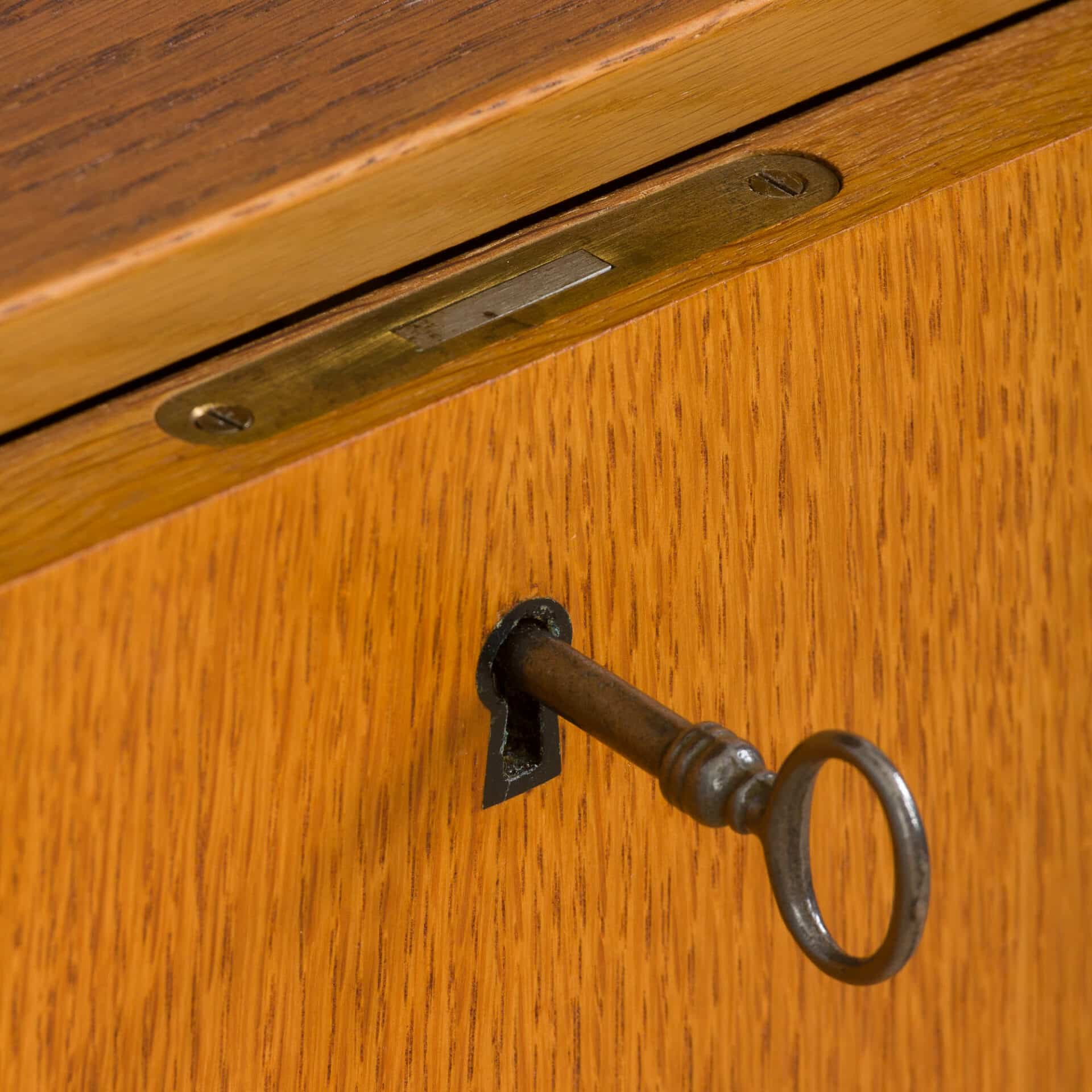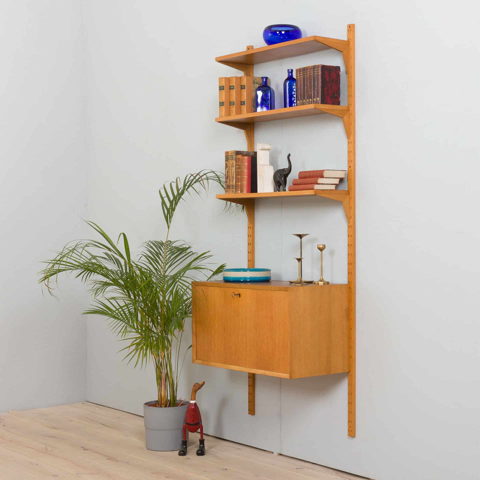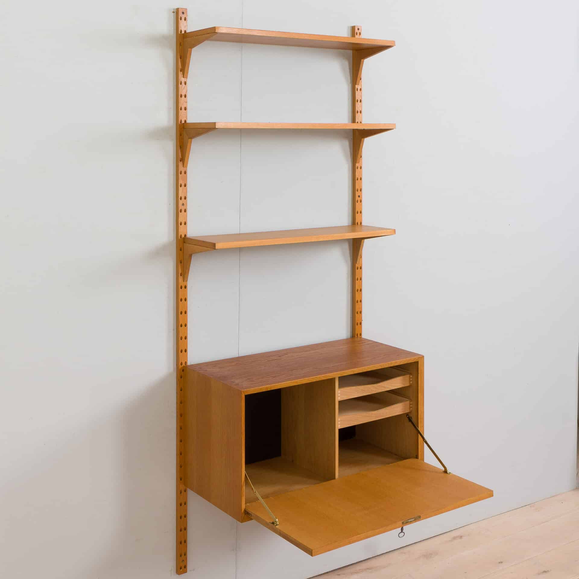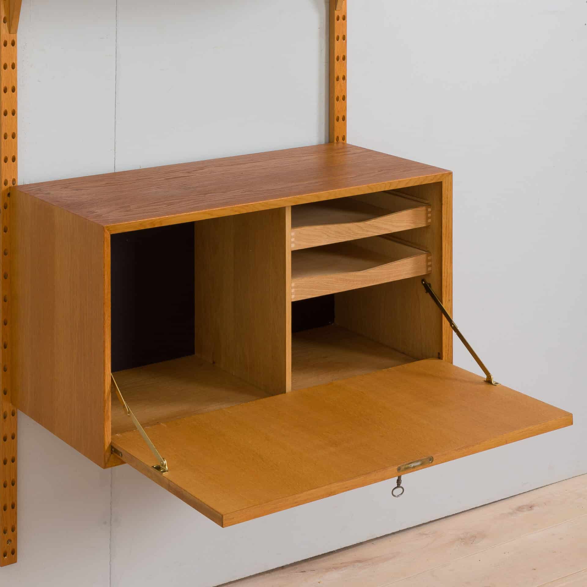 Danish oak wall unit with a secretary designed by Poul Cadovius in the 60s. It can perfectly create an unobtrusive work space in the living room.