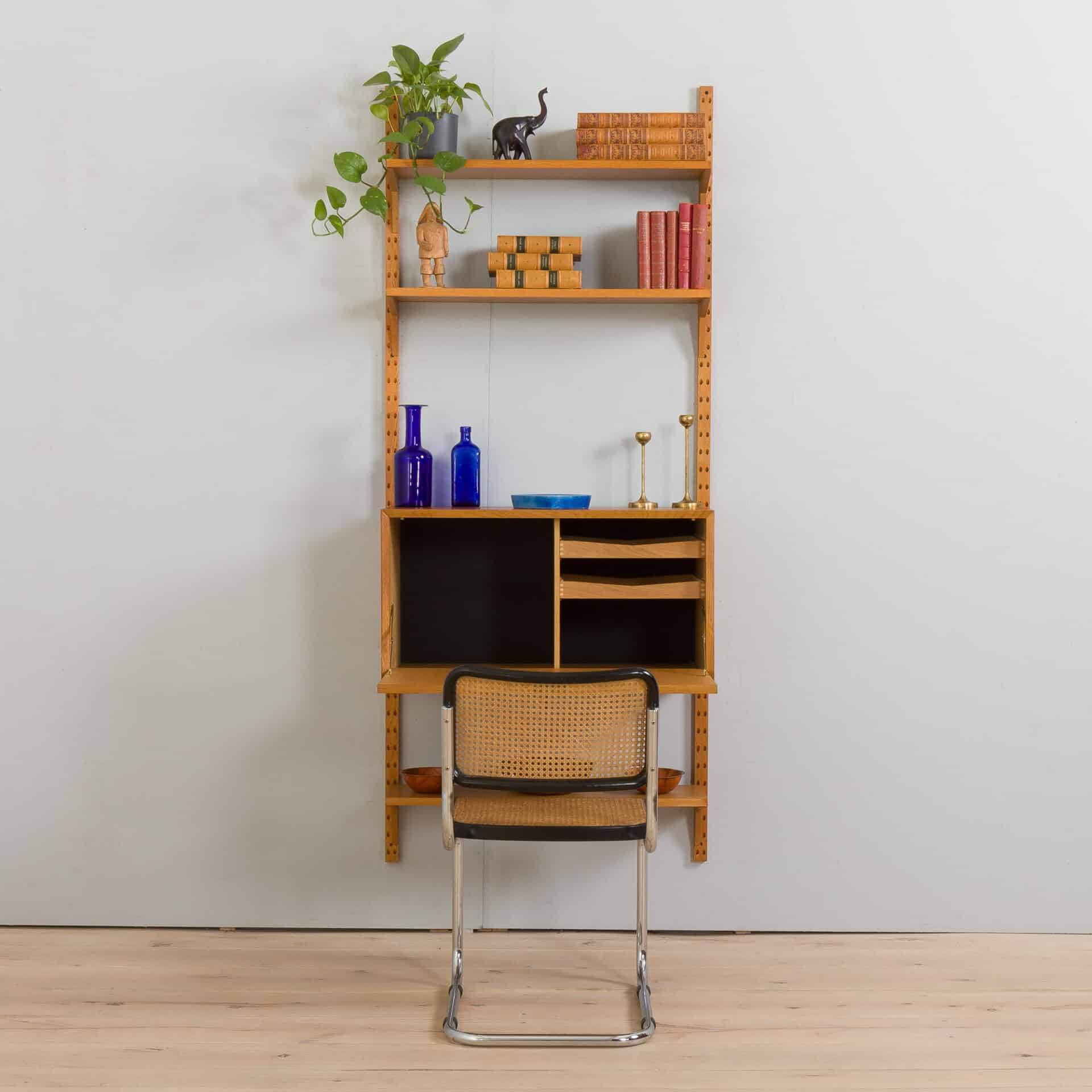 Poul Cadovious home office wall unit in oak with secretarie and 3 shelves, Denmark 1960s.
