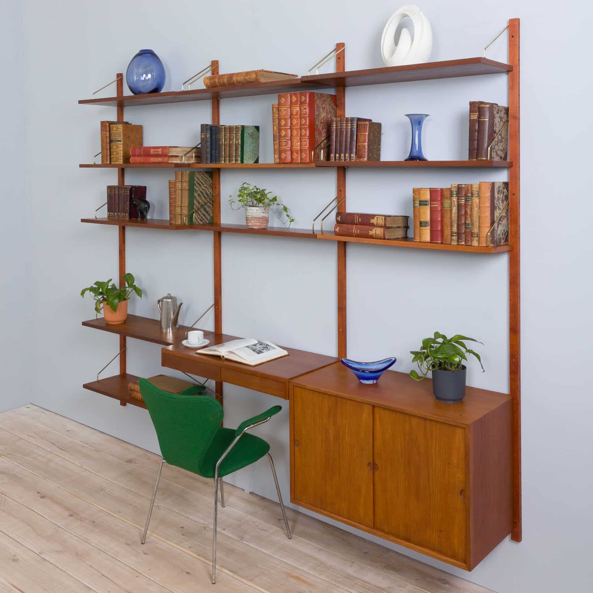 Poul Cadovius home office 3 bay Royal Cado wall unit in teak, Denmark 1960s