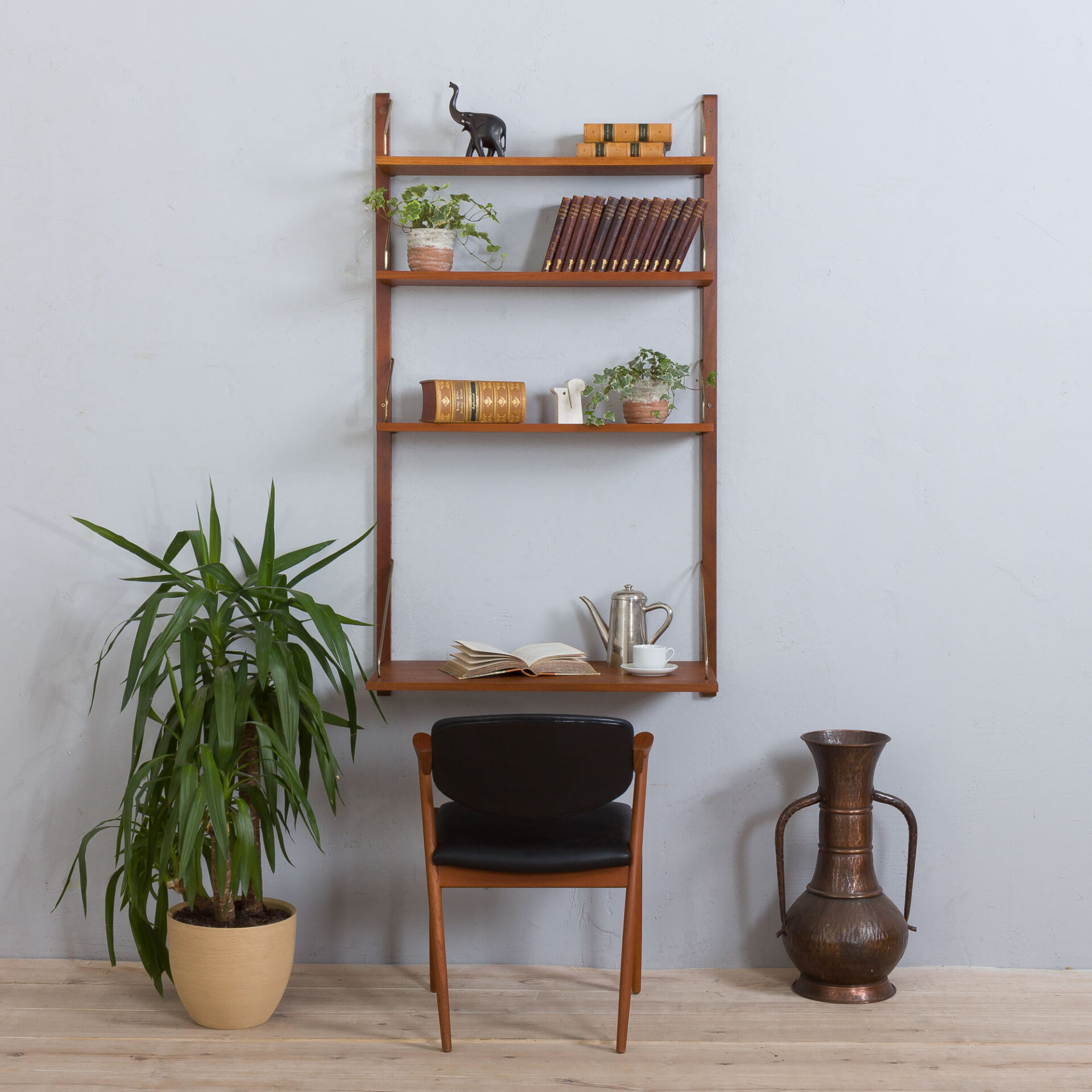 Poul Cadovius home office teak wall unit with a desk shelf, Denmark, 1960s