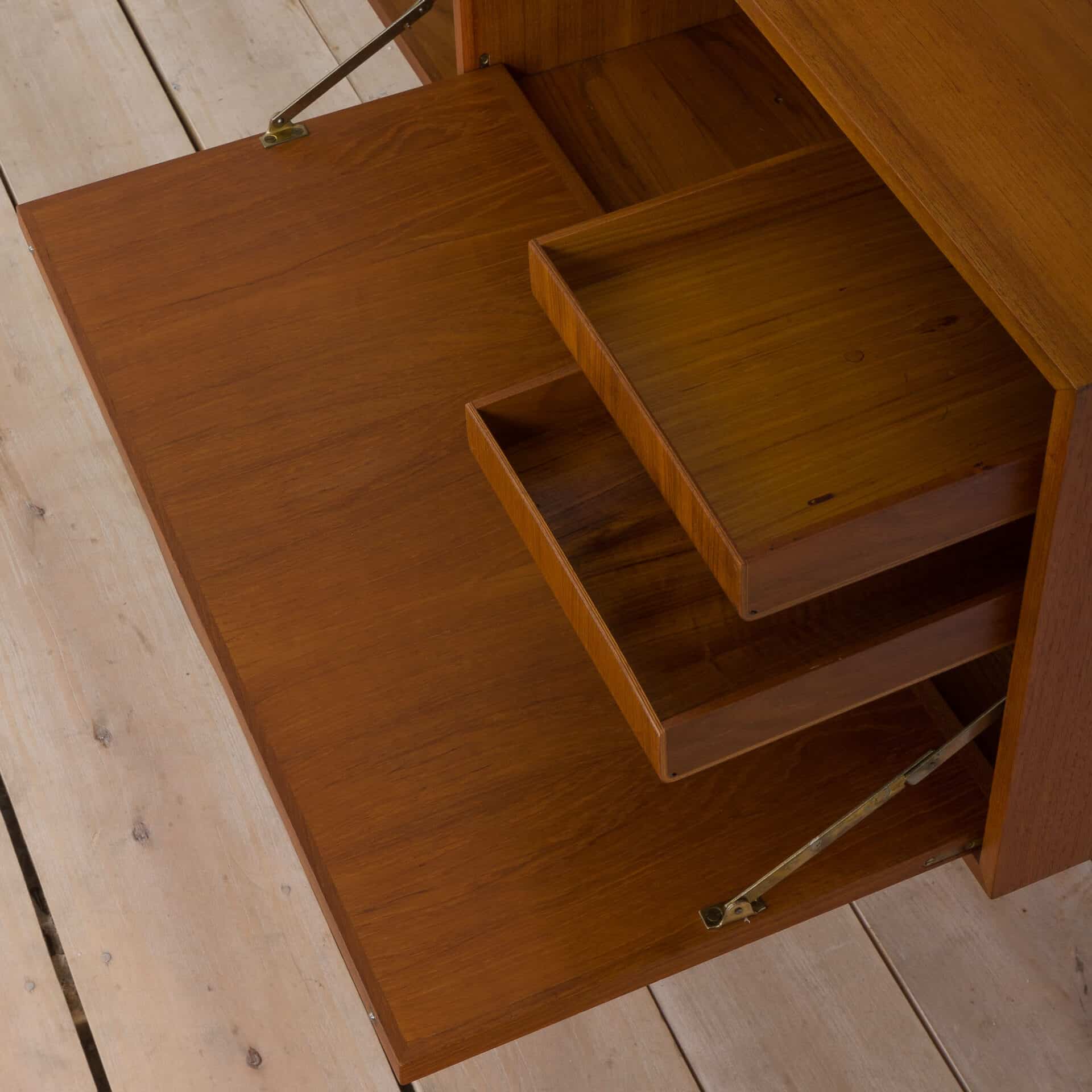 Danish teak wall unit with a secretary designed by Poul Cadovius in the 60s. It can perfectly create an unobtrusive work space in the living room.
