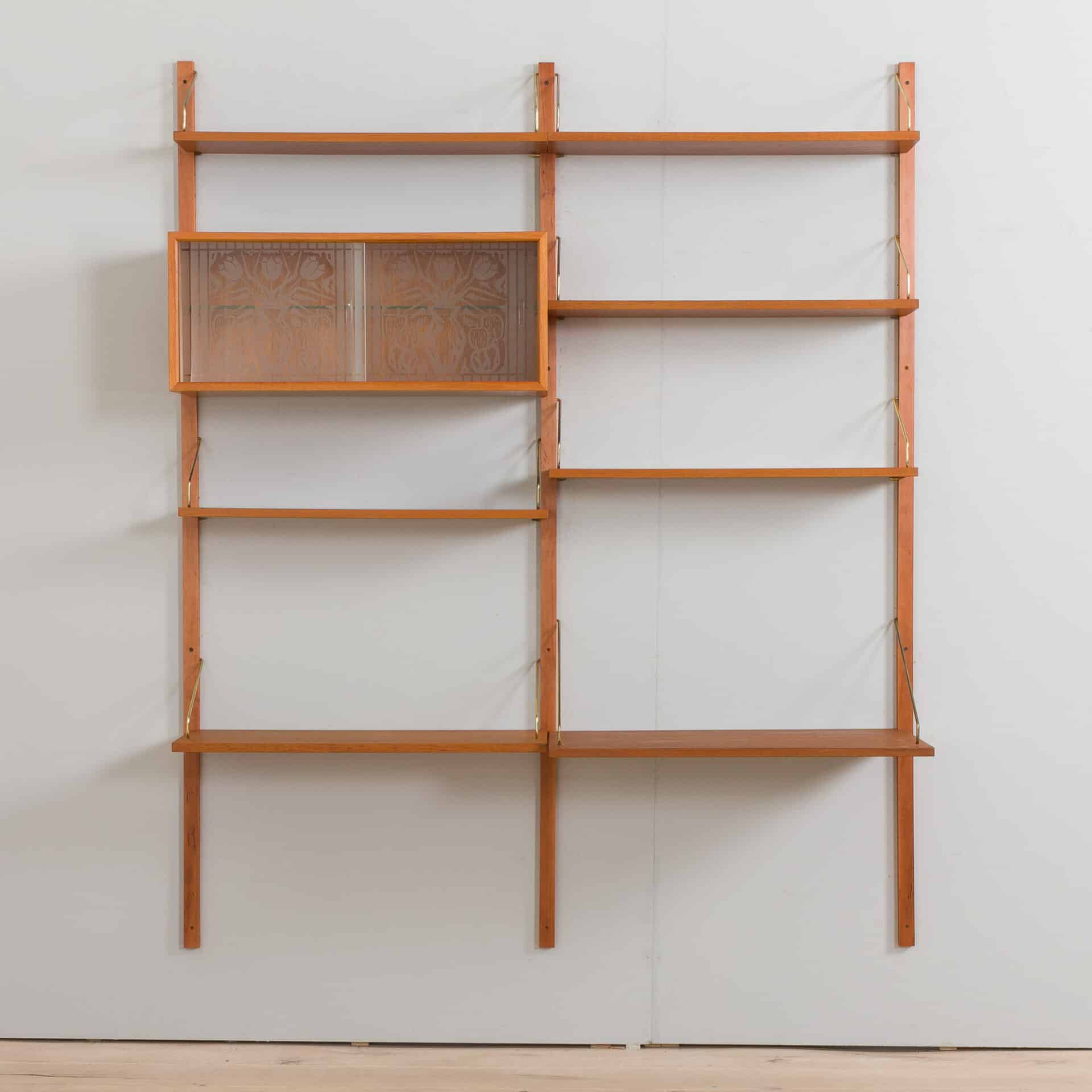 Poul Cadovius teak wall unit with glass cabinet and a desk-shelf, Denmark 1960s