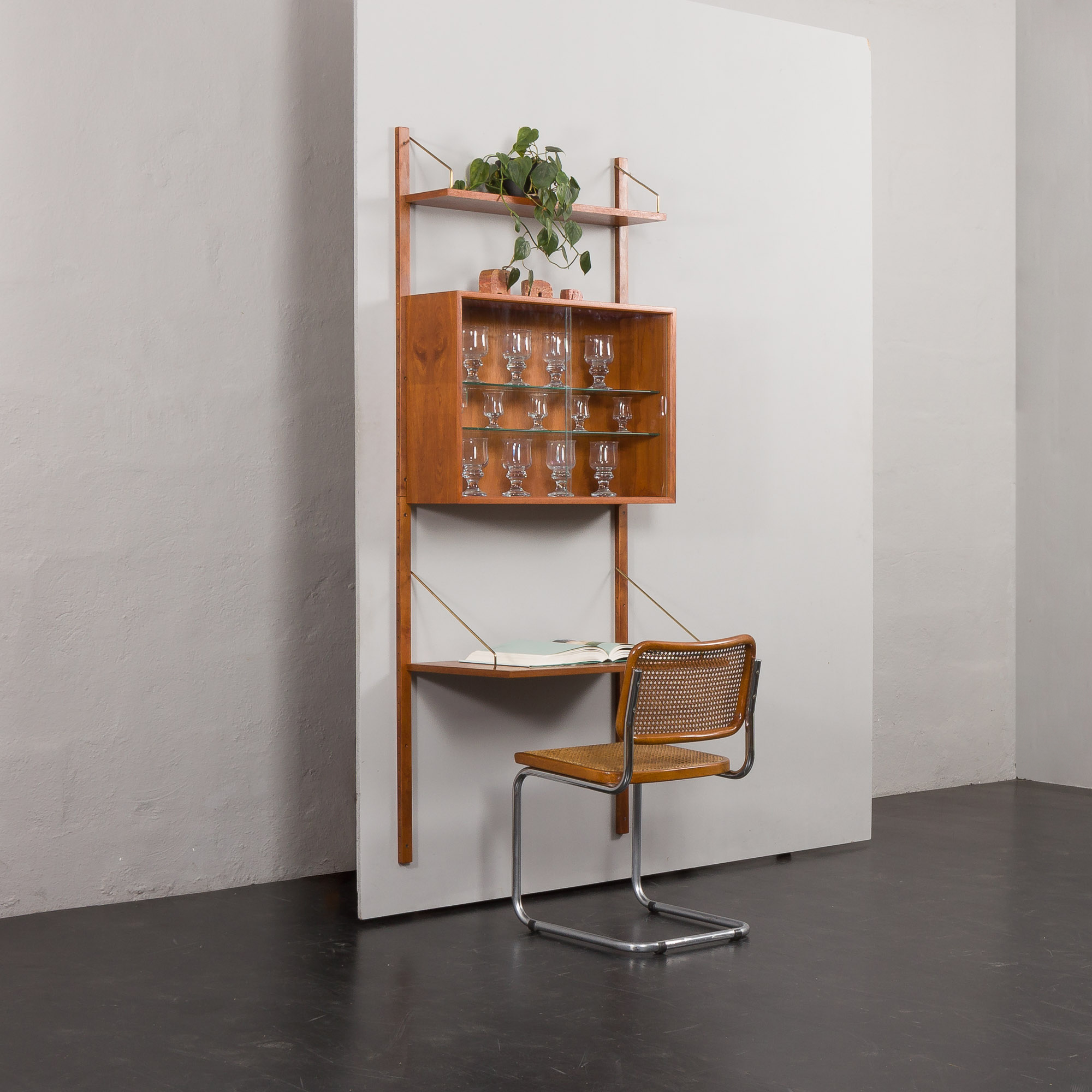 Poul Cadovius teak wall unit with a desk and vitrine, Cado 1960s