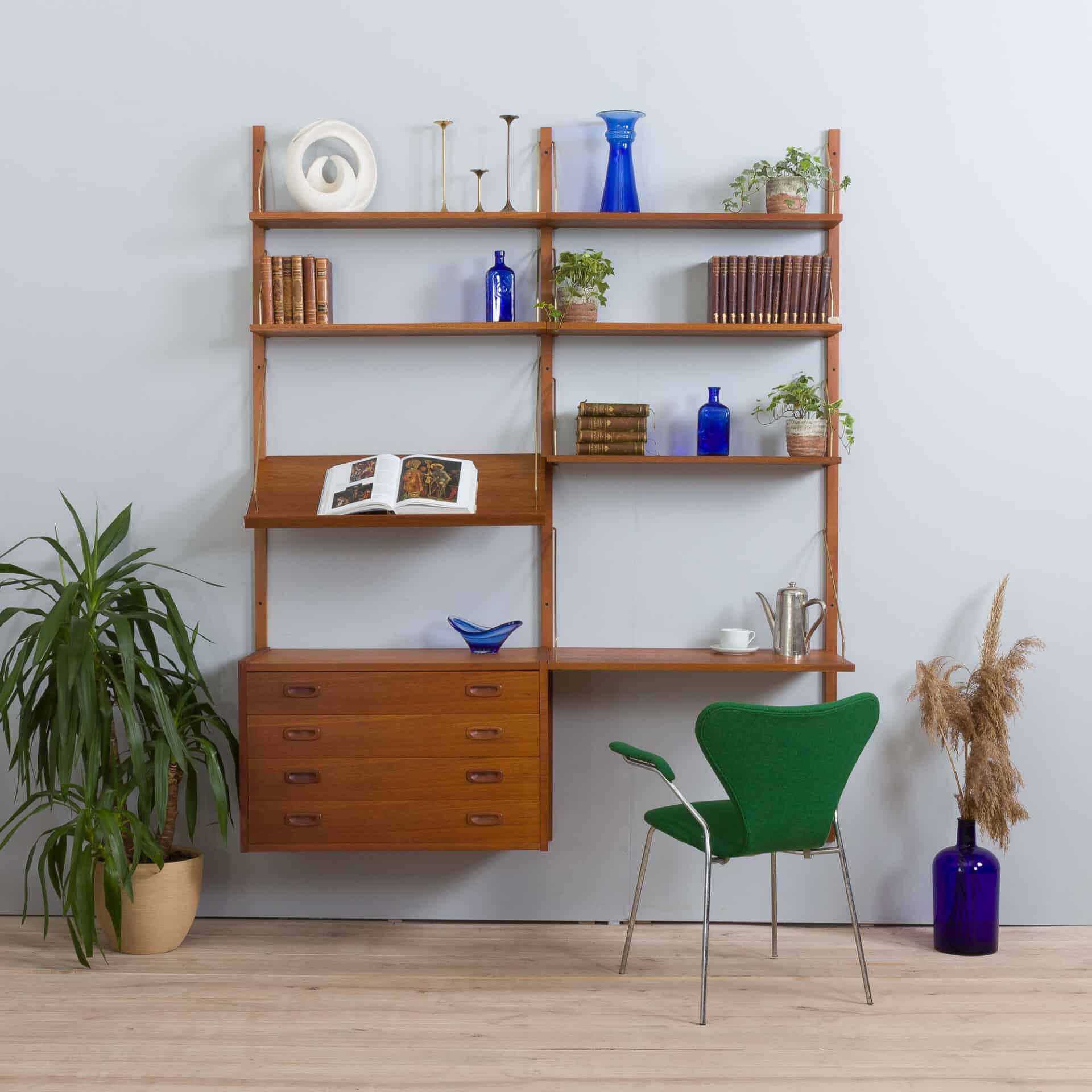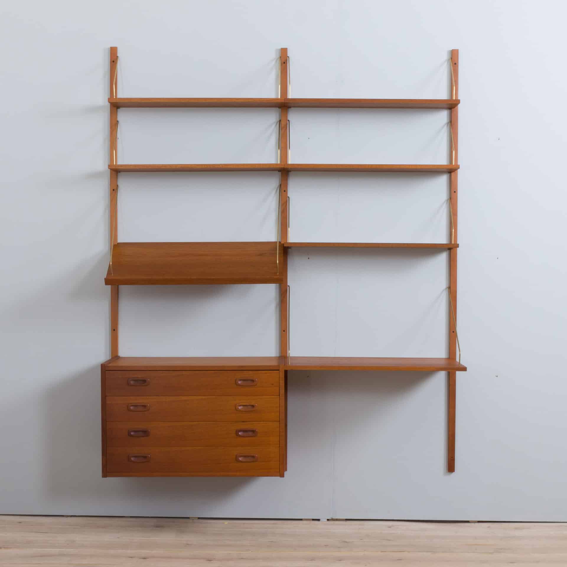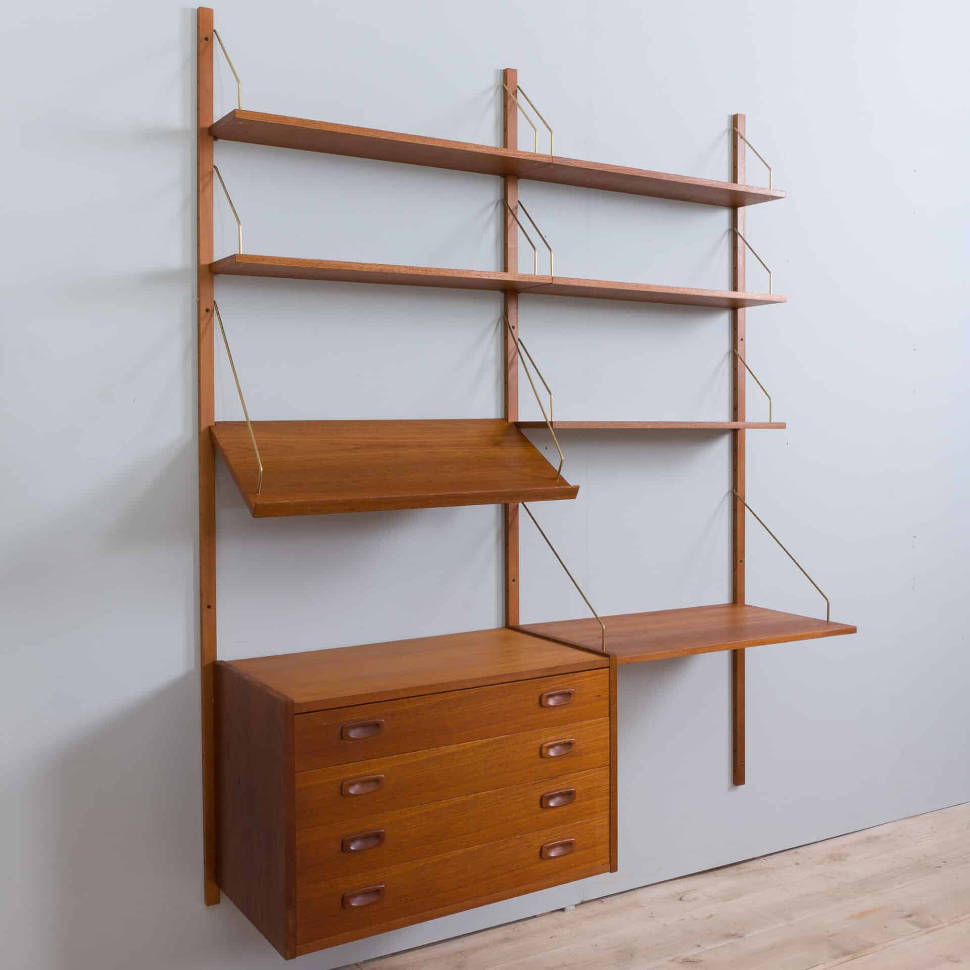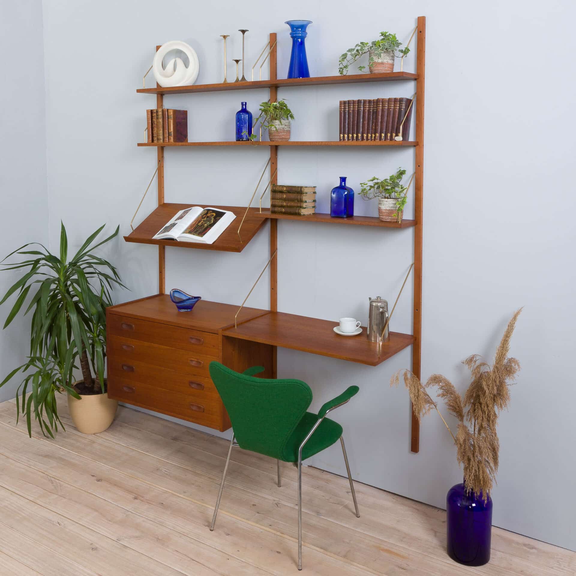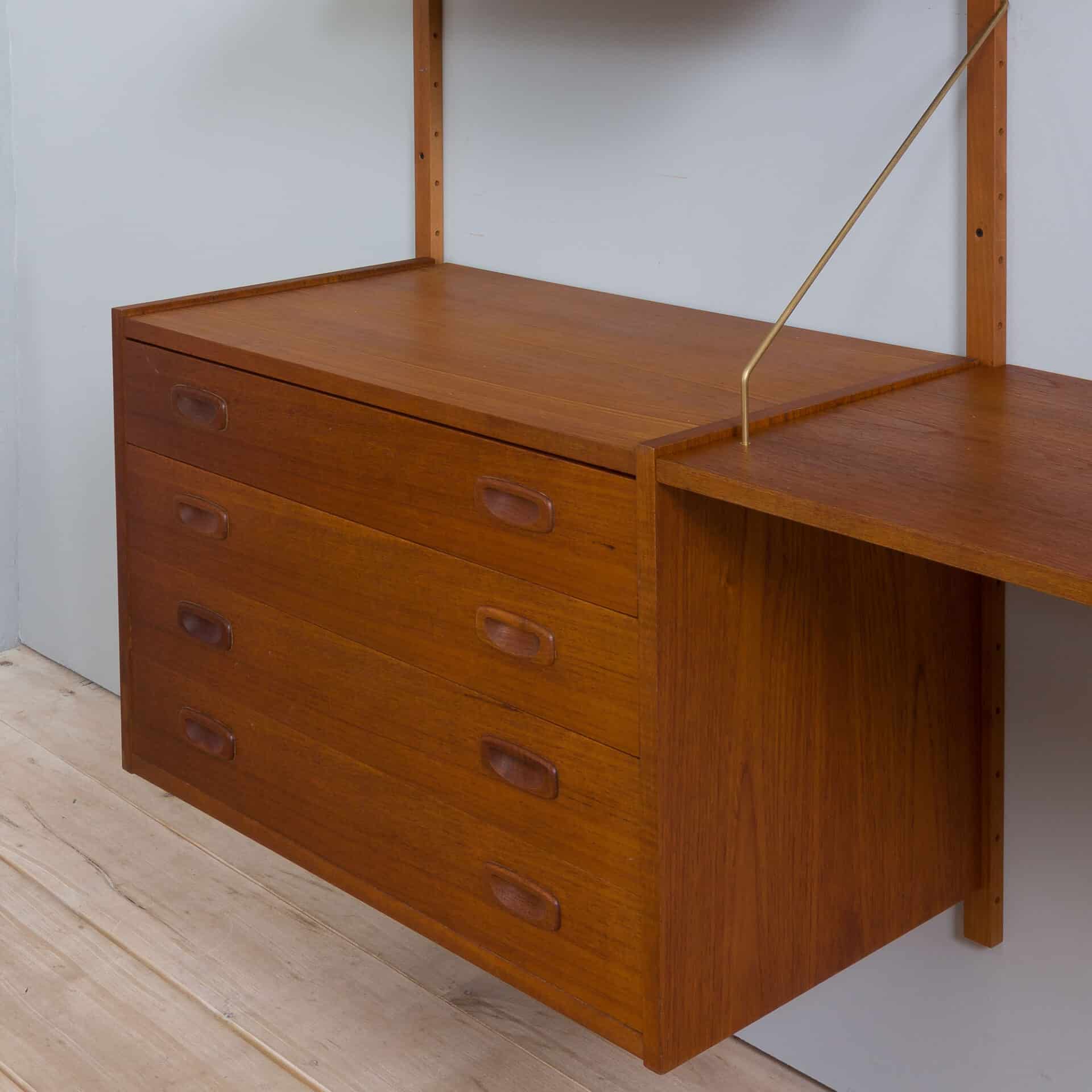 Preben Sorensen PS Randers wall unit in teak with desk shelf and chest of drawers, Denmark 1960s