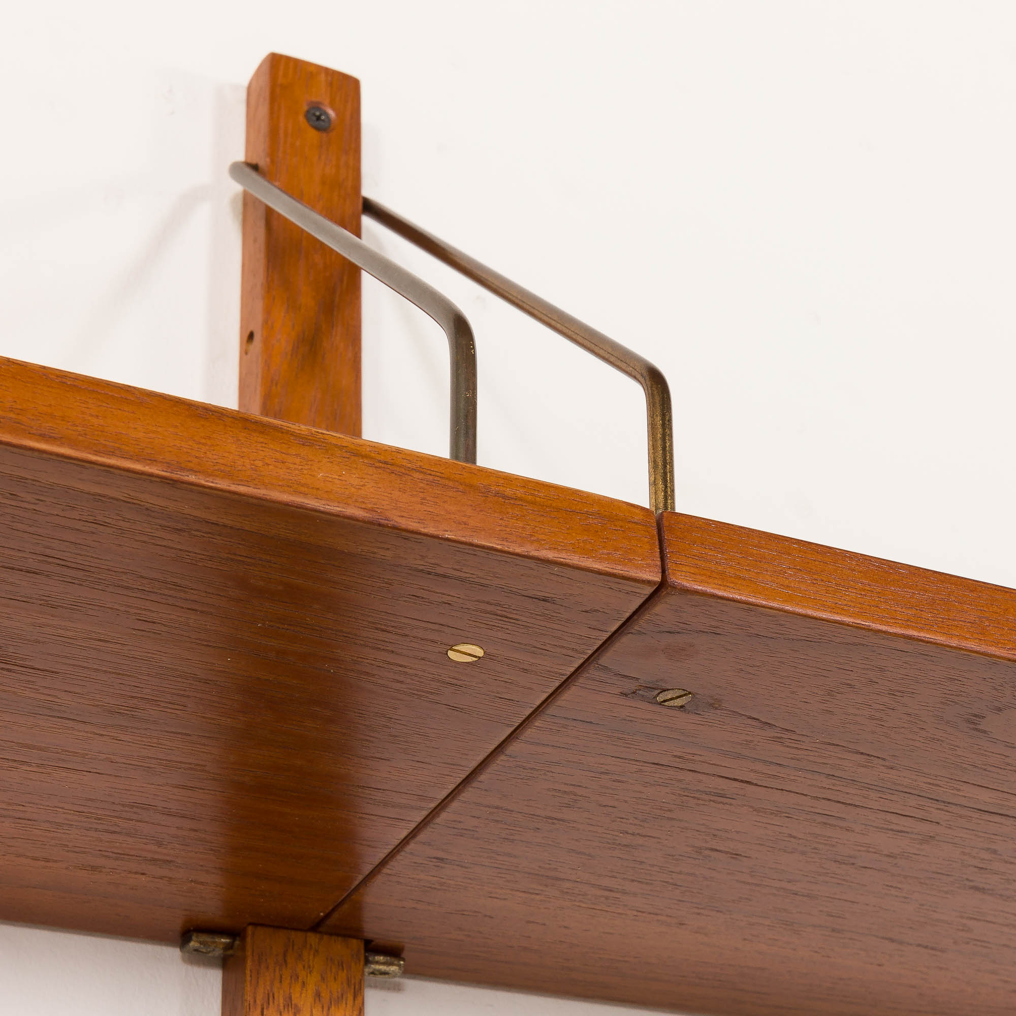 This elegant Danish PS System mid-century teak wall unit, designed by Preben Sorensen and manufactured in Randers in the 1960s, is a stunning example of Scandinavian design and craftsmanship. Thanks to a unique combination of functionality with timeless aesthetics, this modular unit is perfect for showcasing your favorite items and providing storage space.