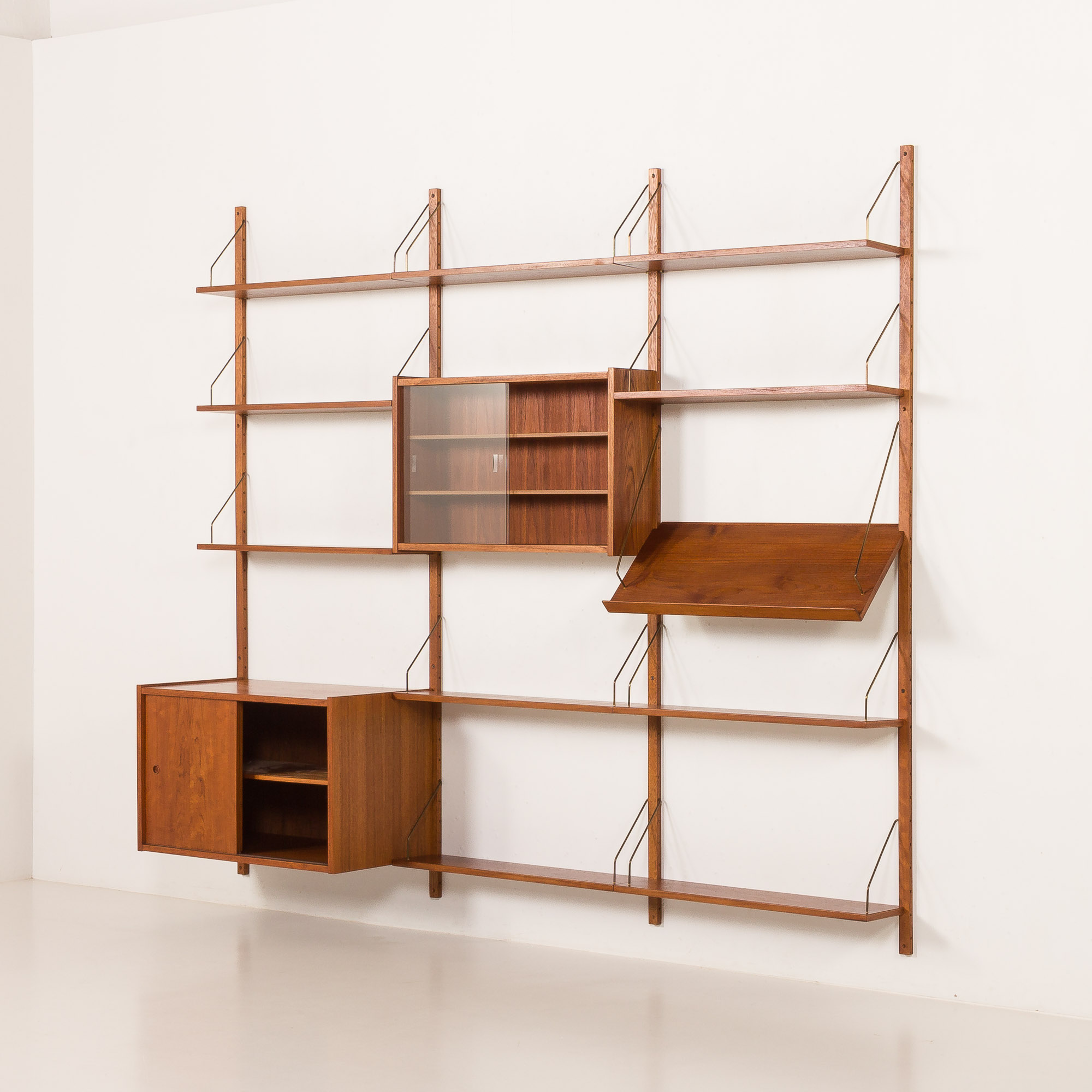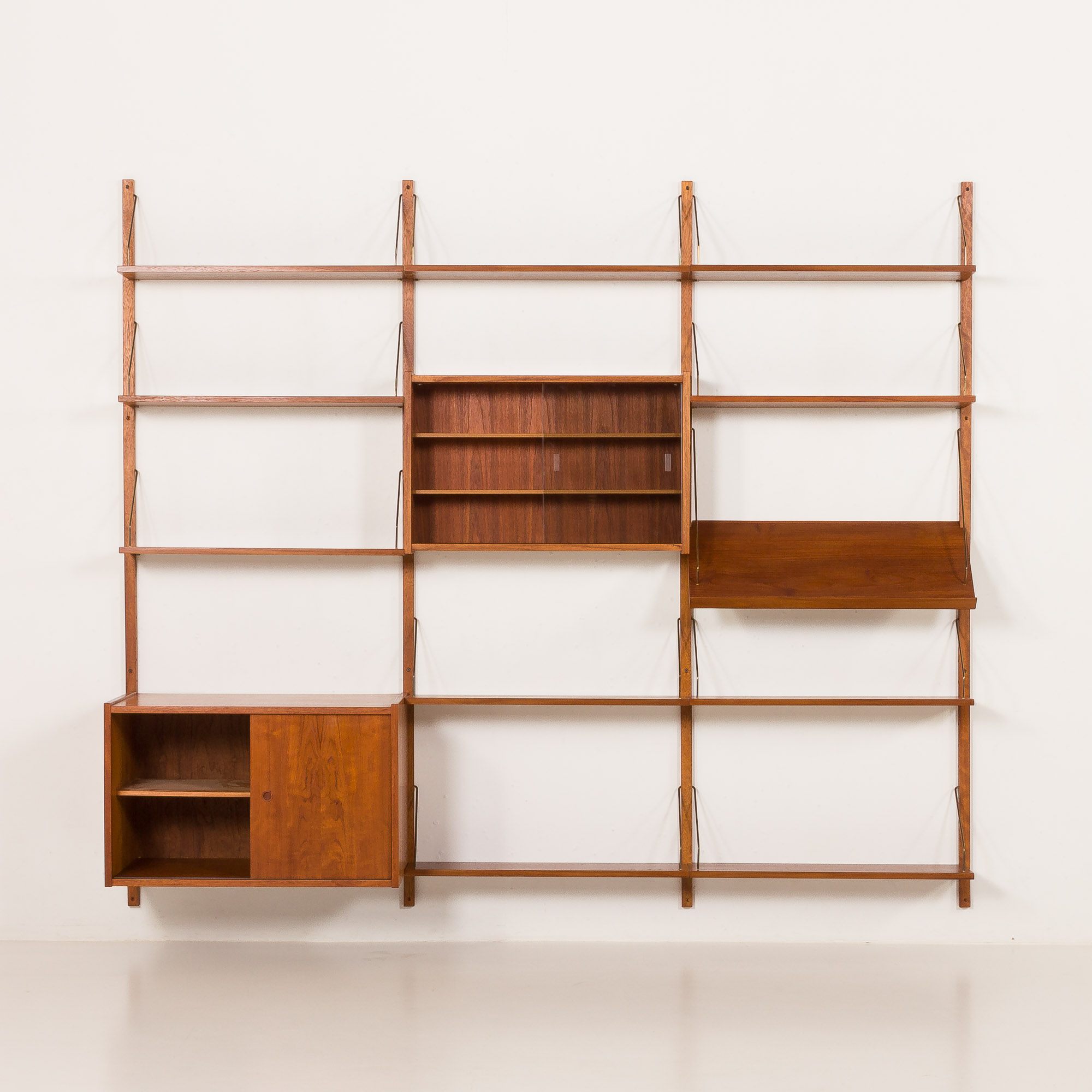 PS System teak 3 bay wall unit with expository shelf, Randers, Denmark, 1960s