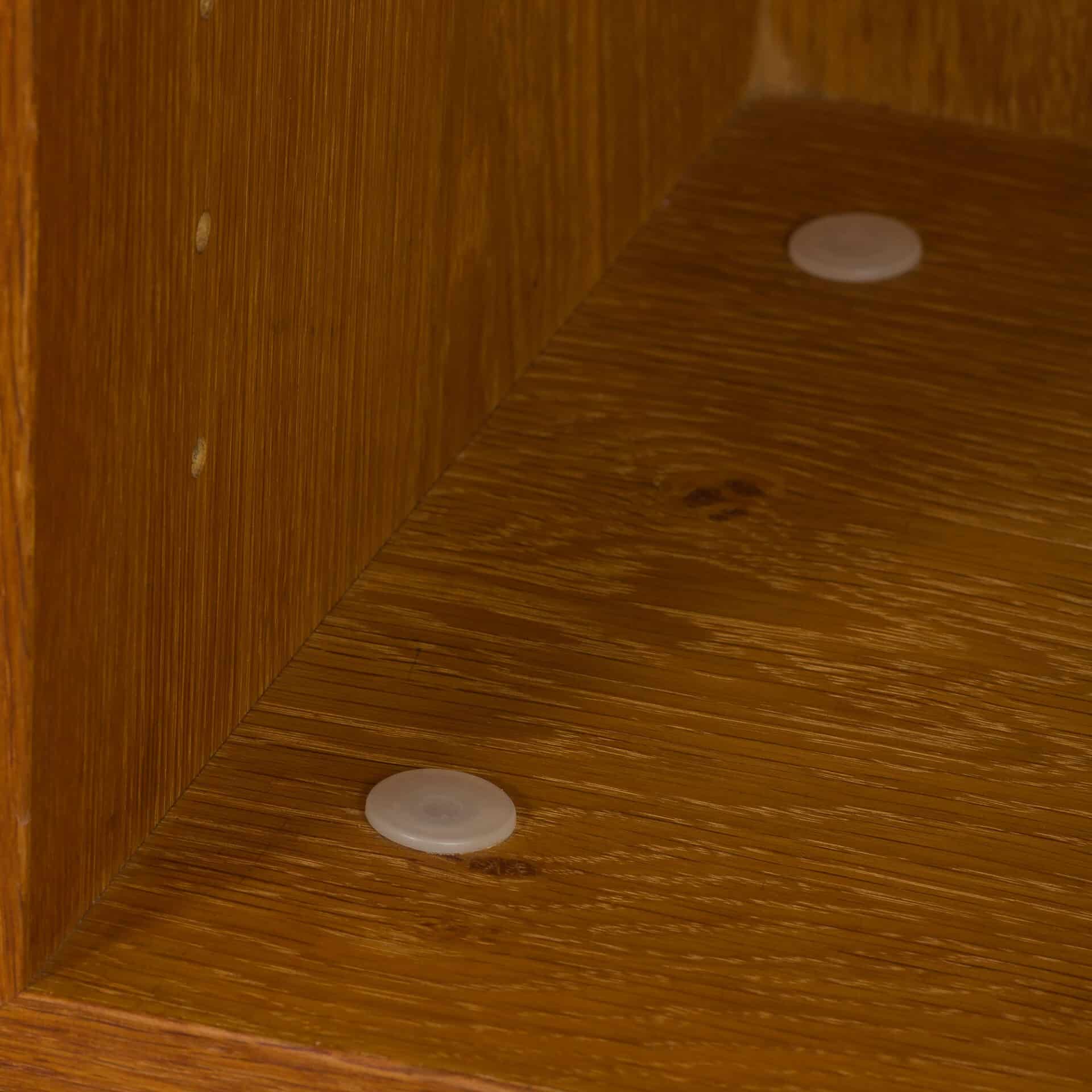 Shelves in the cabinets are easily adjustable, so one can adapt them exactly to one’s own needs.