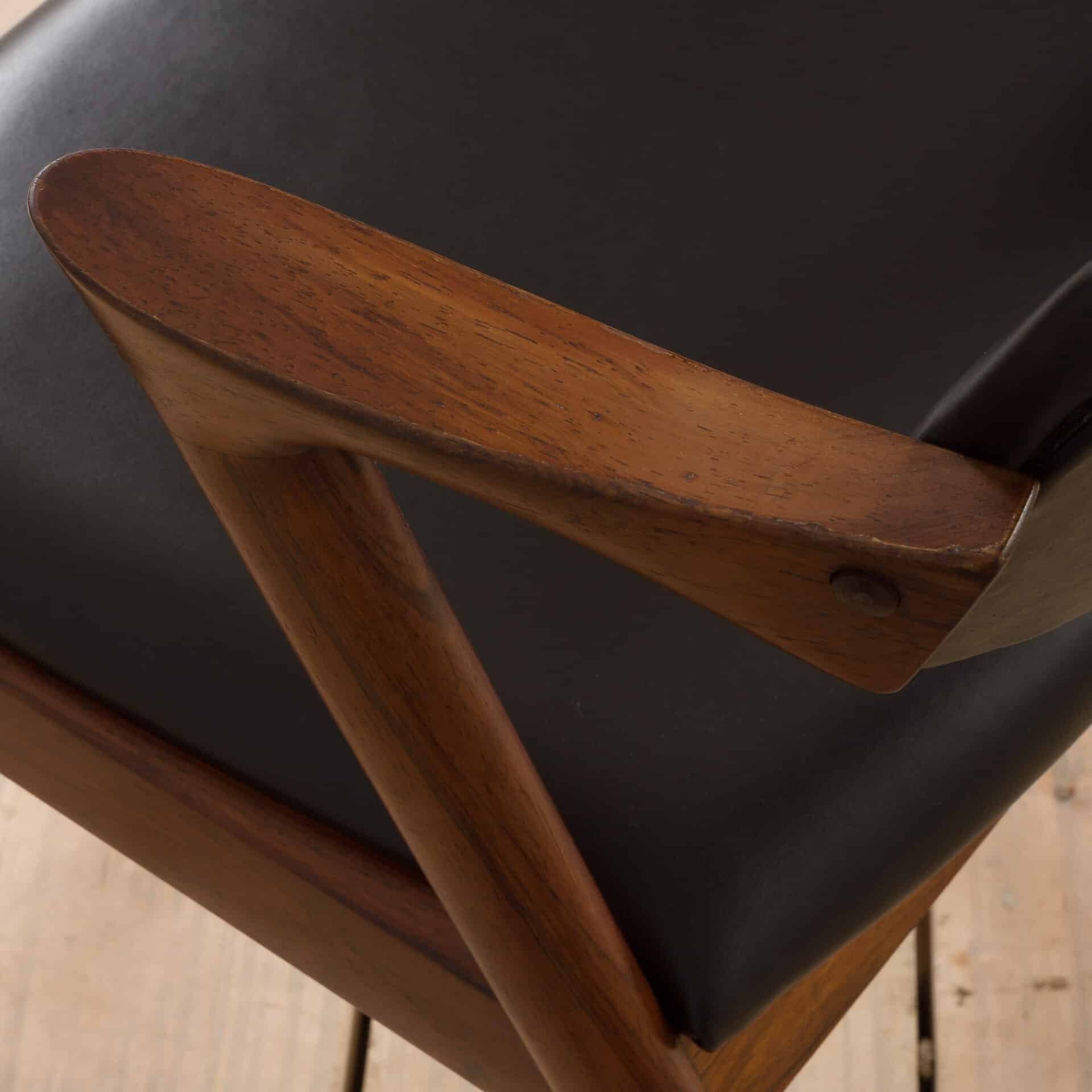 Rosewood chair in black leather model 42 by Kai Kristiansen, Denmark, 1960s.