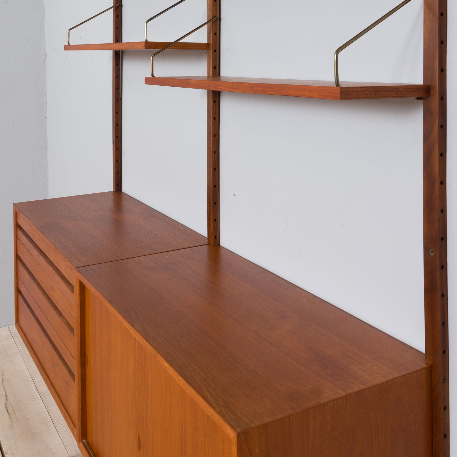 Royal Poul Cadovius teak wall unit with 2 cabinets and 6 shelves, 60s.