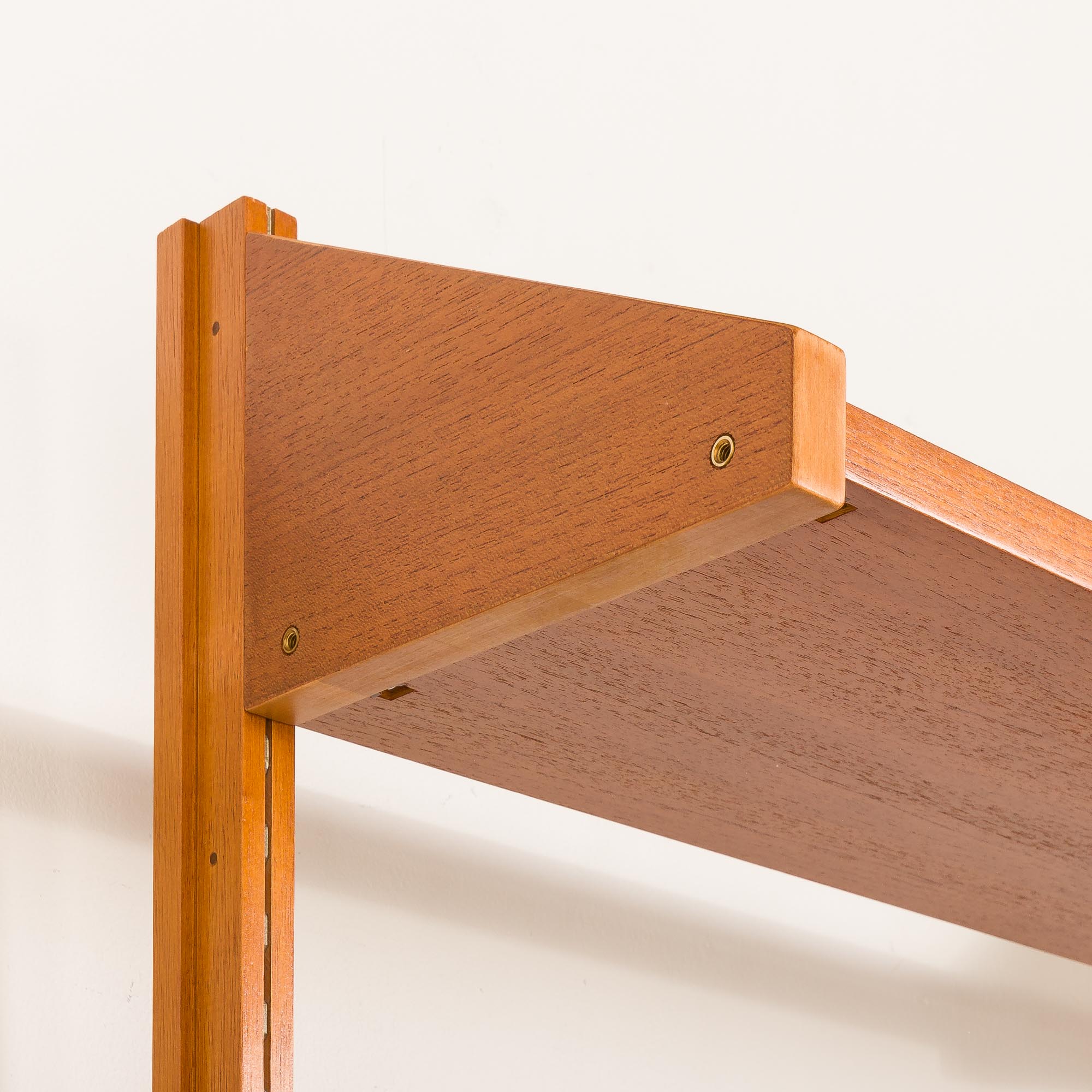Exceptional modular Scandinavian mid-century modern freestanding teak wall unit, produced by Eidsvoll Møbelfabrikk in Norway during the 1970s. This freestanding system exemplifies the clean lines, warm materiality, and versatile functionality typical of Scandinavian mid-century design.
