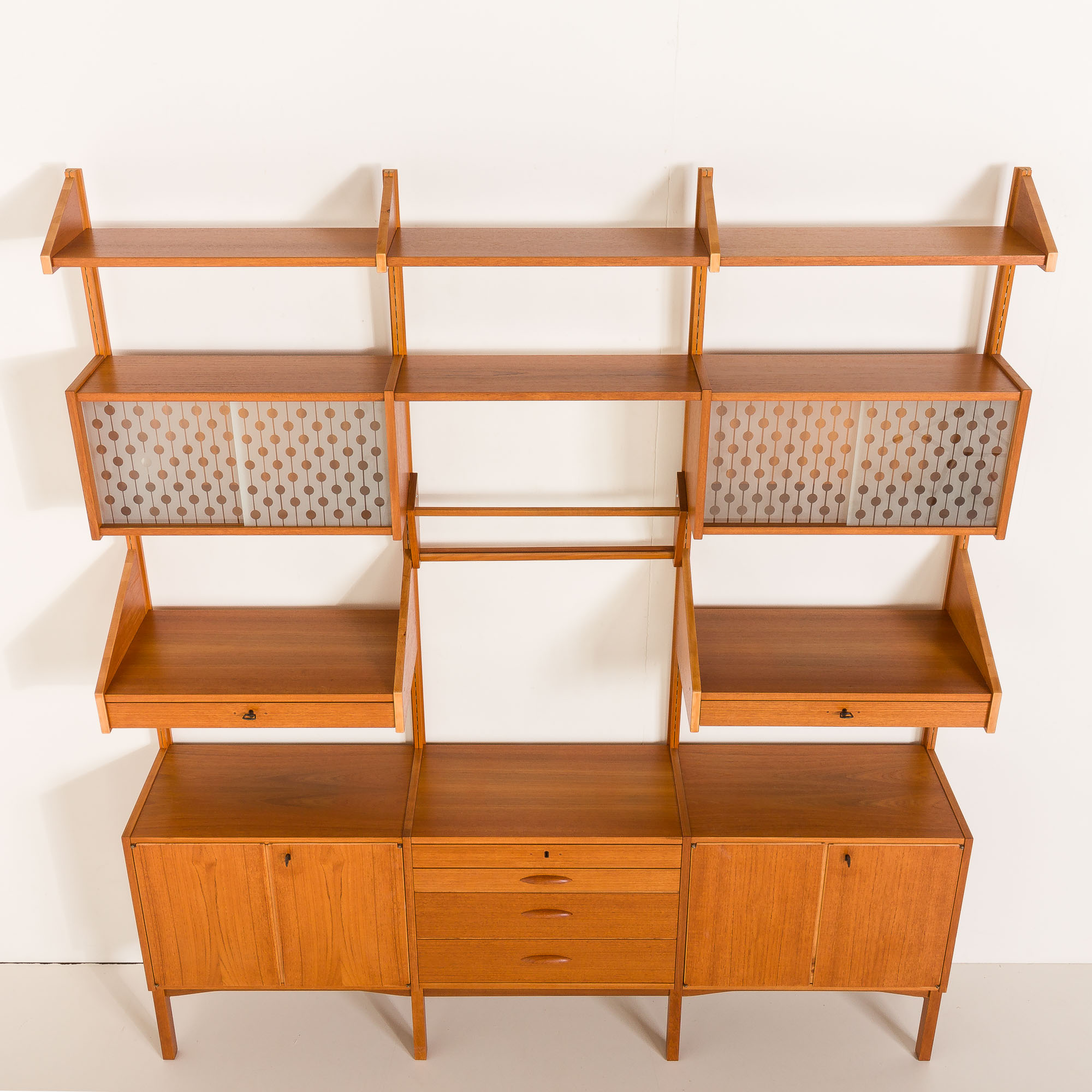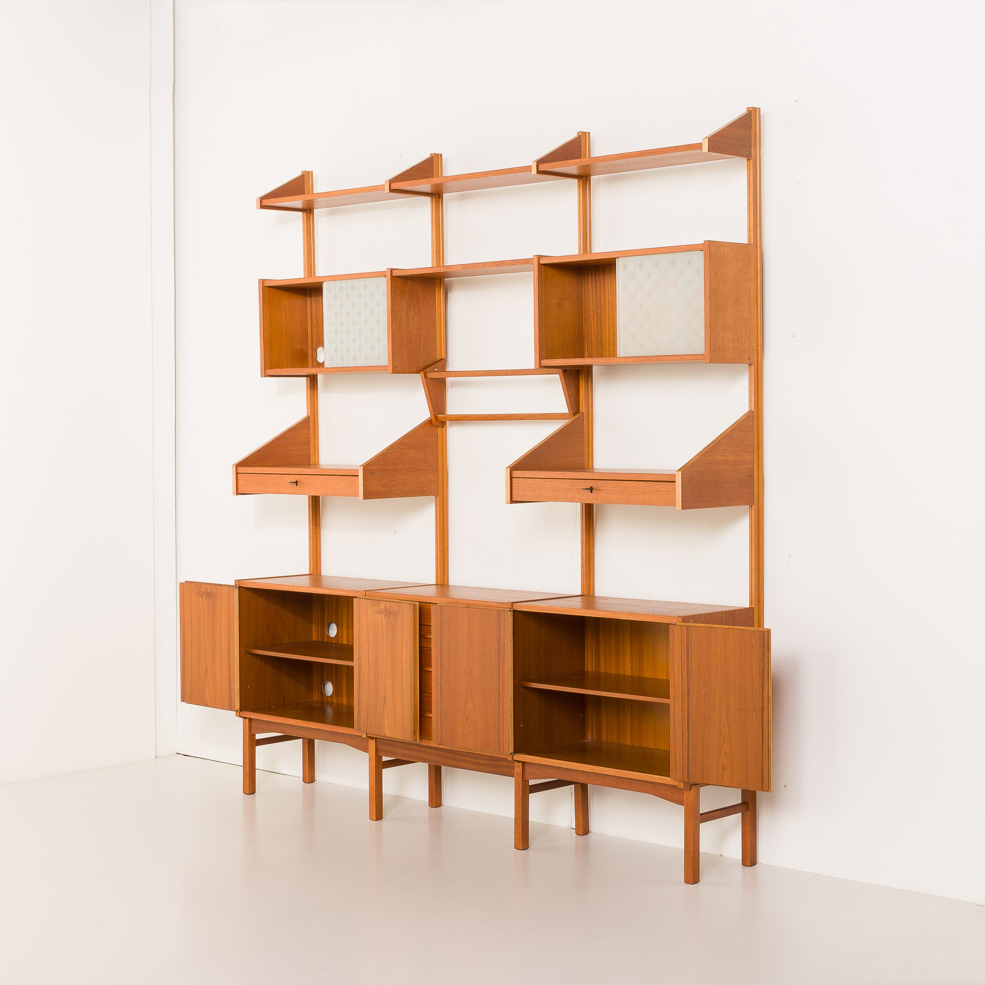 Scandinavian mid-century modern freestanding teak wall unit by Eidsvoll Møbelfabrikk, Norway, 1970s