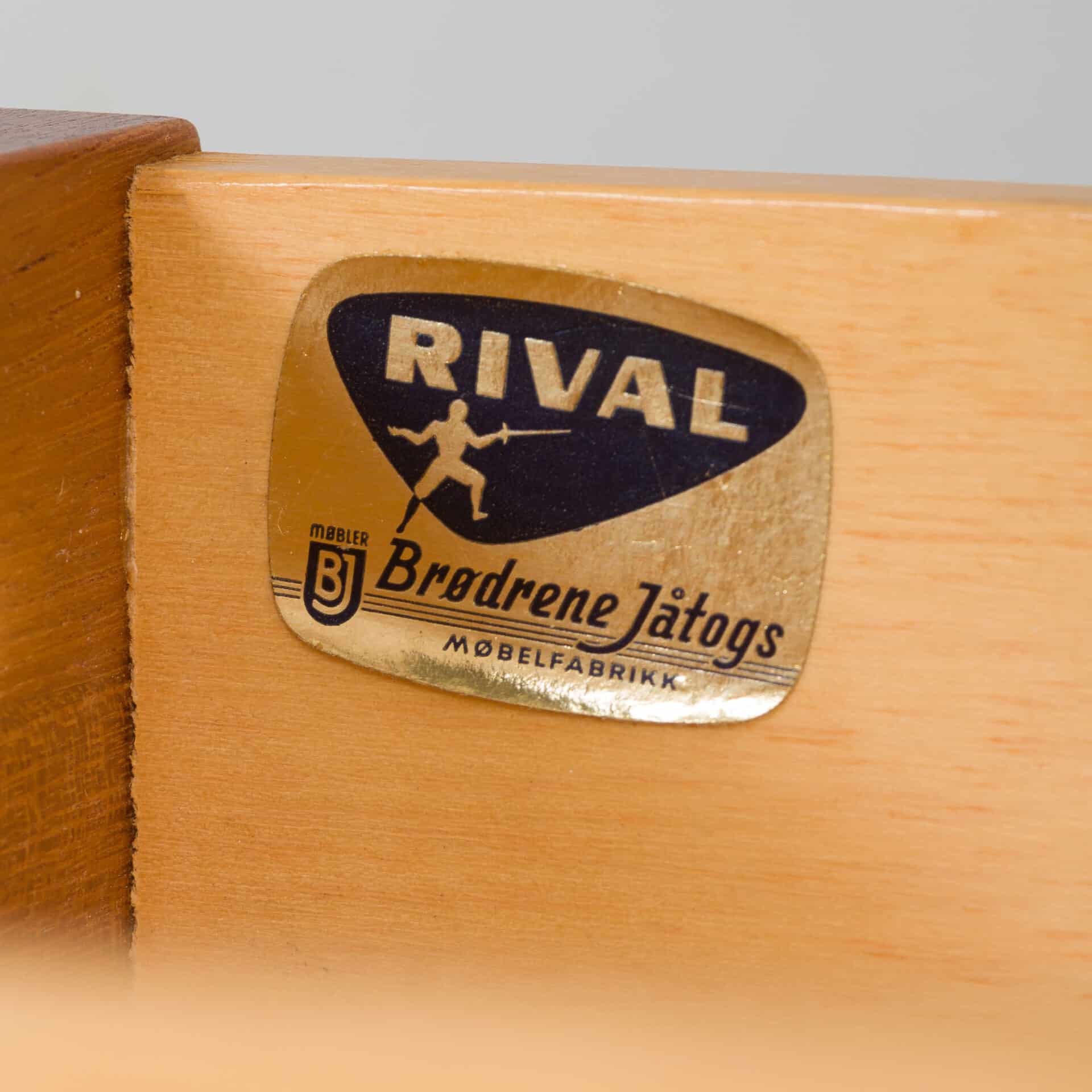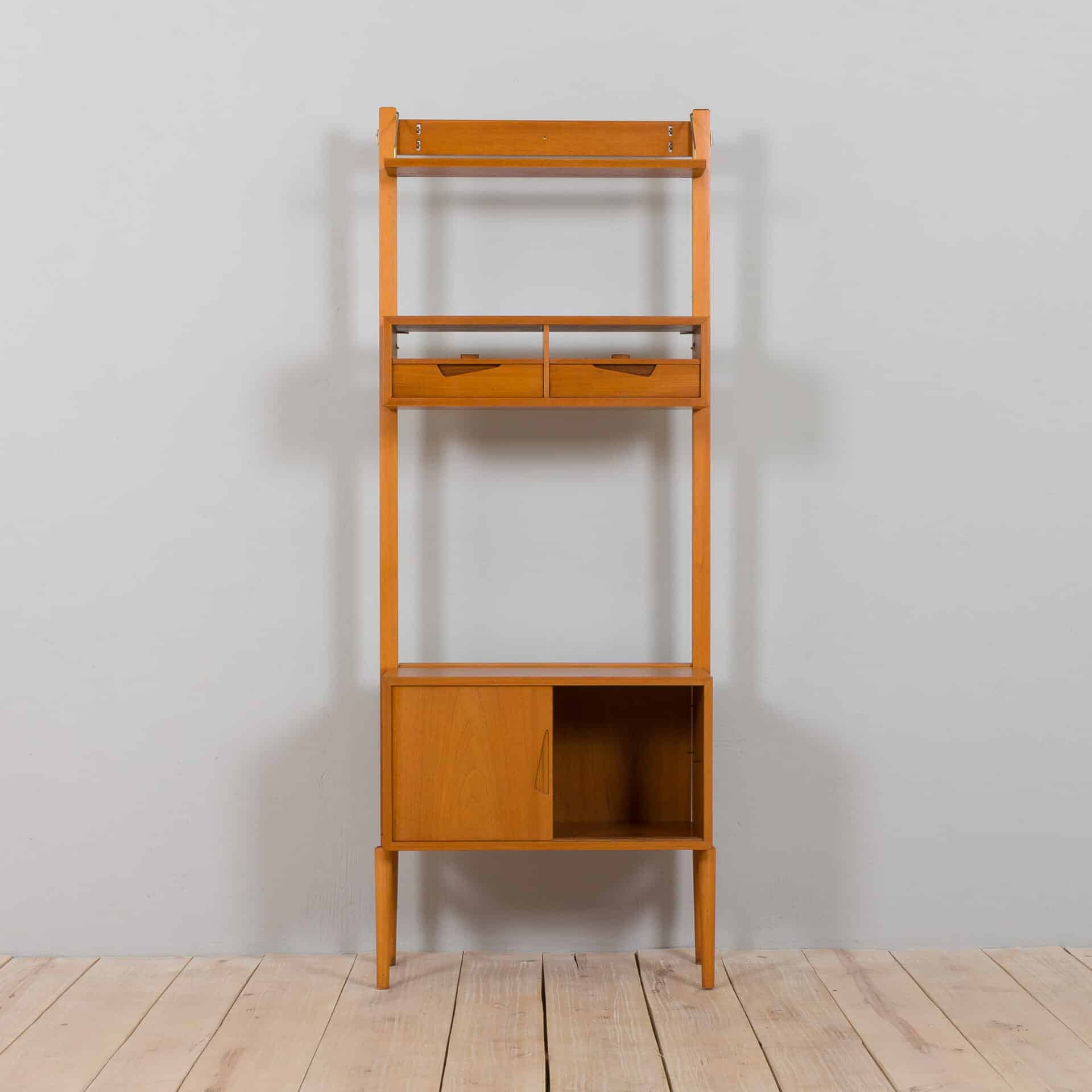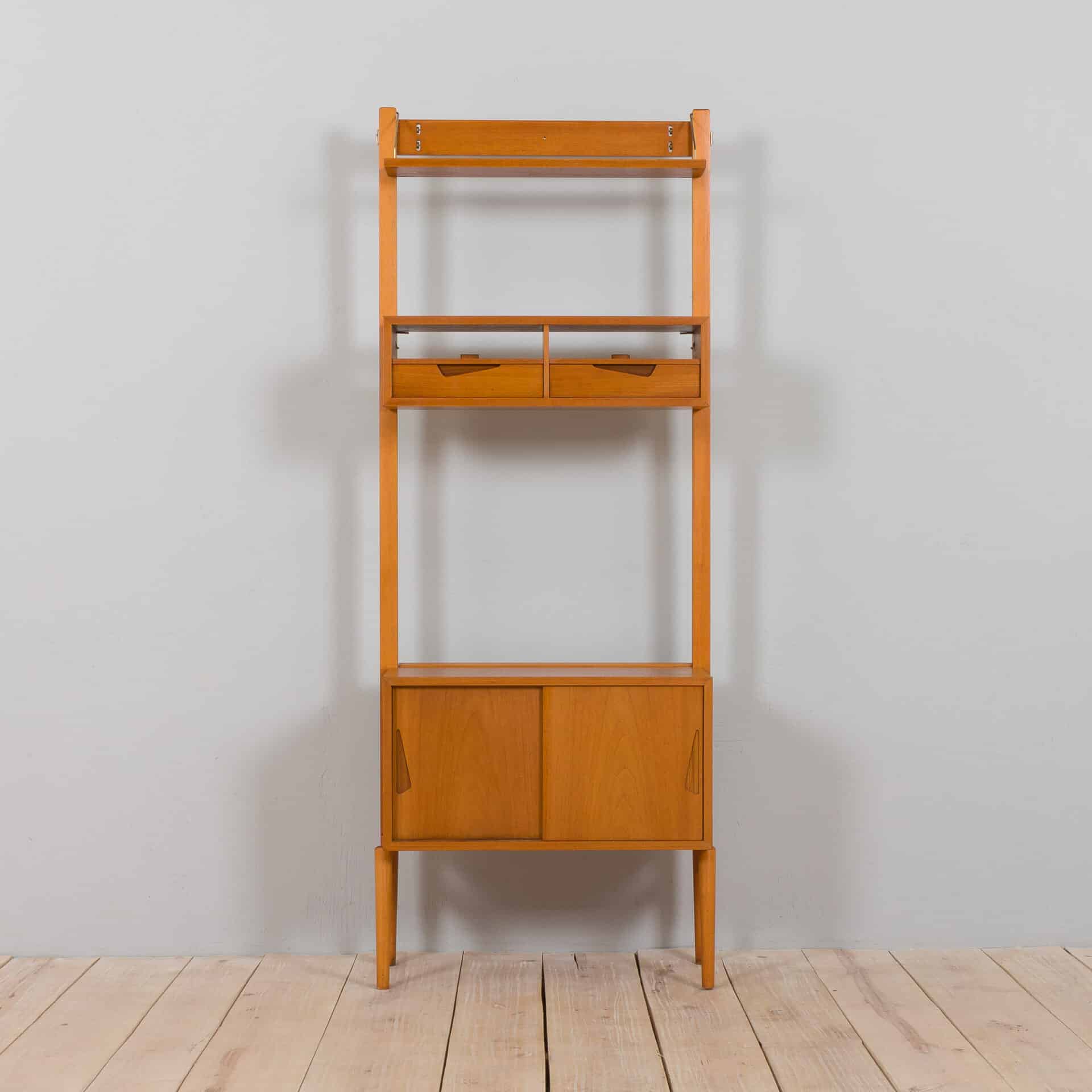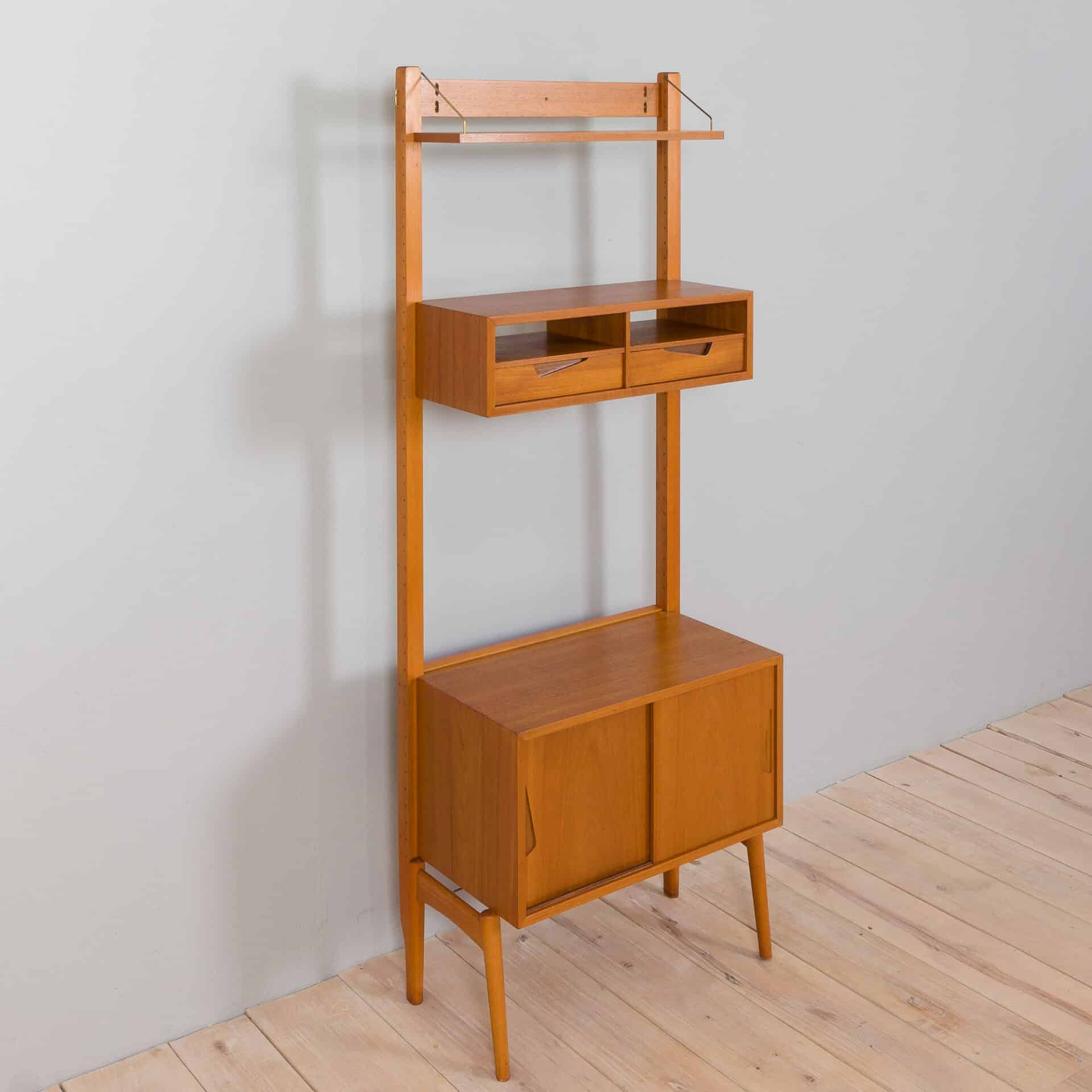 Scandinavian mid century Rival one bay wall unit with drawers cabinet in teak by Kjael Riis for Brødrene Jåtog Møbelfabrikk